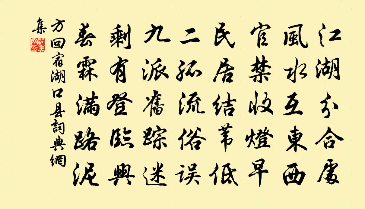 詩詞名句歷史字典書法欣賞書法字典國語詞典說文解字康熙字典古漢語字典標 題 作 者 詩 句 宿湖口縣作者:方回 朝代:宋代宿湖口縣原文江湖分合處,風水互東西。官禁收燈早,民居結葦低。二孤流俗誤,九派舊蹤迷。剩有登臨興,春霖滿路泥。詩詞問答問:宿湖口縣的作者是誰?答:方回問:宿湖口縣寫於哪個朝代?答:宋代方回宿湖口縣書法欣賞宿湖口縣書法作品詩詞推薦題金山真德秀〔宋代〕江來朱方注之東,海潮怒飛相撞舂。天將古來義士骨,化作中央屹立之。孤根直下二千尺,動影裊窕沖融中。黃金偈頌二十三首釋雲岫〔宋代〕一句子,玄中玄,妙中妙。寒暑不相干,陰陽不相到,必意如何通耗。鷺鶯立雪非同色,明月蘆花不似他。貧甚戲作絕句陸游〔宋代〕讀書但覺慚輪扁,補吏非能去箭張。白髮歸為林下叟,固應飢下饜糟糠。上古之什補亡訓傳十三章持斧一章顧況〔唐代〕(持斧,啟戎士也。戎士伐松柏為蒸薪。孝子徘徊而作是詩。)持斧持斧,無剪我松柏兮。次韻虛谷和長兒奉別陳著〔宋代〕有便勤相問,何時得近依。詩搜腸藿瘦,字為眼花肥。雲遠心猶遠,春歸人未歸。羨君牢閉戶,珍重白山衣。酬於訢校書見貽朱慶餘〔唐代〕能□得從軍,清嬴□□□。綺羅徒滿目,山水不離心。暫別愁花老,相思倚竹陰。家貧無以養,未可話抽簪。錢侍郎使君以題廬山草堂詩見寄因酬之白居易〔唐代〕殷勤江郡守,悵望掖垣郎。慚見新瓊什,思歸舊草堂。事隨心未得,名與道相妨。若不休官去,人間到老忙。草木雜詠五首櫞宋祁〔宋代〕紺實紛累累,柔柯緩若若。葉以代新陳,花仍開續落。擬古雜言黃庭堅〔宋代〕雁雁隨春風,過鄉縣。煙雨昏,行不亂。同安樂,共憂患。雲重重,不相見。日昳晡,下平湖。十十五五依黃蘆,慧慶寺玉蘭記戴名世〔清代〕 慧慶寺距閶門四五里而遙,地僻而鮮居人,其西南及北,皆為平野。歲癸未、甲申間,秀水朱竹垞先生賃僧房夏日過青龍寺謁操禪師(與裴迪同作)王維〔唐代〕龍鍾一老翁,徐步謁禪宮。欲問義心義,遙知空病空。山河天眼裡,世界法身中。莫怪銷炎熱,能生大地風。送劉叔有還古鼎方回〔宋代〕題詩曾到古桃川,回首驚嗟四十年。畫省郎官領賓客,白須道士似神仙。合城園解江流沸,鄂渚兵豗廣徼穿。此處紅梅二首白玉蟾〔宋代〕玉妃初醉下瑤台,紫霧深深撥不開。卻恐錯穿桃杏徑,高燒銀燭照歸來。三河道中王暉〔宋代〕路入龍游不見山,縱橫阡陌瀔江邊。穿籬殘筍如攢槊,夾道寒花似火熱。再次韻菊花譜系四首項安世〔宋代〕若使荊公作譜,卻須派出東夷。補落伽山傅種,閻浮檀水成肌。蔣帝廟二首馬之純〔宋代〕一尉為官亦已輕,後來封爵一何榮。骨青相貌由來異,羽白威神儼似生。嘗遣陰兵隨義旅,不從私鑄長奸萌。自當和梅公儀新繁縣顯曜院王益〔宋代〕梵宇蕭條白日長,苦空譚塵接藤床。雲章酷愛休詩麗,蓮柄慵思遠社香。石發雨梳雞苑寂,風梭春織鷲山涼。劫灰嶺雲梅堯臣〔宋代〕片雨過青天,山雲歸絕嶺。林際隱微虹,溪中落行影。還看隴首飛,復愛山間靜。陪張丞相登嵩陽樓孟浩然〔唐代〕獨步人何在?嵩陽有故樓。歲寒問耆舊,行縣擁諸侯。林莽北彌望,沮漳東會流。客中遇知己,無復越鄉憂。桂湖五首曾國藩〔清代〕十里荷花海,我來吁已遲。小橋通野港,壞艇臥西陂。曲岸能藏鷺,盤渦尚戲龜。傾城游女盛,好是採蓮時。名句推薦滿月飛明鏡,歸心折大刀。杜甫《八月十五夜月二首》 去年花里逢君別,今日花開已一年。韋應物《寄李儋元錫》 屈盤戲白馬,大笑上青山。李白《登敬亭北二小山余時送客逢崔侍御並登此地》 江燕話歸成曉別,水花紅減似春休。西風梧井葉先愁。吳文英《浣溪沙·秋情》 離一切諸相則名諸佛。鳩摩羅什譯《金剛經·離相寂滅》 五原秋草綠,胡馬一何驕。李白《塞上曲》 最是繁絲搖落後,轉教人憶春山。納蘭性德《臨江仙·寒柳》 凡庸之性,後夫多寵前夫之孤,後妻必虐前妻之子。顏之推《顏氏家訓·後娶篇》 憑觴靜憶去年秋,桐落故溪頭。晏幾道《訴衷情·憑觴靜憶去年秋》 仁者愛萬物而智者備禍於未形,不仁不智,何以為國?司馬遷《史記·趙世家》
