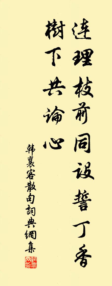 詩詞名句歷史字典書法欣賞書法字典國語詞典說文解字康熙字典古漢語字典標 題 作 者 詩 句 句作者:韓襄客 朝代:唐代句原文連理枝前同設誓,丁香樹下共論心。詩詞問答問:句的作者是誰?答:韓襄客問:句寫於哪個朝代?答:唐代問:句是什麼體裁?答:句韓襄客句書法欣賞句書法作品注釋全唐詩:卷802-43詩詞推薦感鏡白居易〔唐代〕美人與我別,留鏡在匣中。自從花顏去,秋水無芙蓉。經年不開匣,紅埃覆青銅。今朝一拂拭,自照憔悴容。照罷梅岩徐瑞〔宋代〕不見此山四十載,岩石相看亦粲然。顧我丹心今不改,信渠鐵面晚獨堅。人生出處無非數,文運昌明自屬天。尚恨【南呂】梁州第七_射雁魚尾紅喬吉〔元代〕射雁魚尾紅殘霞隱隱,鴨頭綠秋水涓涓,芙蓉燦爛搖波面。見沉浮鷗伴,來往魚船,平沙衰草,古木蒼煙。江鄉景送李山人往湘中黃滔〔唐代〕漢渚往湘川,乘流入遠天。新秋無岸水,明月有琴船。露坐應通曉,萍居恐隔年。岳峰千萬仞,知上嘯猿巔。竹醉日晁公溯〔宋代〕塵埃蓬勃慾障天,略無爽氣北牖前。五月風炎竹尚醉,九衢日長柳亦眠。小兒畏熱書頗廢,老子罷食夢相牽。桂漿漁家傲引洪适〔宋代〕七月涼秋飛葉響。長吟杳杳澄江上。禿尾槎頭添一網。絲自紡。新炊菰飯更相餉。渡口青煙藏疊嶂。岸旁紅蓼翻輕呈孟君復能靜使君二首方回〔宋代〕乃祖麒麟第一人,乃孫今代筆如神。三遷孟子慈闈教,十二甘羅相閥身。海內豪吟公與我,花邊痛飲夏連春。浮生感庭秋王吉昌〔元代〕志通天地媾精神。訊息葆全真。造化玄黃極妙,煉九陽、魂變逡巡。西來祖意坦然伸。無礙法門親。應化河沙周普四景詩似欠一篇五更枕上足成之錄呈西美司書周必大〔宋代〕甘寒何必柘為漿,也解逡巡造醴涼。更喜鶴鳴添子和,休因荔進引蕉黃。花如宋玉窺鄰女,詩似劉郎問泰娘。只欠頌古四十五首釋慧遠〔宋代〕門外雨滴聲,家和萬事成。歸來無一物,令人憶鏡清。端午日恩賜百索竇叔向〔唐代〕仙宮長命縷,端午降殊私。事盛蛟龍見,恩深犬馬知。餘生倘可續,終冀答明時。龍學侍郎清河侯張公輓詞范成大〔宋代〕白水名多士,清河最有聲。人危孔北海,帝識柳宜城。蜀險談間固,蠻訌檄到平。凌煙何處在?風雨上銘旌。永遇樂(再和)吳潛〔宋代〕天上人間,這般光景,管無風雨。繡戶珠簾,錦坊花巷,戲隊將嫫母。月扇團圓,星球燦爛,路遍市三街五。昇平至陳倉曉晴望京邑盧照鄰〔唐代〕佛曙驅飛傳,初晴帶曉涼。霧斂長安樹,雲歸仙帝鄉。澗流漂素沫,岩景靄朱光。今朝好風色,延瞰極天莊。寄吳沖卿王安石〔宋代〕物變極萬殊,心通才一曲。讀書謂已多,撫事知不足。與君語承華,念此非不夙。恨無數頃田,歸耕使成熟。當官夜坐再用韻二首裘萬頃〔宋代〕家有輞川集,人如王右丞。琴書多暇日,觴詠盡高朋。擬脫雲山屐,來分夜案燈。新詩要傳寫,病眼任瞢騰。酒盡陸游〔宋代〕飲酒但飲濕,吾聞之老坡。渠非惜酒錢,無如久窮何。我窮乃過之,空罍倒余濕;日來彌可笑,濕亦不可得。平生答楊梓州杜甫〔唐代〕悶到房公池水頭,坐逢楊子鎮東州。卻向青溪不相見,回船應載阿戎游。鮑家田吳濟〔宋代〕搖旆家家酒,收犁處處村。草深迷井口,槿密擁籬根。綠水明秧本,青山失燒痕。多應忌蠶事,畏客掩柴門。山窗新糊有故朝封事稿閱之有感林景熙〔宋代〕偶伴孤雲宿嶺東,四山欲雪地爐紅。何人一紙防秋疏,卻與山窗障北風。名句推薦素手把芙蓉,虛步躡太清。李白《古風·其十九》 牛困人飢日已高,市南門外泥中歇。白居易《賣炭翁》 讀書好處心先覺,立雪深時道已傳。袁枚《隨園詩話·卷三》 呵筆難臨帖,敲床且煮茶。大須《暮雪》 思其艱以圖其易佚名《尚書·周書·君牙》 客思似楊柳,春風千萬條。王安石《壬辰寒食》 醉別西樓醒不記。春夢秋雲,聚散真容易。晏幾道《蝶戀花·醉別西樓醒不記》 生資之高在忠信,非關機巧;學業之美在德行,不僅文章。王永彬《圍爐夜話·第十則》 飛花兩岸照船紅,百里榆堤半日風。陳與義《襄邑道中》 千載琵琶作胡語,分明怨恨曲中論。杜甫《詠懷古蹟五首·其三》