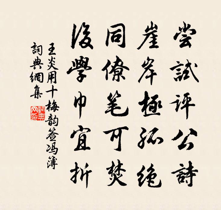 詩詞名句歷史字典書法欣賞書法字典國語詞典說文解字康熙字典古漢語字典標 題 作 者 詩 句 用十梅韻簽馮簿作者:王炎 朝代:宋代用十梅韻簽馮簿原文嘗試評公詩,崖岸極孤絕。同僚筆可焚,後學巾宜折。詩詞問答問:用十梅韻簽馮簿的作者是誰?答:王炎問:用十梅韻簽馮簿寫於哪個朝代?答:宋代王炎用十梅韻簽馮簿書法欣賞用十梅韻簽馮簿書法作品詩詞推薦貓唐珙〔元代〕覓得狸兒太有情,烏蟬一點抱唇生。牡丹架暖眠春晝,薄荷香濃醉曉晴。分唾掌中頻洗面,引兒窗下自呼名。溪魚奉和聖制早發三鄉山行張九齡〔唐代〕羽衛森森西向秦,山川歷歷在清晨。晴雲稍卷寒岩樹,宿雨能銷御路塵。聖德由來合天道,靈符即此應時巡。遣賢聞喜鵲李覯〔宋代〕翩翩者鵲何品流,羽毛白黑林之幽。生平智力可料度,有巢往往輸鳴鳩。天然卻會報人喜,愚兒 * 唯爾求。萬聲荊溪舟中對月吳錫疇〔宋代〕歷眼旬余半,終宵月在天。若將今歲看,僅有此番圓。寒逼鴻洲外,光搖蟻瓮邊。家山千里遠,應共一嬋娟。琴堂葉茵〔宋代〕片石鄰空掌樣平,吳兒曾此御瑤琴。琴中腔調誰人識,獨有顰妃是賞音。論俗詩四首何耕〔宋代〕傷人利己事多端,唆訟尤為第一般。二競力疲俱願息,中人未了又經官。試黜寄余景仁陳藻〔宋代〕六經不合窮稍深,入場下筆無知音。吐辭從實理從是,誰肯暮途生悔心。臨漳推官韙我筆,累舉悞疑當第一。夜光小重山(四之二)賀鑄〔宋代〕簾影新妝一破顏。玳筵回雪舞,小雲鬟。瓊枝擢秀望難攀。凝情處,千里望蓬山。歌斷酒闌珊。畫船簫鼓轉,綠楊寄題喻叔奇國傅郎中園亭二十六詠菊徑楊萬里〔宋代〕身在京師夢在鄉,黃花又是一番黃。平生不解淵明語,菊卻猶存徑卻荒。吳江縣李貫〔宋代〕四面漁家繞縣城,古今名手謾丹青。菰蒲水淺連江寺,橘柚煙深隔洞庭。幽鷺下時分野色,遠帆歸處印天形。誰知句宋肇〔宋代〕知君也厭雕肝腎,分我江南數斛愁。偈頌二十五首釋道璨〔宋代〕篷底欹眠醉復醒,君山只在兩眉青。渾家不管興亡事,一味和雲看洞庭。晚度天山有懷京邑駱賓王〔唐代〕忽上天山路,依然想物華。雲疑上苑葉,雪似御溝花。和運司園亭小亭孫甫〔宋代〕蕭森玉谿南,小亭屹相向。使華雙軺車,禪境二方丈。固將物理齊,室隘志自廣。松竹周四檐,足以備幽賞。紹興以後祀五方帝六十首佚名〔宋代〕[黃鐘為角]赤精之君,位於朱明。茂有萬物,假然長贏。我潔我盛,我蠲我誠。神其下來,雲車是承。哀黃鳥胡仲弓〔宋代〕憐君金縷衣,失腳蹈然機。自是我心惻,非關物命微。引雛誰共食,求友便忘歸。送汝入幽谷,驚魂何處飛。紹興祀先農攝事七首佚名〔宋代〕率職鹹位,禮容睟然。澡身端意,陟降靡愆。神心嘉虞,鄉茲潔蠲。敷錫沌佑,屢登豈年。題汪季路所藏李伯時飛騎斫鬃射楊枝及繡球圖楊萬里〔宋代〕君王將幸寶津園,刷洗天駒尚未乾。禁地何緣有闌入,考官應奉得來看。共工怒觸不周山佚名〔〕昔者,共工與顓頊爭為帝,怒而觸不周之山,天柱折,地維絕。天傾西北,故日月星辰移焉;地不滿東南,故水潦和邑宰張元若酹月亭詩四首李呂〔宋代〕周郎佳少年,定堪在一戰。勉哉志士心,分陰疾如電。名句推薦鶯啼燕語報新年,馬邑龍堆路幾千。皇甫冉《春思》 桂林風景異,秋似洛陽春。宋之問《始安秋日》 父兄有善行,子弟學之或不肖王永彬《圍爐夜話·第三三則》 人生百年有幾,念良辰美景,休放虛過。元好問《驟雨打新荷》 舞榭歌台,風流總被雨打風吹去。辛棄疾《永遇樂·京口北固亭懷古》 朝落暮開空自許,竟無人解知心苦晏幾道《蝶戀花·笑艷秋蓮生綠浦》 得即高歌失即休,多愁多恨亦悠悠。羅隱《自遣》 江帆幾片疾如箭,山泉千尺飛如電周德清《塞鴻秋·潯陽即景》 惜恐鏡中春。不如花草新。張先《菩薩蠻·憶郎還上層樓曲》 惟有河邊雁,秋來南向飛。庾信《重別周尚書》