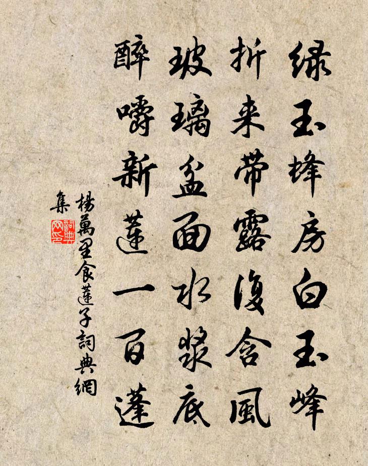 綠玉蜂房白玉峰,折來帶露復含風。玻璃盆面水漿底,醉嚼新蓮一百蓬。