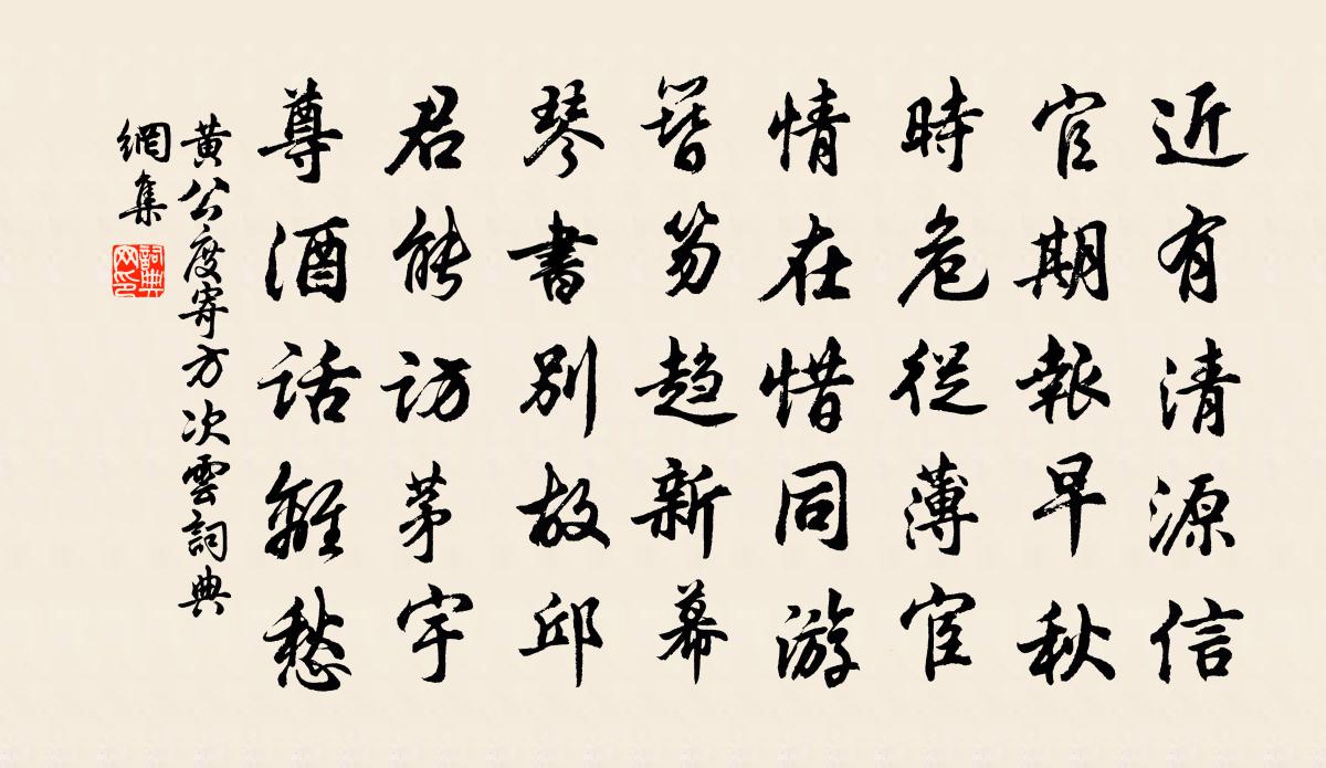 詩詞名句歷史字典書法欣賞書法字典國語詞典說文解字康熙字典古漢語字典標 題 作 者 詩 句 寄方次雲作者:黃公度 朝代:宋代寄方次雲原文近有清源信,官期報早秋。時危從薄宦,情在惜同游。簪笏趨新幕,琴書別故邱。君能訪茅宇,尊酒話離愁。詩詞問答問:寄方次雲的作者是誰?答:黃公度問:寄方次雲寫於哪個朝代?答:宋代黃公度寄方次雲書法欣賞寄方次雲書法作品詩詞推薦呈黃建州劉克莊〔宋代〕當年虎穴挺身臨,匹馬平欺萬綠林。余欲關弓常掩涕,汝能賣劍即回心。歌廉民已嗟來暮,微管吾安得至今。欲謁琴操拘幽操曹勛〔宋代〕風入我室兮,霜入我衣。言不敢發兮,聲不敢悲。惟皇考有訓兮,餘罪之歸。余心耿耿兮,其知者為誰。贈吳相士二首姚勉〔宋代〕不分麞頭愛虎頭,世間能有幾封侯。何如靜去修天爵,此貴人人可得求。次韻和酬永叔梅堯臣〔宋代〕春候倏已和,林上鳴鳥嘩。前日是清明,驟雨沾梨花。初聞結客游,愛此物景嘉。歌舞未終宴,夕暮各興嗟。所嗟題孟浩然霜曉吟行圖戴表元〔宋代〕霜風颯颯攪吟鞍,童怖驢愁作許難。便使玉堂遭遇去,朝參更是五更寒。寄題時氏小飛來三首姜特立〔宋代〕須彌納芥不為夸,曾向壺中貯九華。靈隱寺前天竺後,好峰都落在君家。自武義入松陽道中三首項安世〔宋代〕黃霧漫天作曉霜,征人相顧失顏行。雖然未快還鄉眼,腳底沙泥已是鄉。次古堂歲寒雜書韻翁森〔宋代〕清新如修竹,月露洗琅玕。愛之不能舍,一月三四看。伊人偉識量,文字餘波瀾。出處早見幾,在漢申屠蟠。風雨單同年求德興俞氏聚遠樓詩三首蘇軾〔宋代〕聞說樓居似地仙,不知門外有塵寰。幽人隱几寂無語,心在飛鴻滅沒間。去年冬轍以起居郎入侍邇英講不逾時遷中書舍蘇轍〔宋代〕講罷淵然似不勝,詩書默已契天心。高宗問答終垂世,未信諸儒測淺深。點絳唇(有懷蘇州)吳文英〔宋代〕明月茫茫,夜來應照南橋路。夢遊熟處。一枕啼秋雨。可惜人生,不向吳城住。心期誤。雁將秋去。天遠青山暮。送沈伯儁回霅連文鳳〔宋代〕江空歲城朔風寒,詩卷相隨曉出關。不為尋梅勞杖履,偶因問菊到我山。溪橋買酒經過熟,鄰舍分茶笑語間。若見又次蔣甥仲愚韻樓鑰〔宋代〕山色空濛雪更奇,滿空擊碎吠琉璃。寒侵茅屋春無寐,凍合梅花夜不知。泛泛輕舟勝路滑,洋洋流水樂人飢。興來偈頌一百零二首釋紹曇〔宋代〕久病腳力衰,嬰兒學移步。喪盡目前機,辯得塵中主。鼻直眼機,皮穿骨露。驢不成兮馬不成,且無描摸處。賺鐐生日蘇轍〔宋代〕扶杖今年見國人,懸弧早歲憶茲晨。佛身三世歸依地,鄰寺百僧清淨因。蘧子知非慚已晚,白公起定惜余春。舞雩孔君亮廊中新葺闕里西園棄官而歸蘇轍〔宋代〕宦情牢落苦思歸,君側無人留子思。手種松筠須灌溉,親修寢廟憶烝祠。定應此去添桃李,還似舊塋無棘茨。他日雜體詩 孫廷尉綽雜述江淹〔南北朝〕太素既已分。吹萬著形兆。寂動茍有源。因謂殤子夭。道喪涉千載。津梁誰能了。思乘扶接受翰。卓然凌風矯。靜偕學子游都嶠高登〔宋代〕甲子歲秋杪,負罪西南馳。腳歷山萬重,身墜天一涯。茅茨蔽聚落,培塿圍孤埤。何處有洞天,玄真之所棲。維南古意蒲壽宬〔宋代〕梳鬟照寒泚,寒泚知貞胸。整鬟摘秋芳,秋芳無冶容。平生幾偃蹇,今逐梁君鴻。既甘布裙績,寧厭短褐舂。剔目海陵歲暮孫應時〔宋代〕獵騎呼座地,胡笳落雁邊。梅花非故里,草色新新年。莫苦登樓望,聊須殢酒眠。江南多貴將,歌舞悵垂氈。名句推薦至言忤於耳而倒於心,非賢聖莫能聽韓非及後人《韓非子·難言》 為誰醉倒為誰醒,到今猶恨輕離別。呂本中《踏莎行·雪似梅花》 蠟炬風搖簾不下,竹影半牆如畫。項鴻祚《清平樂·池上納涼》 冉冉年時暮,迢迢天路征。陸機《梁甫吟》 命將征西極,橫行陰山側。李白《塞上曲》 爾曹身與名俱滅,不廢江河萬古流。杜甫《戲為六絕句·其二》 相送情無限,沾襟比散絲韋應物《賦得暮雨送李胄/賦得暮雨送李曹》 城上春雲覆苑牆,江亭晚色靜年芳。杜甫《曲江對雨》 山驛淒涼,燈昏人獨寢。陸游《清商怨·葭萌驛作》 龍魚失水難為用,龜玉蒙塵未見珍牟融《春日山亭》