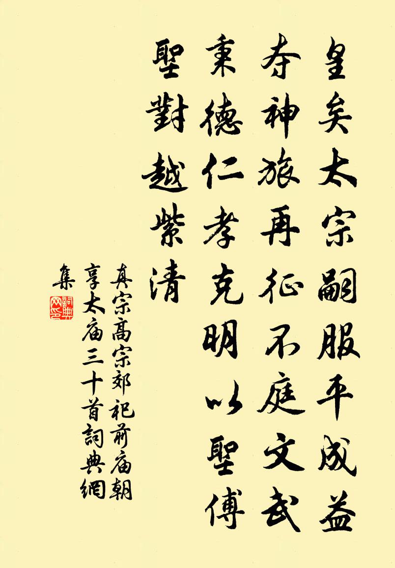 詩詞名句歷史字典書法欣賞書法字典國語詞典說文解字康熙字典古漢語字典標 題 作 者 詩 句 高宗郊祀前廟朝享太廟三十首作者:真宗 朝代:宋代原文皇矣太宗,嗣服平成。益奪神旅,再征不庭。文武秉德,仁孝克明。以聖傅聖,對越紫清。詩詞問答問:《高宗郊祀前廟朝享太廟三十首》的作者是誰?答:真宗問:該詩寫於哪個朝代?答:宋代書法欣賞高宗郊祀前廟朝享太廟三十首書法作品詩詞推薦詠木槿樹題武進文明府廳劉庭琦〔唐代〕物情良可見,人事不勝悲。莫恃朝榮好,君看暮落時。減字木蘭花 題雄州驛蔣興祖女〔宋代〕朝雲橫度,轆轆車聲如水去。白草黃沙,月照孤村三兩家。 飛鴻過也,百結愁腸無晝夜。漸近燕山,回首鄉關歸偈頌一百一十七首釋紹曇〔宋代〕要見心珠發耿光,只消一念破慳囊。昆蟲草木承恩國,世世叢林建法幢。送吳道明推官並問趙莊叔何公禮兄弟李石〔宋代〕送客涪水上,我家珠水湄。我適歸未得,此別那不思。高才府從事,芙蕖映清池。堂堂萬卷書,樂此簿領卑。公退山花子和凝〔唐代〕鶯錦蟬□[1]馥麝臍,輕裾花草曉煙迷。□□[2]顫金紅掌墜,翠雲低。星靨笑偎霞臉畔,蹙金開□[3]襯耄志十首劉克莊〔宋代〕衛王自謂過伊周,奕葉珥貂何足酬。四世五公禁太盛,六卿三家僭有由。地寒曾為國遠慮,天高未察臣志謀。京檜贈人胡宏〔宋代〕孝弟須知是本根,萬般功行且休論。聖門事業無多子,守此心為第一門。初寒陸游〔宋代〕江路常逢雨,山城早得寒。蘭凋初解佩,菊老尚加餐。節物知何負,情懷自鮮歡。浮生看已熟,不必夢邯鄲。酒泉子 胥山松濤(在縣東南十八里德化)吳鎮〔元代〕百畝胥峰,道是子胥磨劍處,嶙峋白石几番童。時有兔狐蹤。山前萬個長松樹。下有高人琴劍墓。周回蒼檜四時青祁山堡胡明善〔宋代〕臥龍扶漢室,躍馬阨秦原。星落干戈死,山空雲鳥存。昏鴉啼古戌,秋水咽孤村。愁讀出師表,淒淒傷我魂。東軒陸游〔宋代〕榴花零落滿蒼苔,薝蔔忘憂亦已開。湖海片帆先已具,少安無躁待秋來。聞李公擇飲傅國博家大醉二首蘇軾〔宋代〕兒童拍手鬧黃昏,應笑山公醉習園。縱使先生能一石,主人未肯獨留髡。不肯惺惺騎馬回,玉山知為玉人頹。紫雲題松江驛方乾〔唐代〕便向中流出太陽,兼疑大岸逼浮桑。門前白道通丹闕,浪里青山占幾鄉。帆勢落斜依浦漵,鐘聲斷續在滄茫。古今仙鶴篇武三思〔唐代〕白鶴乘空何處飛,青田紫蓋本相依。緱山七月雖長去,遼水千年會憶歸。緱山杳杳翔寥廓,遼水累累嘆城郭。經隨和馬宜州卜居七首冰雪軒王炎〔宋代〕史君甚愛竹弟,欲與渠為二難。歲晚青青玉立,不須俗眼同看。當塗趙炎少府粉圖山水歌李白〔唐代〕峨眉高出西極天,羅浮直與南溟連。名公繹思揮彩筆,驅山走海置眼前。滿堂空翠如可掃,赤城霞氣蒼梧煙。洞庭水調歌頭(和西外判宗湖樓韻)劉克莊〔宋代〕君看郭西景,渾不減孤山。飛樓突兀百尺,輪奐侈前觀。絕唱新詞寡和,墮淚舊碑無恙,往事付驚瀾。不見遼鶴返米元章催租詩帖贊岳珂〔宋代〕賑濟者何人,催租者何司。有令如斯,而無救於背馳。此古人所以設官以采詩也。酬友人見寄新文孟郊〔唐代〕為客棲未定,況當玄月中。繁雲翳碧霄,落雪和清風。郊陌絕行人,原隰多飛蓬。耕牛返村巷,野鳥依房櫳。我無題鵲巢寺姚勉〔宋代〕修竹蕭森影過牆,屧聲寂不響迴廊。道人獨坐清無對,飽殺薰風一味涼。名句推薦兒大詩書女絲麻,公但讀書煮春茶。黃庭堅《送王郎》 力拔山兮氣蓋世。時不利兮騅不逝。項羽《垓下歌》 時見幽人獨往來,縹緲孤鴻影。蘇軾《卜運算元·黃州定慧院寓居作》 澗戶寂無人,紛紛開且落。王維《辛夷塢》 千里稻花應秀色,五更桐葉最佳音。曾幾《蘇秀道中》 雲來山更佳,雲去山如畫。張養浩《雁兒落兼得勝令》 花褪殘紅青杏小。燕子飛時,綠水人家繞。蘇軾《蝶戀花·春景》 浮雲不系名居易,造化無為字樂天李忱《吊白居易》 相逢喚醒京華夢,吳塵暗斑吟發。詹玉《齊天樂·送童瓮天兵後歸杭》 破帽遮顏過鬧市,漏船載酒泛中流。魯迅《自嘲》