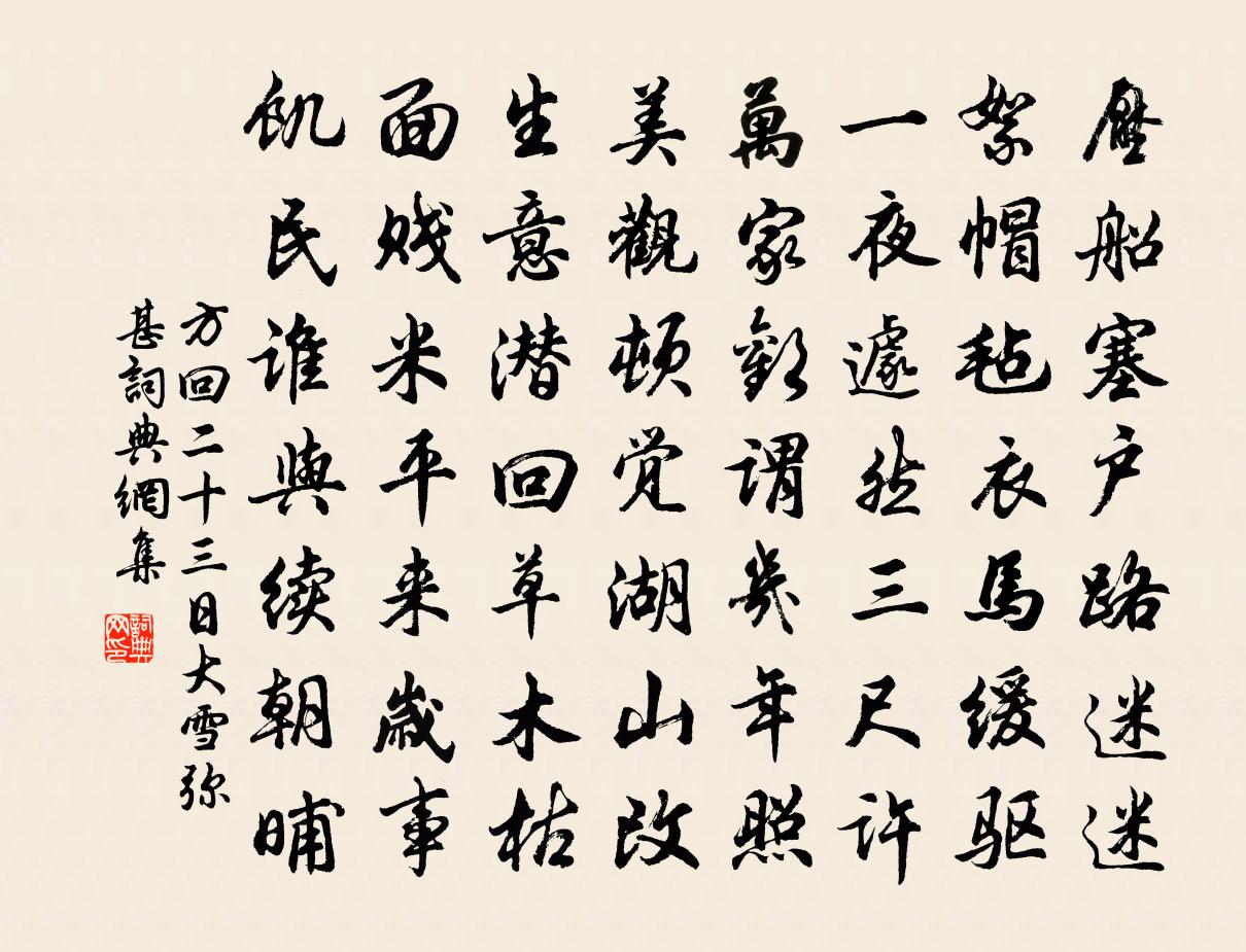 詩詞名句歷史字典書法欣賞書法字典國語詞典說文解字康熙字典古漢語字典標 題 作 者 詩 句 二十三日大雪彌甚作者:方回 朝代:宋代二十三日大雪彌甚原文壓船塞戶路迷迷,絮帽氈衣馬緩驅。一夜遽然三尺許,萬家歡謂幾年照。美觀頓覺湖山改,生意潛回草木枯。面賤米平來歲事,饑民誰與續朝晡。詩詞問答問:二十三日大雪彌甚的作者是誰?答:方回問:二十三日大雪彌甚寫於哪個朝代?答:宋代方回二十三日大雪彌甚書法欣賞二十三日大雪彌甚書法作品詩詞推薦晨讀道書陸游〔宋代〕家貧悔嗜酒,年邁思學道;雖雲善補過,見事恨不早。儒生守章句,忽忽遂將老,岩間得奇書,足以慰華皓。丹液租稅陸游〔宋代〕占星起飯犢,待月出輸租。遇嶮頻呼侶,扶轅數戒奴。畏飢懷餅餌,愁雪備薪樗。意象今誰識?當年賦兩都。懷舊詩 傷劉渢沈約〔南北朝〕處和無近累。天然有勝質。蕭瑟負高情。耿介懷秋實。義貴良為重。蘭摧非所恤。一罷平生言。寧知攜手日。梅夏應教詩薛道衡〔隋代〕長廊連紫殿。細雨應黃梅。浮雲半空上。清吹隔池來。集鳳桐花散。勝龜蓮葉開。幸逢為善樂。頻降濟時才。浪淘沙謝懋〔宋代〕黃道雨初乾。霽靄空蟠。東風楊柳碧毿毿。燕子不歸花有恨,小院春寒。倦客亦何堪。塵滿征衫。明朝野水幾重山答閻求仁黃庭堅〔宋代〕暮天攜手步河梁,把酒淹留斜日光。生當有別各異方,古人嗟此樂難當。大梁嬉遊少年場,春風花枝囀鸝黃。節物諸葛丞相廟(《蜀志》一作武侯祠)武少儀〔唐代〕執簡焚香入廟門,武侯神象儼如存。因機定蜀延衰漢,以計連吳振弱孫。欲盡智慧型傾僭盜,善持忠節轉庸昏。宣王西齋見雪寄呈靖彥惠宋庠〔宋代〕歲陰休沐坐空齋,集霰飄霙次第來。仙粉有痕緣幌入,亂花無數覓叢開。故裘御濕便羔袖,凍醴扶衰藉藥杯。向暮曾達臣輓詞二首楊萬里〔宋代〕議論千千古,胸懷一一奇。非關時棄我,不肯我於時。老鶴雲間意,長松雪外姿。平生獨知命,冷眼看人痴。題孔氏東園三首李廌〔宋代〕桐已參天柏已蒼,昔年曾見似人長。樹猶如此人休怪,賓主相逢鬢各霜。海觀閻蒼舒〔宋代〕雲南之陰大江東,二水奔騰如海沖。誰能具此壯觀眼,南定樓中今臥龍。秋蕊香仇遠〔宋代〕三徑歸來秋早。門外金鋪誰掃。東籬不種閒花草。惱亂西風未了。霜華侵鬢淵明老。南山曉。啼紅怨綠駸駸少。自子夜歌十八首晁采〔唐代〕儂既剪雲鬟,郎亦分絲髮。覓向無人處,綰作同心結。夜夜不成寐,擁被啼終夕。郎不信儂時,但看枕上跡。何時游金地寺郭印〔宋代〕山行無近遠,絕頂是休程。度石籃輿怯,穿雲履屐輕。林篁當路迸,泉水落溪鳴。更宿招提夜,寥然一境清。蝶戀花(春燕和韻)蕭漢傑〔宋代〕一縷春情風裡絮。海闊天高,那更雲無數。嬌顫畫梁非為雨。憐伊只合和伊去。欲話因緣愁日暮。細認簾旌,幾度春暮思平泉雜詠二十首竹徑李德裕〔唐代〕野竹自成徑,繞溪三里余。檀欒被層阜,蕭瑟蔭清渠。日落見林靜,風行知谷虛。田家故人少,誰肯共焚魚。暮春郊園雨霽趙湘〔唐代〕郊園春已暮,霽色射疏籬。地靜苔過竹,沙清樹入池。野人來盡日,山鳥話多時。偶傍松窗立,微風動七絲。答卜元嗣詩蔡邕〔兩漢〕斌斌碩人。貽我以文。辱此休辭。非余所希。敢不酬答。賦誦以歸。為趙氏題三桂堂蔡戡〔宋代〕千佛聯名未足多,書生榮遇已如何。鍾英況出神明胄,接武仍登甲乙科。郗氏一枝猶可貴,燕山五桂未能過。矧君蘇文忠歸潁帖贊岳珂〔宋代〕事師這情,期以百世。言雖不多,意則獨至。識以歲月,越王之孫。式時覽觀,用考大倫。名句推薦老柘葉黃如嫩樹,寒櫻枝白是狂花。白居易《早冬》 善御性者,不違金水之質;善為器者,不易方圓之用。姚察、姚思廉《梁書·列傳·卷二十一》 千山鳥飛絕,萬徑人蹤滅。柳宗元《江雪》 一春略無十日晴,處處浮雲將雨行。汪藻《春日·一春略無十日晴》 天然一段風騷,全在眉梢;平生萬種情思,悉堆眼角。曹雪芹《紅樓夢·第三回》 風風雨雨梨花,窄索簾櫳,巧小窗紗。喬吉《折桂令·客窗清明》 總是向人深處,當時枉道無情陸游《朝中措·代譚德稱作》 寒食後,酒醒卻咨嗟。蘇軾《望江南·超然台作》 征蓬出漢塞,歸雁入胡天。王維《使至塞上》 對秋深,離恨苦,數夜滿庭風雨。孫光憲《更漏子·對秋深》