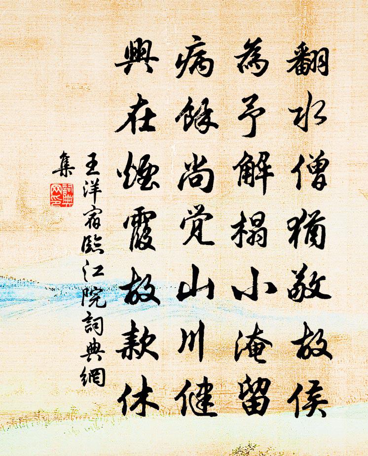 詩詞名句歷史字典書法欣賞書法字典國語詞典說文解字康熙字典古漢語字典標 題 作 者 詩 句 宿臨江院作者:王洋 朝代:宋代宿臨江院原文翻水僧猶敬故侯,為予解榻小淹留。病餘尚覺山川健,興在煙霞故款休。詩詞問答問:宿臨江院的作者是誰?答:王洋問:宿臨江院寫於哪個朝代?答:宋代王洋宿臨江院書法欣賞宿臨江院書法作品詩詞推薦筆山陶崇〔宋代〕晚來設色霞成綺,秋至回文雁作行。借問墨池何處是,一江環繞漱琳琅。淳熙十六年皇后冊寶十三首佚名〔宋代〕維天佑宋,盛事相仍。崇號三宮,甫茲浹辰。筆正中胸,縟禮載陳。邦家之慶,曠古無倫。自和二首劉克莊〔宋代〕橫身久塞楊朱路,灑泣俄悲墨子岐。陋矣射鉤而中者,壯哉鳴鼓以攻之。侍讀自無遷府分,中丞還有僦船時。八風代杭民答樂天元稹〔唐代〕翠幕籠斜日,朱衣儼別筵。管弦淒欲罷,城郭望依然。路溢新城市,農開舊廢田。春坊幸無事,何惜借三年。五更仇遠〔宋代〕愁多怯長夜,況乃眾病歸。何待六十年,老矣當知非。蘇幕遮方千里〔宋代〕扇留風,冰卻暑。夏木陰陰,相對黃鸝語。薄晚輕陰還閣雨。遠岸煙深,仿佛菱歌舉。燕歸來,花落去。幾度逢迎送馮圓仲吏部出守邛州周必大〔宋代〕戰伐驚前日,安危決此時。諸侯今有望,萬里子何之。市駿甘求骨,呼鷹苦待飢。寸心懸日月,不為去來移。秋日早行戴復古〔宋代〕雁叫秋容老,烏飛曙色分。晨炊何草草,宿酒尚醺醺。野曠連滄海,山長帶白雲。馬行沙上路,驚起白鷗群。宿裴庵葛天民〔宋代〕一徑松杉迥,成陰見日稀。山晴僧盡出,風暖燕交飛。結子花拋樹,攔人犬護扉。閒看山月上,清坐更添衣。歸自豫章,復過西山楊萬里〔宋代〕一眼苕花十里明,忽疑九月雪中行。我行莫笑無騶從,自有西山管送迎。竹溪直院盛稱起予草堂詩之善暇日覽之多有可劉克莊〔宋代〕齊魯多方士,荒唐競自媒。微茫隔煙霧,向望祀蓬萊。甲帳雲旗下,離宮月戶開。海難架橋渡,風易引船回。求藥宮詞葛起耕〔宋代〕銀漏疏風透玉屏,碧梧枝上雨三更。依稀似寫華清恨,雲冷香銷夢不成。奉和御製讀史記詩夏竦〔宋代〕陶唐明曆象,茂氣與天通。舉正分星度,歸餘定歲功。孟陬名不殄,南正道彌隆。自此垂三代,循環協大中。寄許介之樂雷發〔宋代〕惹得詩名遍九州,酒徒棋伴半公侯。離騷甘隱魚鱗屋,樂府多傳鳷鵲樓。醉葉幾窠藏菊徑,蠹荷三畝護漁舟。中原唐太宗金朋說〔宋代〕唐世閨門少謹嚴,三綱濁亂有由然。晉陽挾父私宮妾,巢刺王妃不可言。鶗鴂吟劉禹錫〔唐代〕朝陽有鳴鳳,不聞千萬祀。鶗鴂催眾芳,晨間先入耳。秋風白露晞,從是爾啼時。如何上春日,唧唧滿庭飛。和晁美叔蘇軾〔宋代〕反觀皆自直,相詆竟誰諛。事過始堪笑,夢中今了無。珍材尚空谷,疲馬正長途。未識造化意,茫然同一爐。好事近(晚集後園)趙彥端〔宋代〕尋得一枝春,驚動小園花月。把酒放歌添燭,看連林爭發。從今日日有花開,野水釀春碧。舊日愛閒陶令,作江南東陽郭希呂山園十詠小爛柯陳傅良〔宋代〕促膝有仙凡,爛柯無小大。誰知桃源人,不在秦晉外。病起山居日有幽事戲作陸游〔宋代〕鶴骨龜腸欲不禁,扶衰初喜罷呻吟。盆山冰釋書窗暖,藥灶香濃道院深。筆健乍臨新獲帖,手生重理舊傳琴。閉門名句推薦試上吳門窺郡郭,清明幾處有新煙。張繼《閭門即事》 豪傑向簡淡中求,神仙從忠孝上起。陳繼儒《小窗幽記·集醒篇》 角聲吹徹小梅花。夜長人憶家。趙長卿《阮郎歸·客中見梅》 他鄉生白髮,舊國見青山。司空曙《賊平後送人北歸》 見人不正,雖貴不敬也;見人有污,雖尊不下也。司馬遷《史記·日者列傳》 其出不出,間不容髮。班固《漢書·傳·賈鄒枚路傳》 綠葉兮素華,芳菲菲兮襲予;屈原《九歌》 晚來風起花如雪,飛入宮牆不見人。劉禹錫《楊柳枝詞九首》 山路元無雨,空翠濕人衣。王維《山中》 節用儲蓄,以備凶災范曄《後漢書·本紀·肅宗孝章帝紀》