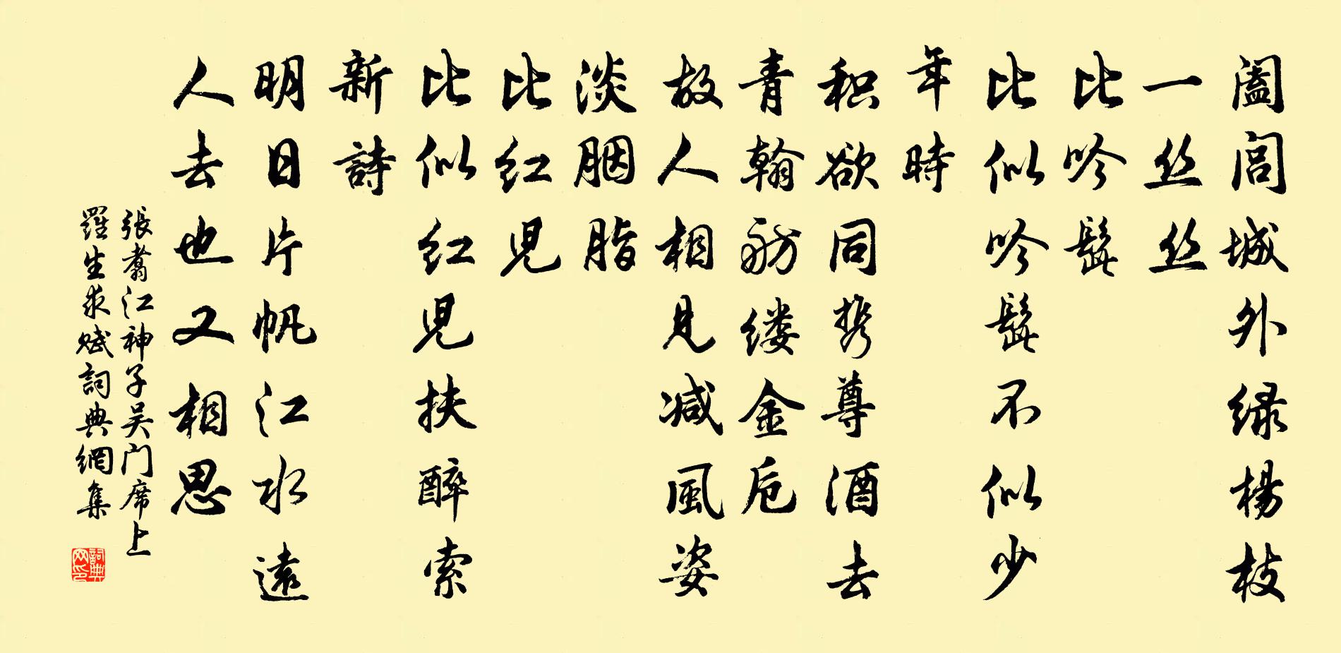 詩詞名句歷史字典書法欣賞書法字典國語詞典說文解字康熙字典古漢語字典標 題 作 者 詩 句 江神子 吳門席上,羅生求賦作者:張翥 朝代:元代原文闔閭城外綠楊枝。一絲絲。比吟髭。比似吟髭,不似少年時。積欲同攜尊酒去,青翰舫,縷金卮。故人相見減風姿。淡胭脂。比紅兒。比似紅兒,扶醉索新詩。明日片帆江水遠,人去也,又相思。詩詞問答問:《江神子 吳門席上,羅生求賦》的作者是誰?答:張翥問:該詩寫於哪個朝代?答:元代問:該詩是什麼體裁?答:詞書法欣賞江神子 吳門席上,羅生求賦書法作品詩詞推薦秦淮鄭獬〔宋代〕秦氏無過一再傳,欲圖萬里據秦川。漢家只在芒山下,卻謂金陵五百年。郴江百詠並序潮井阮閱〔宋代〕朔月盈虧已可疑,隨泉上下更難知。錢塘江在吳山外,誰見來時與落時。夜句三首陳師道〔宋代〕短短長長柳,三三五五星。斷雲當極目,不盡遠峰青。雜詩二首曹丕〔魏晉〕漫漫秋夜長,烈烈北風涼。展轉不能寐,披衣起彷徨。彷徨忽已久,白露沾我裳。俯視清水波,仰看明月光。天漢出真州文天祥〔宋代〕人人爭勸走淮西,莫犯翁翁按劍疑。我問平山堂下路,忠臣見詘有天知。句張俞〔宋代〕與誰天末分青髻,長向人間畫翠峨。喜雨虞儔〔宋代〕梅雨知時節,農家喜若何。積薪蠶下箔,鋤水稻分窠。綠有筍成竹,黃無麥作蛾。一春嘗苦旱,三日未雲多。貽高執中李新〔宋代〕朝朝騎馬走江城,晚弄輕煙暮帶星。應笑北堂窮處士,繞牆空覓聚書螢。贈嚴維耿湋〔唐代〕許詢清論重,寂寞住山陰。野路接寒寺,閒門當古林。海田秋熟早,湖水夜漁深。世上窮通理,誰人奈此心。點絳唇蔡伸〔宋代〕雲雨匆匆,洞房當日曾相遇。暫來還去。無計留春住。寶瑟重調,靜聽鶯弦語。休輕負。綺窗朱戶。好做風光主。鴉九劍白居易〔唐代〕歐冶子死千年後,精靈暗授張鴉九。鴉九鑄劍吳山中,天與日時神借功。金鐵騰精火翻焰,踴躍求為鏌鋣劍。劍成偶行後圃成三絕王炎〔宋代〕繁紅飛盡綠成陰,更有忘憂草色新。吏隱何心來對景,化工隨意自留春。送晦庵語孟集註輿諸侄劉宰〔宋代〕伊洛遺書偏討論,微言千古破童昏。要知此老殷勤意,送與君家好弟昆。題王才臣南山隱居六詠莊敬日強齋李壁〔宋代〕居人晏猶眠,行子夕未宿。此心從何生,卻道力不足。謝李剛中張耒〔宋代〕齊郎好詩風調清,語中有骨自老成。愈鑱愈出當有名,朅來宣城蓋為傾。文章不如金滿籯,我昔曾力今乃懲。少年秋花嘆陸游〔宋代〕秋花如義士,榮悴相與同;豈比輕薄花,四散隨春風。 * 抱殘枝,寂寞臥寒雨;拒霜更可憐,和蔕浮煙浦。古來依韻和子駿雪山圖文同〔宋代〕一白溪山六幅中,其間雪意與雲容。君應記得飛仙下,飈馭亭前此數峰。晚歸張耒〔宋代〕學省歸來門巷秋,伴眠書史滿床頭。低雲漠漠梧桐晚,屏上江山亦解愁。浣溪沙佚名〔宋代〕水閣池亭自有涼。楊謹仲和頃者三詩見貽複次韻六首趙蕃〔宋代〕去年才一識,何意復茲行。隱墅全依郭,幽居亦占名。萬金真國士,十室漫鄉評。漢制誰綿蕝,且徵齊魯生。名句推薦蘭陵美酒鬱金香,玉碗盛來琥珀光。李白《客中行 / 客中作》 牆頭馬上遙相顧,一見知君即斷腸。白居易《井底引銀瓶·止淫奔也》 聲一無聽,物一無文左丘明《國語·鄭語·史伯為桓公論興衰》 白梅懶賦賦紅梅,逞艷先迎醉眼開。曹雪芹《詠紅梅花得“梅”字》 飛雪帶春風,裴回亂繞空。劉方平《春雪》 四十三年,望中猶記,烽火揚州路。辛棄疾《永遇樂·京口北固亭懷古》 放眼暮江千頃,中有離愁萬斛,無處落征鴻。楊炎正《水調歌頭·把酒對斜日》 雨橫風狂三月暮,門掩黃昏,無計留春住。歐陽修《蝶戀花·庭院深深深幾許》 五更疏欲斷,一樹碧無情。李商隱《蟬》 獨自下層樓,樓下蛩聲怨。程垓《卜運算元·獨自上層樓》