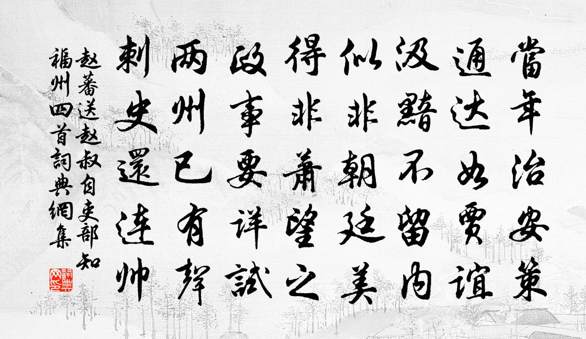 詩詞名句歷史字典書法欣賞書法字典國語詞典說文解字康熙字典古漢語字典標 題 作 者 詩 句 送趙叔自吏部知福州四首作者:趙蕃 朝代:宋代送趙叔自吏部知福州四首原文當年治安策,通達如賈誼。汲黯不留內,似非朝廷美。得非蕭望之,政事要詳試。兩州已有聲,刺史還連帥。詩詞問答問:送趙叔自吏部知福州四首的作者是誰?答:趙蕃問:送趙叔自吏部知福州四首寫於哪個朝代?答:宋代趙蕃送趙叔自吏部知福州四首書法欣賞送趙叔自吏部知福州四首書法作品詩詞推薦探梅次韻章庭倚李洪〔宋代〕江園試覓去年梅,花下遨遊得暫陪。脈脈早迎南日至,垂垂先放北枝開。江邊牆角添詩興,月落參橫喚夢回。一見鶴鄭谷〔唐代〕一自王喬放自由,俗人行處懶回頭。睡輕旋覺松花墮,舞罷閒聽澗水流。羽翼光明欺積雪,風神灑落占高秋。應嫌題嵩高隱者居鄭谷〔唐代〕豈易訪仙蹤,雲蘿千萬重。他年來卜隱,此景願相容。亂水林中路,深山雪裡鍾。見君琴酒樂,回首興何慵。送伯紀禮部造朝兼簡息庵二首劉克莊〔宋代〕傳聞東澗拜南宮,朝野皆忻泰道通。不比唐家超子厚,壹如元佑起坡公。官箴健論猶當續,雪月浮文不必工。十載和鄰幾前歲同濟川原甫賞閣後杏花今茲對之有韓維〔宋代〕春風幾日到蓬萊,仙伯初驚杏蕊開。繞樹獨聽清夜漏,懷人空對昔年杯。坐憐珍賞同心隔,愁見新芳入眼來。欲折題壁劉克莊〔宋代〕兒時挾彈長安市,不信人間果有愁。行遍江南江北路,始知愁會白人頭。贈防江卒六首 其五劉克莊〔宋代〕戰地春來血尚流,殘烽缺堠滿淮頭。明時頗牧居深禁,若見關山也自愁。瑤台散天花詞三首白玉蟾〔宋代〕翠幢絳節忽紛紛,空里笙簫節奏聞。碧玉宮中花似雪,蘂珠殿下鶴如雲。【雙調】錢絲泫喬吉〔元代〕避豪傑,隱岩穴,煮茶香掃梅梢雪。中酒酣迷紙帳蝶,枕書睡足松窗月,一燈蝸舍。聞許棠及第因寄桂雍貫休〔唐代〕時清道合出塵埃,清苦為詩不仗媒。今日桂枝平折得,幾年春色並將來。勢扶九萬風初極,名到三山花正開。更有舟中雜紀 其一王冕〔元代〕水竹連平野,人家帶夕陽。道途忘險阻,風景異尋常。借艇移行李,持杯看步光。英雄無所似,堪笑老夫狂。入廣至贛雪霽天朗聊舒耳目曾豐〔宋代〕數自離家今幾程,半風半雨半陰晴。白雲故作關愁色,烏鵲爭為報喜聲。來耗得梅偷傳送,去途惟柳管將迎。囊中和劉後村雜興胡仲弓〔宋代〕宦海風波亦足驚,得閒聊爾慰平生。雖無塞上雪堪臥,幸有山中田可耕。一老拂衣何太勇,群兒撼樹漫相輕。絕憐不與老為期白居易〔唐代〕不與老為期,因何兩鬢絲?才應免夭促,便已及衰羸。昨夜夢何在,明朝身不知。百憂非我所,三樂是吾師。閉目長門怨賈至〔唐代〕獨坐思千里,春庭曉景長。鶯喧翡翠幕,柳覆鬱金堂。舞蝶縈愁緒,繁花對靚妝。深情托瑤瑟,弦斷不成章。詩悼路鈐舍人德久潘公葉適〔宋代〕詩人冥漠去何許,花鳥相寬不作愁。耆舊只今新語少,九原喚起韋蘇州。廬陵李直卿以復名其齋求予詩久未暇也今日雪張栻〔宋代〕萬化根原天地心,幾人於此費追尋。端倪不遠君看取,妙用何曾間古今。宿瓜洲寄柳中庸李端〔唐代〕懷人同不寐,清夜起論文。月魄正出海,雁行斜上雲。寒潮來灩灩,秋葉下紛紛。便送江東去,徘徊只待君。感遇二十五首張耒〔宋代〕幽居念世務,頗復窺造物。通為一憒憒,愚智更出沒。漏天呀不補,淫雨方盪潏。豈獨無良苗,稂莠亦飄忽。惟余謁昌黎伯廟楊萬里〔宋代〕南海行幾遍,東潮欠一來。若無韓子廟,只有越王台。文字天垂日,興亡草上埃。聊吹鱷溪水,灑越六丁雷。名句推薦用天之道,分地之利,謹身節用,以養父母,此庶人之孝也。孔子及其弟子《孝經·庶人》 去年今日臥燕台,銅鼓中宵隱地雷王守仁《元夕二首》 天憐客子鄉關遠。借與花消遣。蔣捷《虞美人·梳樓》 聽元宵,往歲喧譁,歌也千家,舞也千家。王磐《古蟾宮·元宵》 仍憐故鄉水,萬里送行舟。李白《渡荊門送別》 名播蘭簪妃后里,暈生蓮臉君王側。王清惠《滿江紅·題南京夷山驛》 百歲落半途,前期浩漫漫。李白《登敬亭山南望懷古贈竇主簿》 霖雨泥我塗,流潦浩縱橫。曹植《贈白馬王彪·並序》 居軒冕之中,不可無山林的氣味;處林泉之下,須要懷廊廟的經綸。洪應明《菜根譚·概論》 少年射虎名豪,等閒赤羽千夫膳元好問《水龍吟·從商帥國器獵於南陽同仲澤鼎玉賦此》