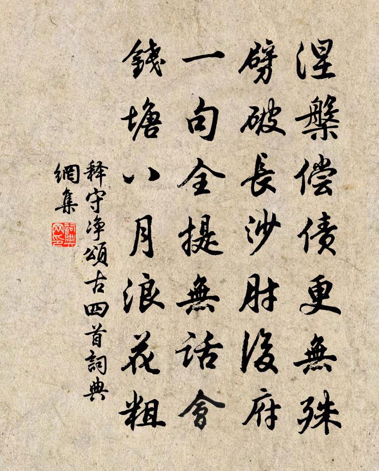 詩詞名句歷史字典書法欣賞書法字典國語詞典說文解字康熙字典古漢語字典標 題 作 者 詩 句 頌古四首作者:釋守淨 朝代:宋代頌古四首原文涅槃償債更無殊,劈破長沙肘後府。一句全提無話會,錢塘八月浪花粗。詩詞問答問:頌古四首的作者是誰?答:釋守淨問:頌古四首寫於哪個朝代?答:宋代釋守淨頌古四首書法欣賞頌古四首書法作品詩詞推薦相和歌辭。宮怨長孫佐輔〔唐代〕窗前好樹名玫瑰,去年花落今年開。無情春色尚識返,君心忽斷何時來。憶昔妝成候仙仗,宮瑣玲瓏日新上。拊心梨山廟朱繼芳〔宋代〕無處著詩名,梨山萬古青。人間留此像,天上作何星。祝史祠神醉,騷人謁夢醒。當時青紫楦,曾有許精靈。武佚名〔先秦〕於皇武王!無競維烈。允文文王,克開厥後。嗣武受之,勝殷遏劉,耆定爾功。次酬五羊李子先見寄劉黻〔宋代〕山深萬木寂,一片古心枯。昨夜梅花月,相期道不孤。贈相士蜀張二詩陳造〔宋代〕博古亦多藝,相形仍論心。司南輔名教,左契指升沈。好語空千紙,行橐未一簪。鄉關劍閣外,雁足謾歸音。唱和盈軸而燕集未期小詩請廣文兄為遨頭黃公度〔宋代〕煩君管領東君手,收拾風光尊俎中。與作遨頭共春燕,何須擁鼻學秋蟲。誰憐老子興不淺,自笑窮人詩轉工。趁取樂章五曲李復〔宋代〕鼓急兮收舞影,火銷兮膏燼冷。鄉人出門女巫醉,日下西山起陰暝。荇葉光,青幡長。壇前旗影動迴風,飛電忽轉謝襄陽陶宰惠靖節先生編年大本陳造〔宋代〕陶翁清節人可追,陶詩妙處吾所師。百篇昭昭揭日月,行雲流水無定姿。顛倒後前昧甲子,可忍白璧猶小疵。三家贈傳法光梵二大卿兼述譯場之盛宋庠〔宋代〕梵劫扶皇曆,高才會聖門。五天真釋種,三國舊王孫。譯詁生知慧。卿聯萬戶恩。齋熏光漢邸,結集盛秦園。交照用韻詠雪簡湘中諸友陳傅良〔宋代〕夾湘而住一塵無,不在瑤池在石渠。氣蓋松篁誰與競,今行螟蟘自相屠。山光際水天無間,夜色通朝月不如。中有次韻梅山弟感時四首陳著〔宋代〕世事滔滔趁夕暉,仰天咄咄付非非。乾坤誰解中撐拄,江海方聽此指揮。風舞南人新萬戶,灰颺西嶺舊三歸。只應月夜泛舟法振〔唐代〕西塞長雲盡,南湖片月斜。漾舟人不見,臥入武陵花。琴曲歌辭霹靂引沉佺期〔唐代〕歲七月,火伏而金生。客有鼓瑟於門者,奏霹靂之商聲。始戛羽以騞砉,終扣宮而砰鈴。電耀耀兮龍躍,雷闐闐兮登會稽蓬萊閣讀唐宋士大夫詩曾豐〔宋代〕盤盤矯矯臥龍峰,傑閣崢嶸龍腹中。柱腳下懸危踏軟,檐牙高豁巧銜空。江山互以青相繞,雲霧時翻黑自蒙。物態梅開五言一首劉克莊〔宋代〕陶翁書甲子,楚客紀庚寅。村叟無檯曆,梅開認小春。偈釋方會〔宋代〕薄福住楊歧,年來氣力衰。寒風凋敗葉,猶喜故人歸。囉囉哩,拈上死柴頭,且向無煙火。再用元韻二首王炎〔宋代〕倦遊莫忘大刀頭,老去行藏要熟謀。少病若能如萬福,上書安用學千秋。碧雲合處來何緩,黃鶴飛時挽不留。後夜舞曲歌辭。吳俞兒舞歌。弩俞陸龜蒙〔唐代〕牛來開弦,人為置鏃。捩機關,迸山谷。鹿駭澀,隼擊遲。析毫中睫,洞腋分龜。達堅壘,殘雄師,可以冠猛樂壯以宋香方紅送聽蛙翁答柬雲兩年來啖荔顆則動劉克莊〔宋代〕奩封名品餉耆年,誼比□芹曝背然。帖報能生採薪疾,譜言曾有荔枝仙。朵頤笑我脾神餒,節腹知君氣□全。來歲同諸公送李雲南伐蠻儲光羲〔唐代〕昆明封濱滇池,封蠢爾敢逆封常。天星耀鈇鑕,吊彼西南方。冢宰統元戎,太守齒軍行。囊括千萬里,矢謨在廟堂名句推薦流水便隨春遠,行雲終與誰同。晏幾道《臨江仙·鬥草階前初見》 對酒當歌,人生幾何!曹操《短歌行》 十月江南天氣好,可憐冬景似春華。白居易《早冬》 大兒鋤豆溪東,中兒正織雞籠。辛棄疾《清平樂·村居》 年年春日異鄉悲,杜曲黃鶯可得知。韋莊《江外思鄉》 鑒前世之興衰,考當今之得失司馬光《資治通鑑·後周紀五》 春來遍是桃花水,不辨仙源何處尋。王維《桃源行》 致虛極;守靜篤。老子《老子·道經·第十六章》 九萬里風鵬正舉。李清照《漁家傲·天接雲濤連曉霧》 棠梨花映白楊樹,儘是死生別離處。白居易《寒食野望吟》