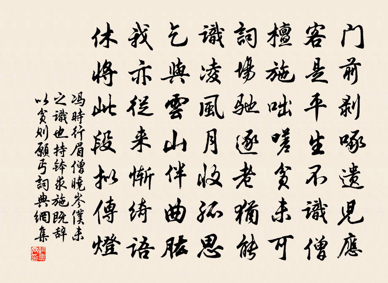 詩詞名句歷史字典書法欣賞書法字典國語詞典說文解字康熙字典古漢語字典標 題 作 者 詩 句 眉僧曉岑仆未之識也持缽求施既辭以貧則願丐作者:馮時行 朝代:宋代原文門前剝啄遺兒應,客是平生不識僧。檀施咄嗟貧未可,詞場馳逐老猶能。識凌風月收孤思,乞與雲山伴曲肱。我亦從來慚綺語,休將此段擬傳燈。詩詞問答問:《眉僧曉岑仆未之識也持缽求施既辭以貧則願丐》的作者是誰?答:馮時行問:該詩寫於哪個朝代?答:宋代書法欣賞眉僧曉岑仆未之識也持缽求施既辭以貧則願丐書法作品詩文賞析【原題】:眉僧曉岑仆未之識也持缽求施既辭以貧則願丐一詩詩未暇作而三至門知嗜好可喜也因書長句四韻以贈詩詞推薦八月五日妙寂道中陳宓〔宋代〕山間萬點綴黃瓊,儘是秋光釀得成。殘暑滿城痴未退,一枝能使去兼程。冬日寄獻庾員外羅鄴〔唐代〕曾謁仙宮最上仙,西風許醉桂花前。爭歡酒蟻浮金爵,從聽歌塵撲翠蟬。秋霽捲簾凝錦席,夜闌吹笛稱江天。卻思菩薩蠻·黃雲紫塞三千里納蘭性德〔清代〕黃雲紫塞三千里,女牆西畔啼烏起。落日萬山寒,蕭蕭獵馬還。笳聲聽不得,入夜空城黑。秋夢不歸家,殘燈落碎日用陸游〔宋代〕舊好疏毛穎,新知得麴生。幽居無一事,枕臂聽松聲。胡笳十八拍十八首王安石〔宋代〕此身飲罷無歸處,心懷百憂傷千慮。天翻地覆誰得知,魏公垂淚嫁文姬。天涯憔悴身,託命於新人。念我出腹子,九侯山神詩蔡如松〔宋代〕誰言少康真禹子,子孫九人流到此。誰言鬼侯遭紂虐,冤魄至今靈故壘。誕哉二說太荒唐,未識根原有初始。我曾奉送范宰秩滿還東陽林亦之〔宋代〕語違今幾日,猶更上層巒。情自緣君子,吾非送長官。沖寒去程遠,惜別賦誰難。政拙為遺愛,留將職者看。聞范秀才自蜀游江湖杜牧〔唐代〕蜀道下湘渚,客帆應不迷。江分三峽響,山並九華齊。秋泊雁初宿,夜吟猿乍啼。歸時慎行李,莫到石城西。賀吉州李守臘雪楊萬里〔宋代〕仁侯妙手作廬陵,民歌敏惠如神明。歌聲動天天降瑞,一夜幻出瓊瑤城。麗譙一新玉樓觀,郡治別起銀設廳。曉上岐亭五首蘇軾〔宋代〕君家蜂作窠,歲歲添漆汁。我身牛穿鼻,捲舌聊自濕。二年三過君,此行真得得。愛君似劇孟,扣門知緩急。家有自湘川東下立春泊夏口阻風登孫權城羅隱〔唐代〕吳門此去逾千里,湘浦離來想數旬。只見風師長占路,不知青帝已行春。危憐壞堞猶遮水,狂愛寒梅欲傍人。事往客有誦袁蒙齋得雨酬倡之什輒賡元韻誌喜也呈鄭清之〔宋代〕媧石補天玻璃聲,遇坎為雨離為晴。金烏玉兔旁午出,百二十官稱常明。下土臣敢再拜問,誰主風催民耕。天江津錢生遺筇竹斑杖戲作曾幾〔宋代〕筇山美竹天下聞,有客錢氏之礽雲。自言吾祖嫌杖晚,贈子九節斑爛文。尋幽已得濟勝具,傍險更策扶危勛。同行安公子晁端禮〔宋代〕漸漸東風暖。杏梢梅萼紅深淺。正好花前攜素手,卻雲飛雨散。是即是、從來好事多磨難。就中我與你才相見。便林寶文生日王炎〔宋代〕乾健運元氣,斗杓默迴旋。千歲生一聖,半千生一賢。間世有異稟,天意非徒然。皇極在人心,俗學無自得。天意早稼邢昉〔清代〕秋陰滿一川,刈獲在漁船。及此為農日,空知惜老年。水村連白鳥,溪屋覆青煙。日暮聞舂急,生涯亦可憐。孤雁三首趙蕃〔宋代〕孤雁哀哀叫曉霜,客衾如水待天光。不緣杜宇催歸去,未信寒猿解斷腸。次韻牟監薄方岳〔宋代〕幾攜筆硯傍書林,吟到更寒月未沈。有客忽從天祿至,人間便隔五雲深。與毛茶乾趙司法游東湖四首任希夷〔宋代〕野迥塵襟豁,湖平望眼寬。山蹊新雪澗,木葉半霜乾。歲晚成三友,清游集四難。樂哉忘爾汝,臭味本芝蘭。酬杜補闕初春雨中舟次橫江喜裴郎中相迎見寄許渾〔唐代〕江館維舟為庾公,暖波微淥雨濛濛。紅橋迤邐春岩下,朱旆聯翩曉樹中。柳滴圓波生細浪,梅含香艷吐輕風。郢歌名句推薦海燕歲微渺,乘春亦暫來。張九齡《歸燕詩》 隔水氈鄉,落日牛羊下,區脫縱橫。張孝祥《六州歌頭·長淮望斷》 去日兒童皆長大,昔年親友半凋零。竇叔向《夏夜宿表兄話舊》 故園渺何處,歸思方悠哉。韋應物《聞雁》 燕支落漢家,婦女無華色。李白《塞上曲》 遙憐小兒女,未解憶長安。杜甫《月夜》 二月巴陵日日風,春寒未了怯園公。陳與義《春寒》 舟遙遙以輕颺,風飄飄而吹衣。陶淵明《歸去來兮辭·並序》 昨夜醉眠西浦月。今宵獨釣南溪雪。洪适《漁家傲引·子月水寒風又烈》 鳥無聲兮山寂寂,夜正長兮風淅淅。李華《弔古戰場文》