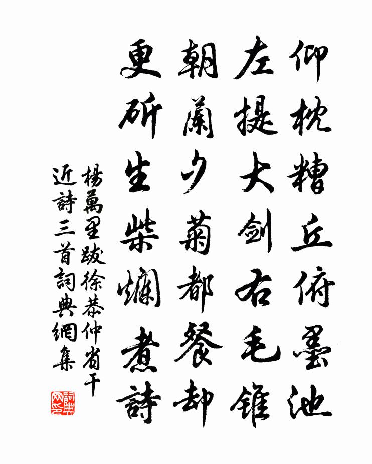 仰枕糟丘俯墨池,左提大劍右毛錐。朝蘭夕菊都餐卻,更斫生柴爛煮詩。