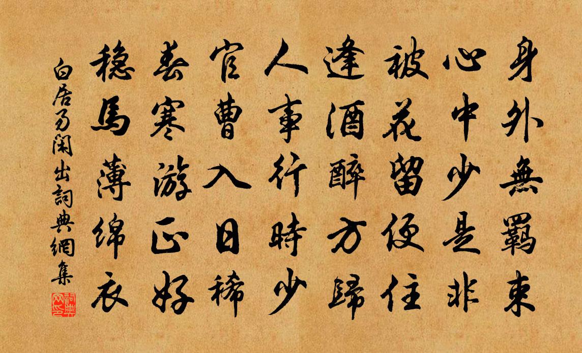 身外無羈束,心中少是非。被花留便住,逢酒醉方歸。