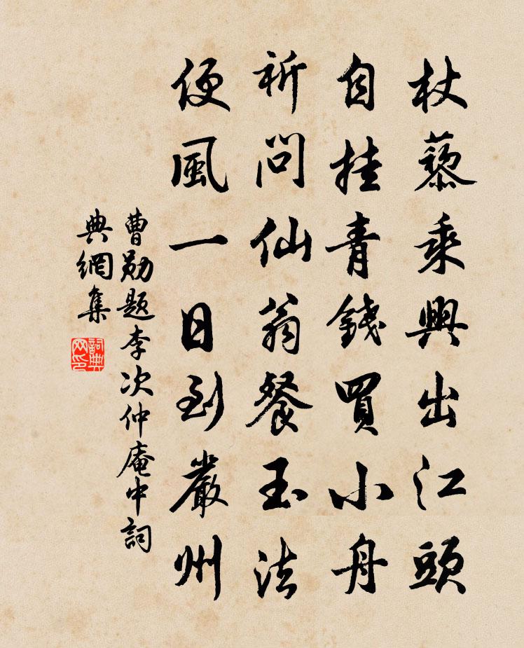 詩詞名句歷史字典書法欣賞書法字典國語詞典說文解字康熙字典古漢語字典標 題 作 者 詩 句 題李次仲庵中作者:曹勛 朝代:宋代題李次仲庵中原文杖藜乘興出江頭,自掛青錢買小舟。祈問仙翁餐玉法,便風一日到嚴州。詩詞問答問:題李次仲庵中的作者是誰?答:曹勛問:題李次仲庵中寫於哪個朝代?答:宋代曹勛題李次仲庵中書法欣賞題李次仲庵中書法作品詩詞推薦和世弼中秋月詠懷黃庭堅〔宋代〕一年中秋最明月,也照貧家門戶來。清光適從人意滿,壺觴政為詩社開。秋空高明萬物靜,此時乃見天地性。廣文蝶戀花歐陽修〔宋代〕六曲闌乾偎碧樹。楊柳風輕,展盡黃金縷。誰把鈿箏移玉柱。穿廉海燕雙飛去。滿恨遊絲兼落絮。紅杏開時,一霎原毀韓愈〔唐代〕古之君子,其責己也重以周,其待人也輕以約。重以周,故不怠;輕以約,故人樂為善。 聞古之人有舜者,其與虞沔州謁藏真上人戴叔倫〔唐代〕故侯將我到山中,更上西峰見遠公。共問置心何處好,主人揮手指虛空。戶部王曹長楊考功崔刑部二院長…因書所懷且敘所知權德輿〔唐代〕忽驚西江侶,共作南宮郎。宿昔芝蘭室,今茲鴛鷺行。子猷美風味,左戶推公器。含毫白雪飛,出匣青萍利。子云江亭晚望趙嘏〔唐代〕碧江涼冷雁來疏,閒望江雲思有餘。秋館池亭荷葉歇,野人籬落豆花初。無愁自得仙翁術,多病能忘太史書?聞說聞謗方回〔宋代〕修身可用要人知,暗室孤燈敢自欺。赤口燒城市有虎,熨平寸地聽群兒。賃宅王禹偁〔宋代〕萍流匏繫任行藏,惟指無何是我鄉。左宦只拋紅藥案,僦居猶住玉泉坊。白公渭北眠村舍,杜甫瀼西賃草堂。未有端午感懷舒岳祥〔宋代〕曾飲昌陽七十三,老來大布當輕衫。豫儲當采三年艾,緩計空尋六日蟾。楚俗舊時沉黍恨,唐宮此日賜衣沾。梔香奉和襲美初冬章上人院陸龜蒙〔唐代〕每伴來方丈,還如到四禪。菊承荒砌露,茶待遠山泉。畫古全無跡,林寒卻有煙。相看吟未竟,金磬已泠然。上丁余膰置酒招綽中德粲逢年洪邁〔宋代〕我生無幾求,畢願老葭菼。誰令事斗祿,飯糲羹不糝。書生亦可憐,微物有先感。朝來食指動,膰肉豐咀啖。恭惟晚秋農家陸游〔宋代〕我年近七十,與世長相忘。筋力幸可勉,扶衰業耕桑。身雜老農間,何能避風霜?夜半起飯牛,北斗垂大荒。贈別王鍊師往羅浮施肩吾〔唐代〕道俗駢闐留不住,羅浮山上有心期。卻愁仙處人難到,別後音書寄與誰。答委章和寄同舍韻孫應時〔宋代〕論交萬里外,意氣薄雲天。孤舟日已遠,擁書夜無眠。驪珠從何來,光景明一種。櫝藏懷永好,欲報心茫然。靜觀堂十偈汪晫〔宋代〕萬緣一息絲不掛,一個閒身煞瀟灑。靜中有味淡如如,啞子得夢難為話。題光福劉伯祥所藏東坡枯木及漁村落落照圖孫應時〔宋代〕灑落胸中丘壑,崢嶸海外風霜。幻出小山枯木,教成千載甘棠。郊廟歌辭。享太廟樂章。凱安四章佚名〔唐代〕瑟彼瑤爵,亞惟上公。室如屏氣,門不容躬。禮殷其本,樂執其中。聖皇永慕,天地幽通。禮匝三獻,樂遍九成。題德清教場亭張祁〔宋代〕浩蕩秋光里,扁舟過德清。樓台占山影,鵝鴨亂溪聲。小飲經年別,清歌一邑驚。娟娟照人月,還憶謝宣城。憶越州薛奎〔宋代〕照湖方乾吟格高,搜清研奇含爛毫。中天無雲水中月,虛明晶曜忘回舠。和袁起岩郎中投贈七字二首楊萬里〔宋代〕故人一別兩相思,不但平生痛飲師。胸次五三真事業,筆端四六更歌詩。閉門覓句今無已,刻意傷春古牧之。臥雪名句推薦故人西辭黃鶴樓,煙花三月下揚州。李白《黃鶴樓送孟浩然之廣陵》 見善,修然必以自存也;見不善,愀然必以自省也。善在身,介然必以自好也;不善在身,菑然必以自惡也。荀子《荀子·修身》 秋風吹不盡,總是玉關情。李白《子夜吳歌·秋歌》 江上月明胡雁過,淮南木落楚山多。劉長卿《江州重別薛六柳八二員外》 聞道欲來相問訊,西樓望月幾回圓。韋應物《寄李儋元錫》 王孫莫把比蓬蒿,九日枝枝近鬢毛。鄭谷《菊》 鄉書何處達?歸雁洛陽邊。王灣《次北固山下》 依舊,依舊,人與綠楊俱瘦。秦觀《如夢令·春景》 望君煙水闊,揮手淚沾巾。劉長卿《餞別王十一南遊》 水滿有時觀下鷺,草深無處不鳴蛙。陸游《幽居初夏》