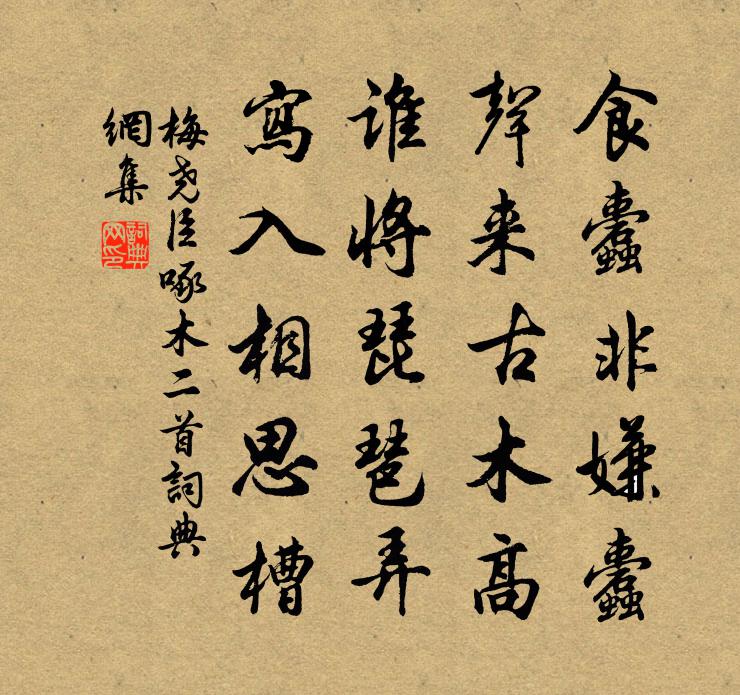 詩詞名句歷史字典書法欣賞書法字典國語詞典說文解字康熙字典古漢語字典標 題 作 者 詩 句 啄木二首作者:梅堯臣 朝代:宋代啄木二首原文食蠹非嫌蠹,聲來古木高。誰將琵琶弄,寫入相思槽。詩詞問答問:啄木二首的作者是誰?答:梅堯臣問:啄木二首寫於哪個朝代?答:宋代問:梅堯臣的名句有哪些?答:梅堯臣名句大全梅堯臣啄木二首書法欣賞啄木二首書法作品詩詞推薦沁園春(和吳尚書叔永)劉克莊〔宋代〕我所思兮,延陵季子,別來九春。笑是非浮論,白衣蒼狗,文章定價,秋月華星。獨步岷峨,後身坡潁,何必荀家記夢陸游〔宋代〕東吳春暮寒猶重,睡美不聞城角動。身雖衰惰怕出門,江山尚入幽窗夢。夢到青羊看修竹,道人告我丹將熟;試求雜言趙氏〔唐代〕上林園中青青桂,折得一枝好夫婿。杏花如雪柳垂絲,春風盪颺不同枝。慈雲避暑戴復古〔宋代〕相邀避暑到慈雲,細聽諸君講見聞。六月美宣歌北伐,五弦思舜奏南薰。不憂冷澹無歡伯,自致清涼有此君。想像螢王鎡〔宋代〕竹風吹動草根塵,熠熠高底自照身。每夜囊盛光到曉,書齋送輿少燈人。減字木蘭花(寄欽州劉叔冶史君)戴復古〔宋代〕羊城舊路。檀板一聲驚客去。不擬重來。白髮飄飄上越台。故人居處。曲巷深深通竹所。問訊桃花。欲訪劉郎不在送何叔信三首趙蕃〔宋代〕貴溪亦復謂三山,去我冰溪一水間。舴艋篷籠不難買,有時乘興泊鷗灣。謝楊工曹陳與義〔宋代〕借屋三間稍離塵,攜書一束謾娛身。客居最負青春好,世事空隨白髮新。造化小兒真薄相,市朝大隱亦長貧。獨無孫知微畫文同〔宋代〕太古奇偉士,精思獨於畫。馳心入茫昧,萬物赴揮灑。當時一名重,顧陸非爾亞。卓哉青城筆,妙絕冠天下。寥寥次道車軒賦惜春韓維〔宋代〕青春忽已晚,去我劇奔馬。殘芳已掃園,濃綠空蔽野。春風欲有問,對酒不能把。人心正如此,狂雨自飛灑。失調名佚名〔宋代〕紗窗曉色朦朧。衡山道中遇雪四首趙蕃〔宋代〕老樹才能半白,遠山已沒全青。勝踐頗思朋盍,獨行定誰汝令。憑欄人·春日懷古趙善慶〔元代〕銅雀台空鎖暮雲,金谷園荒成路塵。轉頭千載春,斷腸幾輩人。傷盧長史居蕭元之〔宋代〕昔年傳得文標集,每對青燈一起予。偶訪袁人尋古事,舊時居處已民居。燕昭王徐鈞〔宋代〕嘗膽深思報復來,經綸須仗出群才。仇齊一掃如風葉,只為黃金早築台。念奴嬌辛棄疾〔宋代〕少年握槊,氣憑陵、酒聖詩豪餘事。縮手旁觀初未識,兩兩三三而已。變化須臾,鷗飛石鏡,鵲抵星橋□。搗殘秋余以檄出陳機宜往西津候別余阻風不得前曾豐〔宋代〕孺子未來圮水上,遠公已過虎溪頭。佳人密邇不相見,弱水瀰漫那自由。非負酪奴辜玉友,莫誅風伯訟陽侯。明年枕上艾性夫〔宋代〕畫蘭重補紙床屏,支石橫眠道氣清。杜宇不啼春一半,落花如夢雨三更。老心暗覓餘年健,萬感偏從靜夜生。最憶東籬雜題陸游〔宋代〕南陌歸雖人,東籬興又新。無求覺身貴,好儉失家貧。引水常終日,栽花又過春。桃源不須覓,已是葛天民。題效奇王柏〔宋代〕未識效奇處,得於詩卷間。屋邊環翠竹,窗外即青山。月向女牆過,煙凝老樹閒。不緣心匠巧,何以發天慳。名句推薦疏雨池塘見,微風襟袖知。賀鑄《南歌子·疏雨池塘見》 二月春花厭落梅。仙源歸路碧桃催。晏幾道《浣溪沙·二月春花厭落梅》 野徑雲俱黑,江船火獨明。杜甫《春夜喜雨》 聽元宵,往歲喧譁,歌也千家,舞也千家。王磐《古蟾宮·元宵》 以近知遠,以一知萬,以微知明。荀子《荀子·非相》 東風惡,歡情薄。陸游《釵頭鳳·紅酥手》 洞庭一夜無窮雁,不待天明盡北飛。李益《春夜聞笛》 譬之若水火然,善用之則為福,不能用之則為禍呂不韋《呂氏春秋·紀·孟秋紀》 歷冰霜、不變好風姿,溫如玉。陸容《滿江紅·詠竹》 忽然更作漁陽摻,黃雲蕭條白日暗。李頎《聽安萬善吹觱篥歌》
