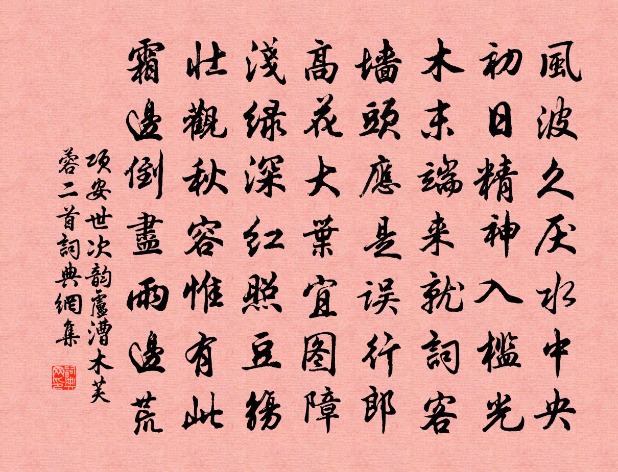 詩詞名句歷史字典書法欣賞書法字典國語詞典說文解字康熙字典古漢語字典標 題 作 者 詩 句 次韻盧漕木芙蓉二首作者:項安世 朝代:宋代次韻盧漕木芙蓉二首原文風波久厭水中央,初日精神入檻光。木末端來就詞客,牆頭應是誤行郎。高花大葉宜圖障,淺綠深紅照豆觴。壯觀秋容惟有此,霜邊倒盡雨邊荒。詩詞問答問:次韻盧漕木芙蓉二首的作者是誰?答:項安世問:次韻盧漕木芙蓉二首寫於哪個朝代?答:宋代項安世次韻盧漕木芙蓉二首書法欣賞次韻盧漕木芙蓉二首書法作品詩詞推薦再次韻贈郭高叔陳造〔宋代〕知君詩價舊連城,不作渠儂苦瘦生。血指有人慚妙斲,空弮如我合輸平。珠同魚目曾非匹,鼓過雷門定見輕。久已跋永明惟心訣釋紹曇〔宋代〕心已強名,訣從何來。永明剜肉作瘡,何山隔壁猜謎。急急將來付丙丁,大丈夫兒休擬議。如擬議, * 浪高魚化新秋自警王柏〔宋代〕直諒之言久不聞,秋來因作讀書吟。時時涵泳味無味,句句研窮深又深。老去已辜朋友望,閒中粗得聖賢心。無情絕句張翬〔唐代〕茫茫煙水上,日暮陰雲飛。孤坐正愁緒,湖南誰搗衣。視旱田賦呈上元簿楊明卿張伯子〔宋代〕輸蹄旦旦風塵表,入眼群山青未了。刺藤迎日子先紅,蕎麥得霜花漸老。叢祠詭怪畫村疃,古寺騫騰出林杪。征衫雜詩絕句十七首梅堯臣〔宋代〕塘上挽船人,塘泥深及脛。落日望前村,心將道途競。和梅龍圖公儀謝鷳歐陽修〔宋代〕有詩鶴勿喜,無詩鷳勿悲。人禽固異性,所趣各有宜。朝戲青竹林,暮棲高樹枝。咿呦山鹿鳴,格磔野鳥啼。聲音苦熱三首郭印〔宋代〕南方炎瘴極,所見異平生。日月雙風鞴,乾坤一火坑。泉源多少竭,官道少人行。卻憶岷山底,蕭然九夏清。偶書四首胡宏〔宋代〕青山萬古色,幾人曾賞心。蕭蕭木葉下,我坐復沉吟。和鮑守次韻林德祖十四首傅察〔宋代〕淮陰當日少年輕,官舍渾如寄旅亭。十載淒涼甘組綠,三冬諷誦伴燈青。才非徐孺慚懸榻,謅異陳鹹豈觸屏。獨幸賞牡丹楊萬里〔宋代〕把酒看花繞畫欄,病身只得忍輕寒。主人半醉花微倦,下卻珠簾放牡丹。偈二十二首釋洵〔宋代〕三年來在此山中,上下人情貴一同。今日溪頭休惜別,德雲只在妙高峰。中書程先生委校勘春秋分紀大參李雁湖文集因曾由基〔宋代〕雪柳梢頭鬧玉梅,萬家燈火月樓台。校讎幸不開天上,省得扶藜太乙來。紹興以後祀五方帝六十首佚名〔宋代〕[姑洗羽一奏]溫然仁矣,熙然春矣。龍駕帝服,穆將臨矣。我酒清矣,我餚洱矣。我樂備矣,我神顧矣。偈頌一百零二首釋慧遠〔宋代〕正如窮漢破衫袖,也不與萬法為侶。捺著頭,掀尾舉,西江吸盡鐵船浮,活捉泥牛和角煮。潑天大,些子許,君不題寄顏畫士姜元愷袁說友〔宋代〕丹青以意不以色,人不論形當論心。我有平生方寸地,煩君更向筆端尋。維揚少年與孟氏贈答詩(孟氏游家園作)佚名〔唐代〕可惜春時節,依然獨自游。無端兩行淚,長只對花流。次前韻送劉景文蘇軾〔宋代〕白雲在天不可呼,明月豈肯留庭隅。怪君西行八百里,清坐十日一事無。路人不識呼尚書,但見凜凜雄千夫。(君哭京兆龐尹馬戴〔唐代〕神州喪賢尹,父老泣關中。未盡群生願,才留及物功。清光沉皎月,素業振遺風。履跡莓苔掩,珂聲紫陌空。從來涼夜王鎡〔宋代〕斷階露草濕鳴蛩,桐樹涼生落葉中。月上小樓人未睡,曲欄敲遍倚西風。名句推薦未有知而不行者。王陽明《傳習錄·卷上·徐愛錄》 鮑魚蘭芷,不同篋而藏劉向《說苑·指武》 三載重陽菊,開時不在家。文森《九日》 唯明主為能愛其所愛,闇主則必危其所愛。荀子《荀子·君道》 湖山信是東南美,一望彌千里蘇軾《虞美人·有美堂贈述古》 欲安時興化,不先富而教之,其道無由。房玄齡《晉書·列傳·第三章》 銀箭金壺漏水多,起看秋月墜江波。李白《烏棲曲》 記得去年今夕,釃酒溪亭,淡月雲來去。文徵明《念奴嬌·中秋對月》 寶奩明月不欺人,明日歸來君試看。嚴仁《玉樓春·春思》 屋漏在上,知之在下。姚察、姚思廉《梁書·本紀·卷三》