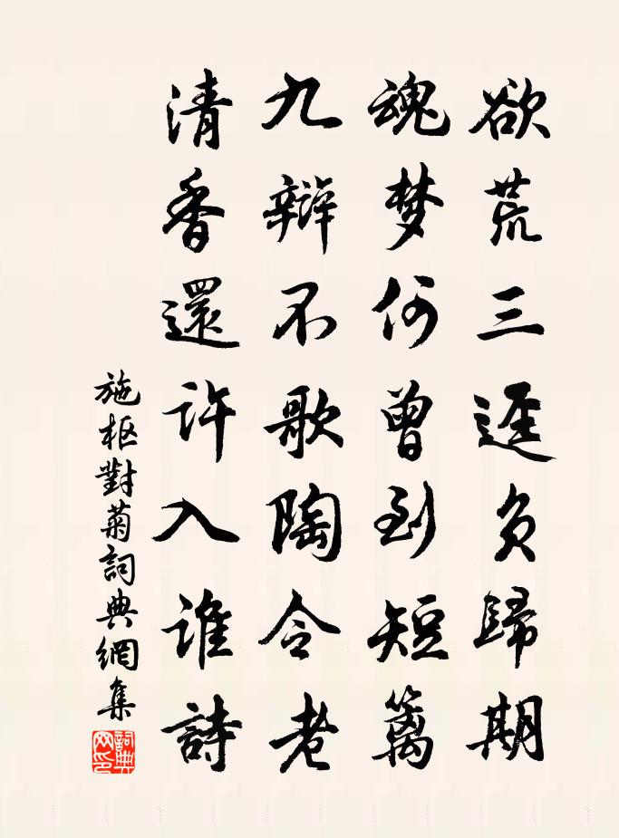 詩詞名句歷史字典書法欣賞書法字典國語詞典說文解字康熙字典古漢語字典標 題 作 者 詩 句 對菊作者:施樞 朝代:宋代對菊原文欲荒三逕負歸期,魂夢何曾到短籬。九辯不歌陶令老,清香還許入誰詩。詩詞問答問:對菊的作者是誰?答:施樞問:對菊寫於哪個朝代?答:宋代施樞對菊書法欣賞對菊書法作品詩詞推薦春光好(立道生日作)葛立方〔宋代〕去年曾壽生朝。正 * 、初舒翠翹。今歲雕堂重預宴,梨雪香飄。是時梨花盛開。明年應傍丹霄。看寶胯、重重在冬夜陸游〔宋代〕杞菊家風有自來,充飢藜糝不盈杯。雲迷野渡一聲雁,雪暗山村千樹梅。宴坐何妨面庵壁,長吟且復畫爐灰。歲殘飲牡丹高斯得〔宋代〕尚記年時醉我賓,抽簪起舞坐生春。誰呼七七逡巡手,重視三三夢幻身。獨樂園中老居士,沉香亭北謫仙人。吾今靜而善應釋重顯〔宋代〕對揚殊特本同參,誰自遼空強指南。今古不存師弟子,一輪秋月印寒潭。禪人並化主寫真求贊釋正覺〔宋代〕枯木形骸,野雲蹤跡。照兮夜色月摩,默也潭空秋入。三千界,露半身。九萬里,成一息。隨類應緣,何翅百億。送惠縣丞歸陽羨葉適〔宋代〕我在水心南岸村,尋常風景不堪論。等於天壤中間住,草醉花迷共記存。客至陸游〔宋代〕何處軒車客,能來桑麥村?一奴先入市,此老自應門。野果嘗皆澀,村醅厭尚渾。殘年亦何恨,治世作黎元。稚川約晚過進叔次前韻贈稚川並呈進叔黃庭堅〔宋代〕人騎一馬鈍如蛙,行向城東小隱家。道上風埃迷皂白,堂前水竹湛清華。春歸河曲定寒食,公到江南應削瓜。樽酒岑公洞洪咨夔〔宋代〕洞從開闢有,翁獨擅真清。磴古蒼苔澀,岩空細溜明。誰刊新即事,盡剔舊題名。太息今猶古,江山不世情。郡樓懷長安親友羊士諤〔唐代〕殘暑三巴地,沉陰八月天。氣昏高閣雨,夢倦下簾眠。愁鬢華簪小,歸心社燕前。相思杜陵野,溝水獨潺湲。蜀中登第答李搏六韻裴廷裕〔唐代〕何勞問我成都事,亦報君知便納降。蜀柳籠堤煙矗矗,海棠當戶燕雙雙。富春不並窮師子,濯錦全勝旱曲江。高卷句林亦之〔宋代〕講學紅泉不著書,只將心學授生徒。訪子威都事不遇黃清老〔元代〕清曉抱綠綺,來就夫君彈。夫君久已出,野水流花間。石澗度微雨,秋生湖上山。松陰坐永日,心與雲俱閒。人事偈頌一百零二首釋紹曇〔宋代〕狗舐油鐺,鼠咬甑箅。用盡機思,吃沒滋味。素梅 五十王冕〔元代〕西湖湖上水如天,狂客長吟夜不眠騎鶴歸來清興好,梅花無影月娟娟。書興四首汪炎昶〔宋代〕山如斲新稜,泉如注新碧。醉臥便妥帖,似換松根石。混俗悼昔遺,嗜靜竦今護。吸鯨條煩想,飫奇甦舊力。追往酬徐二中丞普寧郡內池館即事見寄柳宗元〔唐代〕鵷鴻念舊行,虛館對芳塘。落日明朱檻,繁花照羽觴。泉歸滄海近,樹入楚山長。榮賤俱為累,相期在故鄉。所苦之中無以遣悶更堤題新竹別獻五章幸賜披李至〔宋代〕乾籜墜莎何用掃,嫩根撐砌莫嫌妨。就中此地尤難得,惱殺東都白侍郎。破陣樂·露花倒影柳永〔宋代〕露花倒影,煙蕪蘸碧,靈沼波暖。金柳搖風樹樹,系彩舫龍舟遙岸。千步虹橋,參差雁齒,直趨水殿。繞金堤、曼為張莘疇題玉虛道院崔存〔宋代〕小結煙霞作洞天,日長無事即神仙。栽松待化山中石,種秫因分屋外田。滄海十洲人不到,丹砂九轉世空傳。何如名句推薦天下無難事,只怕有心人。曹雪芹《紅樓夢·第四十九回》 春風不相識,何事入羅幃。李白《春思》 壯歲旌旗擁萬夫,錦襜突騎渡江初。辛棄疾《鷓鴣天·有客慨然談功名因追念少年時事戲作》 一輪秋影轉金波,飛鏡又重磨。辛棄疾《太常引·建康中秋夜為呂叔潛賦》 田夫荷鋤至,相見語依依。王維《渭川田家》 柔條紛冉冉,葉落何翩翩。曹植《美女篇》 林表明霽色,城中增暮寒。祖詠《終南望余雪》 遇沉沉不語之士,且莫輸心;見悻悻自好之人,應須防口。洪應明《菜根譚·概論》 樓台處處迷芳草,風雨年年怨落花。曾棨《維揚懷古》 嘆息老來交舊盡,睡來誰共午甌茶。陸游《幽居初夏》