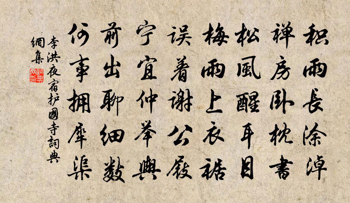 詩詞名句歷史字典書法欣賞書法字典國語詞典說文解字康熙字典古漢語字典標 題 作 者 詩 句 夜宿護國寺作者:李洪 朝代:宋代夜宿護國寺原文積雨長塗淖,禪房臥枕書。松風醒耳目,梅雨上衣裾。誤著謝公屐,寧宜仲舉輿。前出聊細數,何事擁犀渠。詩詞問答問:夜宿護國寺的作者是誰?答:李洪問:夜宿護國寺寫於哪個朝代?答:宋代李洪夜宿護國寺書法欣賞夜宿護國寺書法作品詩詞推薦飲裴侯家王安石〔宋代〕裴侯飲 * 向中,四坐賓客顏皆紅。掃除高館邀我入,自出糶麥憐民窮。天邊眼力破萬里,桑麻冥冥山四起。野心寄汶上梅堯臣〔宋代〕大第未嘗身一至,人猜巧宦我應非。彈冠不讀先賢傳,說劍休更短後衣。瘦馬青袍三十載,故人朱轂幾多違。功名書事釋紹嵩〔宋代〕松蓋環清韻,秋風倚杖前。棲毫思確論,擊竹自忻然。高鳥翔雲外,孤亭恰水邊。幽居經宿雨,無處不潺湲。木蘭花慢(丹谷園)張炎〔宋代〕萬花深處隱,安一點、世塵無。步翠麓幽尋,白雲自在,流水縈紆。攜歌緩游細賞,倩何人、重寫輞川圖。遲日香朝中措(茉莉擬夢窗)周密〔宋代〕彩繩朱乘駕濤雲。親見許飛瓊。多定梅魂才返,香瘢半掐秋痕。枕函釵縷,熏篝芳焙,兒女心情。尚有第三花在,變覺院登上人房老梅擅名滋久昔四靈與其先師薛嵎〔宋代〕四靈歿後誰知已,惟有清香滿舊枝。頭白山僧猶愛客,為曾親見老師時。石室釋文珦〔宋代〕石室靜而深,青山迭相映。且無籠檻羈,頗適猿鳥性。外物俱棄捐,仙塵亦清淨。人莫來扣門,驚回老僧定。沁園春 壬子和人為壽用止酒韻張野〔元代〕身世飄零,勳業何成,鬢華漸生。記去年歡笑,遨遊帝里,今年憔悴,臥病江城。直道難行,浮名識破,正要生平襲美將以綠罽為贈因成四韻陸龜蒙〔唐代〕三徑風霜利若刀,襜褕吹斷罥蓬蒿。病中只自悲龍具,世上何人識羽袍。狐貉近懷珠履貴,薜蘿遙羨白巾高。陳王嘉定二年冊皇太子四首佚名〔宋代〕於皇我宋,受命於天。升儲主鬯,衍慶卜年。典冊告備,庭工載虔。萬乘蒞止,端冕邃延。再賦前韻五首王洋〔宋代〕魯公世取龜蒙地,宜有田文出相門。恰似夷吾起江左,對胡羯未心蘭孫。蜀葵韻王柏〔宋代〕亭亭弱乾裊新涼,露浥精神導太陽。紫粟綠房醫士寶,黃裳紫袂道家妝。宗華衣錦趨炎晝,蜀本鎔金耐素傷。千古送丘正之海鹽州教授二首方回〔宋代〕去年七月朔風潮,倒海排山蜃鱷驕。亭□□□□□□,□宮未必盡飄飄。隨宜補葺燈窗破,循序扶持粟廩□。□友吾謫海南子由雷州被命即行了不相知至梧乃聞蘇軾〔宋代〕九疑枕聯綿屬衡枕湘,蒼梧枕獨在天一枕方。孤城吹角煙樹里,落月未落江蒼茫。幽人拊枕坐嘆息,我行忽至舜所曉過花橋入宣州界四首楊萬里〔宋代〕敬亭宛水故依然,疊障雙溪阿那邊。謝守不生梅老死,倩誰海內裳風煙。塞下曲李賀〔唐代〕胡角引北風,薊門白於水。天含青海道,城頭月千里。露下旗蒙蒙,寒金鳴夜刻。蕃甲鎖蛇鱗,馬嘶青冢白。秋靜元處士自洛歸宛陵山居見示詹事相公餞行之什因贈許渾〔唐代〕紫霄峰下絕韋編,舊隱相如結襪前。月落尚留東閤醉,風高還憶北窗眠。江城夜別瀟瀟雨,山檻晴歸漠漠煙。一頃送王昌涉侍御張祜〔唐代〕十里指東平,軍前首出征。諸侯青服舊,御史紫衣榮。入陳梟心死,分圍虎力生。畫時安楚塞,刻日下齊城。號令初冬陸游〔宋代〕已罷彈冠欲掛冠,一庵天遣養衰殘。雨荒園菊枝枝瘦,霜染江楓葉葉丹。羹釜帶鱗烹白小,蓬門和蔓系黃團。夕陽和郡守彭吏部按視湖亭凡二首周鍔〔宋代〕雙虹倒影上瞻楹,碧水澄空一鏡明。野草閒花無限趣,短藜幽榜不勝情。已知風月隨人意,聊為湖山載酒行。卻訝名句推薦安居不用架高堂,書中自有黃金屋。趙恆《勸學詩》 得賢者安存,失賢者危亡戴聖《大戴禮記·保傅第四十八》 那堪更被明月,隔牆送過鞦韆影。張先《青門引·春思》 吳洲如見月,千里幸相思。李白《送張舍人之江東》 明月照高樓,流光正徘徊。曹植《七哀》 抽刀斷水水更流,舉杯消愁愁更愁。李白《宣州謝朓樓餞別校書叔雲》 四百年來成一夢,堪愁。王安石《南鄉子·自古帝王州》 乍咽涼柯,還移暗葉,重把離愁深訴王沂孫《齊天樂·蟬》 三極彝訓,訓深稽古。致化歸一,分教斯五。劉勰《文心雕龍·宗經》 歲華向晚愁思,誰念玉關人老?蔡挺《喜遷鶯·霜天秋曉》