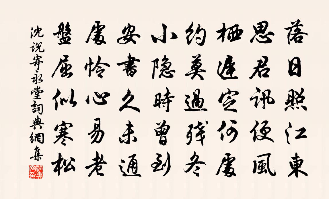 詩詞名句歷史字典書法欣賞書法字典國語詞典說文解字康熙字典古漢語字典標 題 作 者 詩 句 寄永堂作者:沈說 朝代:宋代寄永堂原文落日照江東,思君訊便風。棲遲定何處,約莫過殘冬。小隱時曾到,安書久未通。處憐心易老,盤屈似寒松。詩詞問答問:寄永堂的作者是誰?答:沈說問:寄永堂寫於哪個朝代?答:宋代沈說寄永堂書法欣賞寄永堂書法作品詩詞推薦山居五首白玉蟾〔宋代〕一片幽心臥紫霞,松梢凝翠夕陽斜。尚無心緒聽啼鳥,那有工夫掃落花。金剛隨機無盡頌如法受持分第十三釋印肅〔宋代〕既剖塵中卷,三千及大千。□□□□□,鼓眾看喧天。雨中示鄰里陸游〔宋代〕寒風吹細雨,白晝見日罕。經旬廢讀書,天豈成我嬾?比鄰各無聊,會面苦不款。未嘗燒茶鐺,而況把酒碗。高談賀新郎(壽畢府判)佚名〔宋代〕袞袞登台閣。問諸公、誰講誰明,詩書禮樂。前日畢星光焰里,有一濂渠伊洛。被翠玉、江山占卻。天下國家多少過無錫見李元德祭酒劉過〔宋代〕巒樹棲禽暖不飛,不如弓繳有危機。季鷹若悟蓴鱸好,應悔江東不蚤歸。春中湘中題嶽麓寺僧舍羅隱〔唐代〕蟾宮虎穴兩皆休,來憑危欄送遠愁。多事林鶯還謾語,薄情邊雁不回頭。春融只待乾坤醉,水闊深知世界浮。欲共題牧牛小卷方回〔宋代〕一童縱牛眠柳陰,一叟渡牛陂水深。此眠定無南可夢,此渡不憂人鮓瓮。蓑風笠雨開荒寒,是誰幻化生毫端。嘻其西湖舊夢汪元量〔宋代〕芙蓉照水桂香飄,車馬紛紛度六橋。錦幔籠船人似玉,隔花相對學 * 。次韻汪庭芝投贈方回〔宋代〕魚龍仙派古來聞,南渡樞臣七世孫。幸不幸間身且隱,玄之玄處道常尊。惜閒剩讀真書傳,入靜時思舊戶門。送往紫青賈似道〔宋代〕琥珀頭尖項紫青,翅如蘇葉肉還青。天生一付牙紅紫,交鋒一口立黃金。頤軒詩六首黃庭堅〔宋代〕辱莫辱多欲,樂莫樂無求。人生強學耳,萬古一東流。送雪竇長老曇穎梅堯臣〔宋代〕朝從雪竇請,暮捲雲衲輕。莫問居士病,自從他方行。吳霜點髭根,海烏隨眾迎。安隱彼道場,萬事都忘情。孝宗皇帝輓詞五首陳傅良〔宋代〕群才何輻輳,聖度似天寬。清蹕留儒館,黃金散將壇。風雲一語合,日月萬人看。攀附今無路,哀摧壯士肝。高宗郊前朝獻景靈宮二十一首真宗〔宋代〕有嚴大禮,對時休時。情文則粲,蠲潔必清。再臨觀興,以專以精。真游來格,永觀厥成。花舞史浩〔宋代〕仙客之名從此有。多謝風流,飛馭陪尊酒。持此一卮同勸後。願花長在人長壽。論語絕句一百首張九成〔宋代〕只是人生少琢磨,厄於陳蔡尚弦歌。道之興廢皆由命,雖愬如公奈命何。賦月李紳〔唐代〕月。光輝,皎潔。耀乾坤,靜空闊。圓滿中秋,玩爭詩哲。玉兔鏑難穿,桂枝人共折。萬象照乃無私,瓊台豈遮君同崔傅答賢弟王維〔唐代〕洛陽才子姑蘇客。桂苑(一作杜宛)殊非故(一作舊)鄉陌。九江楓樹幾回青。一片揚州五湖白。揚州時有下江兵甲辰臘日遣興蔣恢〔宋代〕臘里春前日日陰,西疇彌覺水雲深。梅邊句好無人覓,竹外煙輕有鳥吟。發興合窮千里目,著書聊寄百年心。翻雲王母祝語萱草花詩王義山〔宋代〕當年樹背入詩章,綠葉丹花有暉光。為道宜男仍永世,福齊太姒熾而昌。猶記夏侯曾與賦,灼灼朱華凝瑞露。紫微名句推薦誰料同心結不成,翻就相思結。夏完淳《卜運算元·秋色到空閨》 諂諛在側,善議障塞,則國危矣。墨子《墨子·01章 親士》 奈何今之人,雙目送飛鴻。李白《鞠歌行》 梅雪爭春未肯降,騷人閣筆費評章。盧鉞《雪梅·其一》 日暮長江里,相邀歸渡頭。儲光羲《江南曲四首》 憶對中秋丹桂叢。花在杯中。月在杯中。辛棄疾《一剪梅·中秋元月》 兒童散學歸來早,忙趁東風放紙鳶。高鼎《村居》 三軍可奪帥也,匹夫不可奪志也。佚名《論語十二章》 海棠未雨,梨花先雪,一半春休。王雱《眼兒媚·楊柳絲絲弄輕柔》 今逢四海為家日,故壘蕭蕭蘆荻秋。劉禹錫《西塞山懷古》