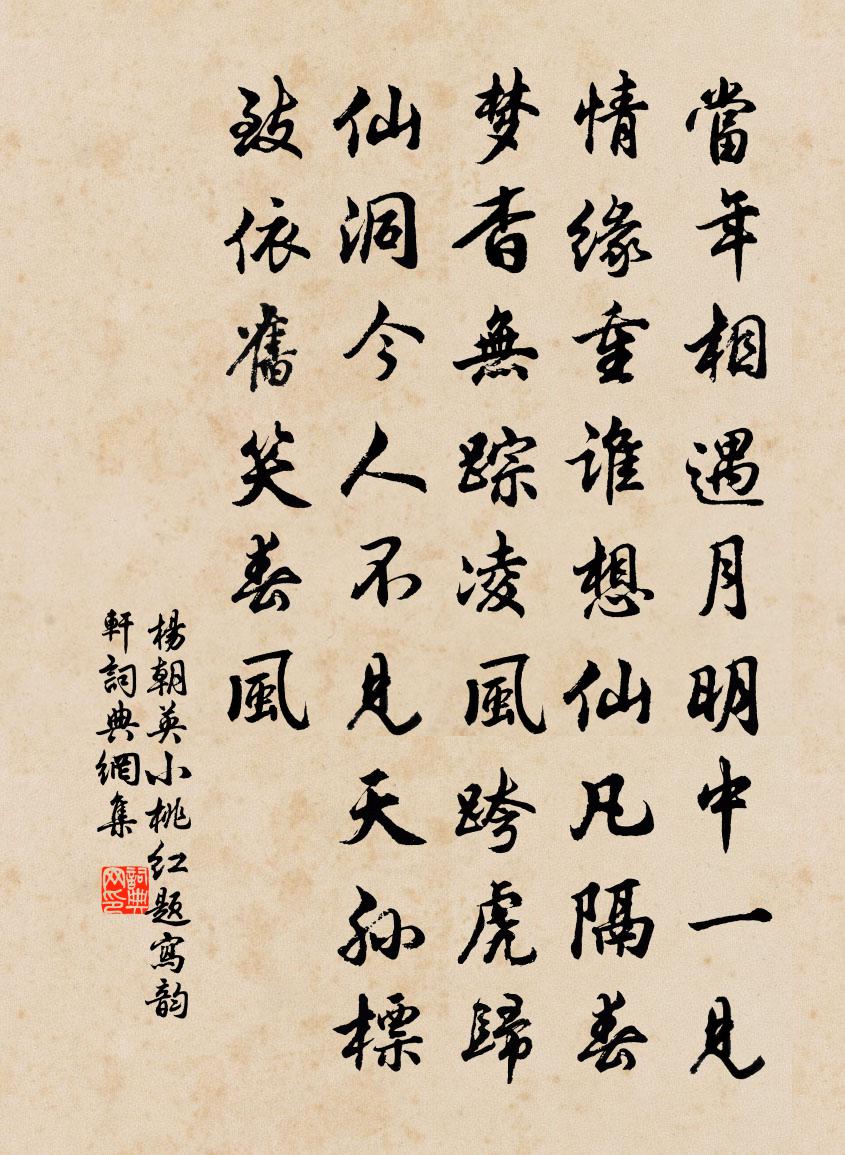 詩詞名句歷史字典書法欣賞書法字典國語詞典說文解字康熙字典古漢語字典標 題 作 者 詩 句 【越調】小桃紅 題寫韻軒作者:楊朝英 朝代:元代【越調】小桃紅 題寫韻軒原文當年相遇月明中,一見情緣重。誰想仙凡隔春夢,杳無蹤,凌風跨虎歸仙洞。今人不見,天孫標緻,依舊笑春風。詩詞問答問:【越調】小桃紅 題寫韻軒的作者是誰?答:楊朝英問:【越調】小桃紅 題寫韻軒寫於哪個朝代?答:元代楊朝英【越調】小桃紅 題寫韻軒書法欣賞【越調】小桃紅 題寫韻軒書法作品詩詞推薦再次林郎中韻陳造〔宋代〕幾年塊處斷足音,日詠楚歌常林。朋知久矣張邴我,矻矻抱瓮如漢陰。末路面顏殊自笑,故人情義無深。桑榆可收宋守敬引諺佚名〔唐代〕雙陸無休勢。池上雙鳧薛濤〔唐代〕雙棲綠池上,朝去暮飛還。更憶將雛日,同心蓮葉間。戰城南曹勛〔宋代〕相騎方侵掠,臨淮厲虎兵。三麾俱至地,一戰破思明。令下秋霜肅,威行草木驚。豈但全孤壘,能令復舊京。吾君送少章弟赴仁和主簿秦觀〔宋代〕我宗本江南,為將門列戟。中葉徙淮海,不仕但潛德。先祖實起家,先君始縫掖。議郎為名士,余亦忝詞客。風流頌古釋道顏〔宋代〕盲聾喑啞接不得,玄沙枉費閒心力。扁鵲盧醫拱手歸,三人俱是膏肓疾。登牛者蛾眉亭二首楊萬里〔宋代〕謪仙攜妓戲人寰,也被千花妒玉顏。半點閒情千古恨,一波秋水兩春山。錦袍宮燭雲霄上,白薴烏紗江海間。欲寄蚋劉克莊〔宋代〕蚓穿槁壤及黃泉,蜂採花房與柳綿。微蚋么麽殊嗜好,以醯為蜜甕為天。君實不飲酒栽菊詩以間之江休復〔宋代〕君實不飲酒,庭下多栽菊。不知黃花開,奈此杯中綠。凌晨煙露糍,後日風霜促。欲表君苦心,宜種子猷竹。聽琴邵雍〔宋代〕琴宜入夜聽,別起一般清。才覺哀猿絕,還聞離鳳鳴。青山無限好,白髮不須驚。會取坐忘意,方知太古情。明妃曲二首曾鞏〔宋代〕明妃未出漢宮時,秀色傾人人不知。何況一身寸漢地,驅令萬里嫁胡兒。喧喧雜虜方滿眼,皎皎丹心欲語誰。延壽清明白玉蟾〔宋代〕新除小壘燕方謀,又拜晴蜂萬戶侯。占破清明三五日,實封芍藥一千頭。花間作夢碧蝴蝶,柳外談禪黃栗留。物物句許庚〔宋代〕值雨花無怨,留春鳥自謀。揚雄墨池宋祁〔宋代〕宅廢經池在,人亡墨溜乾。蟾蜍兼滴破,科斗共書殘。蠹罷芸猶翠,蒸餘竹自寒。他楊無可問,撫物費長嘆。昭君台范成大〔宋代〕天生尤物元無種,萬里巴村出青冢。高台望思台已荒,東風溪漲流水香。嬋娟鍾美空萬古,翻使鄉山多醜女。灸眉次韻辛起李長篇王洋〔宋代〕十年抓牙官,百世傅風流。每思先賢范,爛漫涕不收。爭奪世界中,蕭灑自十洲。辛使 * 望,翹材錯薪槱。干戈詩王粲〔魏晉〕吉日簡清時。從君出西園。方軐策良馬。並馳厲中原。北臨清漳水。西看柏楊山。迴翔游廣囿。逍遙波渚間。苦雨(一本題下有思歸桃花崦五字)顧況〔唐代〕朝與佳人期,碧樹生紅萼。暮與佳人期,飛雨灑清閣。佳人窅何許,中夜心寂寞。試憶花正開,復驚葉初落。行騎賣鏡趙孟堅〔宋代〕賣明鏡,怕明鏡,從來面瘦兩高顴,況復星星添鬢影。世間萬事只宜晦,明鏡何須炯相對。鏡明賣卻昏不磨,從教寶祐二年皇子冠二十首佚名〔宋代〕秩秩福筵,籩豆也嘉。帝子至止,衿纓振華。周旋陟降,禮行三加。成人有德,匪驕匪奢。名句推薦欲往從之雪雰雰,側身北望涕沾巾。張衡《四愁詩》 豪傑向簡淡中求,神仙從忠孝上起。陳繼儒《小窗幽記·集醒篇》 如今風雨西樓夜,不聽清歌也淚垂。周紫芝《鷓鴣天·一點殘紅欲盡時》 千錘萬鑿出深山,烈火焚燒若等閒。于謙《石灰吟》 影孤憐夜永。永夜憐孤影。蘇軾《菩薩蠻·回文秋閨怨》 布帛尋常,庸人不釋。韓非及後人《韓非子·五蠹》 平蕪盡處是春山,行人更在春山外。歐陽修《踏莎行·候館梅殘》 目不能兩視而明,耳不能兩聽而聰。荀子《荀子·勸學》 蓬門未識綺羅香,擬托良媒益自傷。秦韜玉《貧女》 黃華自與西風約,白髮先從遠客生。元好問《秋懷》