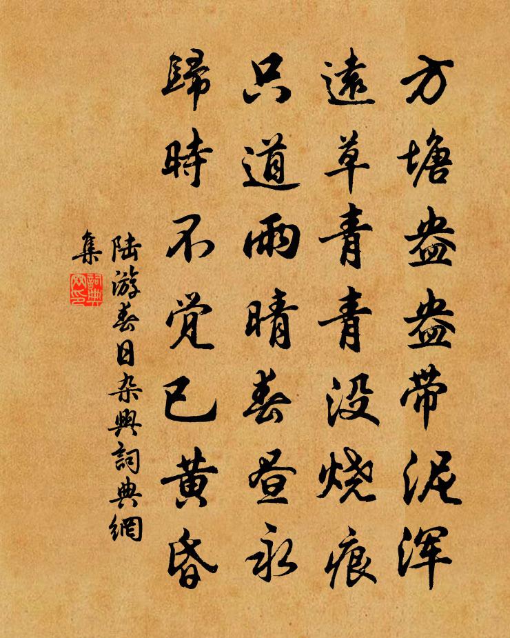 方塘盎盎帶泥渾,遠草青青沒燒痕。只道雨晴春晝永,歸時不覺已黃昏。