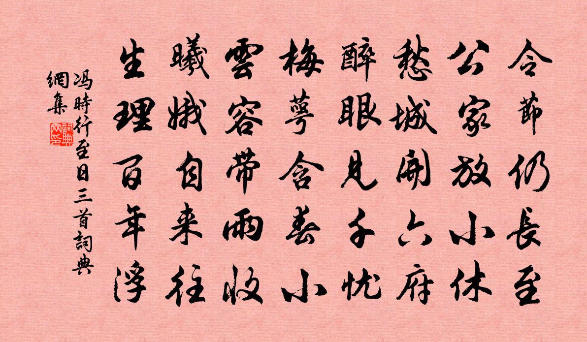 詩詞名句歷史字典書法欣賞書法字典國語詞典說文解字康熙字典古漢語字典標 題 作 者 詩 句 至日三首作者:馮時行 朝代:宋代至日三首原文令節仍長至,公家放小休。愁城開六府,醉眼見千憂。梅萼含春小,雲容帶雨收。曦娥自來往,生理百年浮。詩詞問答問:至日三首的作者是誰?答:馮時行問:至日三首寫於哪個朝代?答:宋代馮時行至日三首書法欣賞至日三首書法作品詩詞推薦少年行其一李白〔唐代〕擊築飲美酒,劍歌易水湄。經過燕太子,結托并州兒。少年負壯氣,奮烈自有時。因擊魯勾踐,爭博勿相欺。晨風佚名〔先秦〕鴥彼晨風,郁彼北林。未見君子,憂心欽欽。如何如何,忘我實多!山有苞櫟,隰有六駮。未見君子,憂心靡樂。寄無可上人賈島〔唐代〕僻寺多高樹,涼天憶重遊。磬過溝水盡,月入草堂秋。穴蟻苔痕靜,藏蟬柏葉稠。名山思遍往,早晚到嵩丘。李侍御歸炭谷山居,同宿華嚴寺趙嘏〔唐代〕家在青山近玉京,日雲紅樹滿歸程。相逢一宿最高寺,半夜翠微泉落聲。次答熊去非七夕遇雨見候陳普〔宋代〕太玄礦故在,原道塗猶迷。一朝無渣滓,仙派起簾溪。未能及鰥寡,不虛五緯奎。蝶戀花 月下醉書雨岩石浪辛棄疾〔宋代〕九畹芳菲蘭佩好。空谷無人,自怨蛾眉巧。寶瑟泠泠千古調。朱絲弦斷知音少。冉冉年華吾自老。水滿汀洲,何處池亭避暑金君卿〔宋代〕新花猶未出圓荷,月射風翻卷翠波。對酒強須通夕醉,暑天清景此為多。和晉齋兄韻袁甫〔宋代〕斟酌元氣,斗為帝車。四時迭運,其信也且。天道不言,莫非教歟。日之升矣,雲翳掃除。本無體質,湛然太虛。悲哉孔子沒王安石〔宋代〕悲哉孔子沒,千歲無麒麟。蚩蚩盡鉏商,此物誰能珍。漢武得一角,燔烹誣鬼神。更以鑄黃金,傳夸後世人。史亨父輓詩戴表元〔宋代〕玉食嬋娟非壽資,清懷猶勝幾男兒。壺觴竹寺尋秋月,燈火荷齋聽雨時。補衲有衣曾禮佛,吞舟無訣莫憑醫。平生燈下讀書戲作陸游〔宋代〕吾生如蠹魚,亦復類熠燿,一生守斷簡,微火寒自照。區區心所樂,那顧世間笑;閉門謝俗子,與汝不同調。滿江紅 次韻邵本初登富春山周權〔元代〕長嘯登臨,望不盡、海門修碧。人道□、江山高處,漢時遺蹟。一自耕雲人去後,幾番菸草凝秋色。任掀空、駭浪金陵雜興二百首蘇泂〔宋代〕縛屋牽牛旋旋歸,淮邊綠野盡耕犁。弓刀武備何曾識,只是當初田舍兒。泊下黃溪梅堯臣〔宋代〕黃溪晚來泊,得見田家微。刺艇斜陽下,耕洲載來歸。牛鳴向窂犢,犬喜入人衣。復有返樵者,檐枯翹雉肥。踏沙行晏幾道〔宋代〕雪盡寒輕,月斜煙重,清歡猶記前時共。迎風朱戶背燈開,拂檐花影侵簾動。繡枕雙鴛,香苞翠鳳,從來往事都如送吉州詹守五首彭龜年〔宋代〕骨鯁嘉言憶舊臣,故應赴詔近嚴宸。席前若下清明問,且說江南一味貧。謁御史張月卿梁棟〔宋代〕我家元住君鄰州,我父當時亦故侯。中原百年龍戰野,南濱一日鰲吞鉤。遺黎常恨舊隔絕,故鄉喜遇新交遊。路人次韻張通甫見貽李流謙〔宋代〕插架茫茫紛四部,莫向離騷泥蘅杜。文章何處如有神,心手相隨鷹搦兔。長卿醉死文君壚,渠輩但可折簡呼。淺慚巡衣錦軍制還鄉歌錢鏐〔唐代〕三節還鄉兮掛錦衣,碧天朗朗兮愛日暉。功成道上兮列旌旗,父老遠來兮相追隨。家山鄉眷兮會時稀,今朝設宴兮狀江南仲夏樊珣〔唐代〕江南仲夏天,時雨下如川。盧橘垂金彈,甘蕉吐白蓮。名句推薦同是人,類不齊,流俗眾,仁者希。李毓秀《弟子規·親仁》 終日兩相思。為君憔悴盡,百花時。溫庭筠《南歌子·倭墮低梳髻》 君疑臣則臣必死。羅貫中《三國演義·第一百一十九回》 力勝貧,謹勝禍,慎勝害,戒勝災。劉向《說苑·談叢》 得成比目何辭死,願作鴛鴦不羨仙。盧照鄰《長安古意》 憑闌半日獨無言,依舊竹聲新月似當年。李煜《虞美人·風回小院庭蕪綠》 落霞與孤鶩齊飛,秋水共長天一色。王勃《滕王閣序》 松下茅亭五月涼,汀沙雲樹晚蒼蒼。戴叔倫《題稚川山水》 君看獲稻時,粒粒脂膏香。黃燮清《秋日田家雜詠》 秋來愁更深,黛拂雙蛾淺楊無咎《生查子·秋來愁更深》