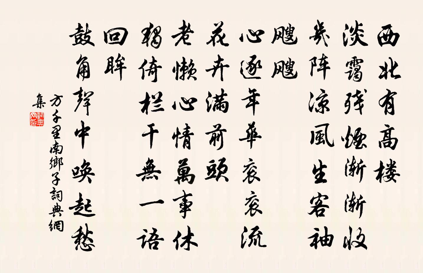 那西北方有一座高樓矗立眼前,堂皇高聳恰似與浮雲齊高。