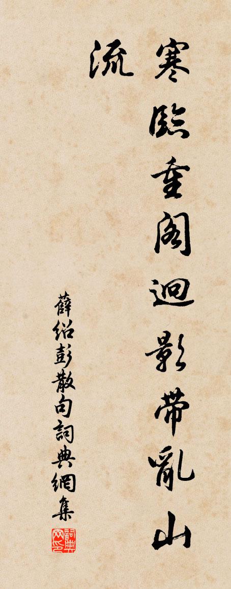 詩詞名句歷史字典書法欣賞書法字典國語詞典說文解字康熙字典古漢語字典標 題 作 者 詩 句 句作者:薛紹彭 朝代:宋代句原文寒臨重閣迥,影帶亂山流。詩詞問答問:句的作者是誰?答:薛紹彭問:句寫於哪個朝代?答:宋代薛紹彭句書法欣賞句書法作品詩詞推薦和劉珵西湖十洲竹嶼舒坦〔宋代〕欲問葛陂安在哉,端疑波底化龍來。子猷此興君知否,小徑何妨卷竹開。秋日留題蔣亭羅鄴〔唐代〕西風才起一蟬鳴,便算關河馬上程。碧浪鷁舟從此別,丹霄鵠箭忍無成。二年芳思隨雲雨,幾日離歌戀旆旌。回首東風第一枝 憶梅張翥〔元代〕老樹渾苔,橫枝未葉,青春肯誤芳約。背陰未返冰魂,陽梢已含紅萼。佳人寒怯,誰驚起、曉來梳掠。是月斜、花故司徒兼侍中贈太傅北平王輓詞權德輿〔唐代〕授律勛庸盛,居中鼎鼐和。佐時調四氣,盡力淨三河。忽訪天京兆,空傳漢伏波。今朝麟閣上,偏軫聖情多。落梅徐集孫〔宋代〕春雨敲花逐水流,游蜂催課未知休。生來獨冷嫌無雪,別去相逢又隔秋。紫蒂窠窠凝酒恨,蒼苔點點落詩愁。黃昏和張按察秋山二首賦杭州何夢桂〔宋代〕三百餘年臥甲兵,天低雨露此生成。萬家都會樓台矗,千頃平湖舸艦輕。環佩玉堂人楚楚,靚妝珠箔女盈盈。回頭偈頌五十一首釋大觀〔宋代〕倒拈折箸攪滄溟,無限魚龍暗裡驚。一笑機關輕捩轉,東湖午夜月華明。示兩兒張九成〔宋代〕余性便靜素,於世寡所諧。惟余黃卷里,聊與古人偕。古人不可期,古人尚可窺。當其會意時,悠然忘渴飢。可憐臨江仙(辛未離杭至潤,別張弼秉道)蘇軾〔宋代〕我勸髯張歸去好,從來自己忘情。塵心消盡道心平。江南與塞北,何處不堪行。俎豆庚桑真過矣,憑君說與南榮。步月謠曹勛〔宋代〕太清天宇清且高,皎然冰鑒懸層霄。絳河水淺閬風息,蟾光度景搖金鰲。仙人縱駕游八極,鳳簫歌吹鳴嘈嘈。星宮雙溪寺釋文珦〔宋代〕復嶺雙重岡,塵緣此地忘。五峰朝寺古,雙澗出雲長。深靜宜棲隱,高寒易雪霜。擬登華頂去,幽徑旋鋤荒。用東坡韻賀可山得子葉茵〔宋代〕祥光一夜照鄉閭,遲曉鄰翁毓鳳雛。舉坐已夸沾玉果,傳家應不負詩書。生時恰恰逢秋半,長日駸駸課夜余。自顧過大浪灘鄭克已〔宋代〕急浪吹飛雪,鳴稿破曉灘。異鄉人易老,行路古來難。玉露晨初濕,天河夜不乾。飄流雙鬢白,未有一枝安。吊白居易李忱〔唐代〕綴玉聯珠六十年,誰教冥路作詩仙。浮雲不系名居易,造化無為字樂天。童子解吟長恨曲,胡兒能唱琵琶篇。文章疇依王柏〔宋代〕皇宋文明,周子天畀。不由師傳,道體默契。建圖屬書,以覺後覺。上接洙泗,下開河洛。別呂守三首黃公度〔宋代〕涉獵愧醇儒,南州入幕初。力疲三尺法,塵滿一床書。不有劉寬恕,何堪阮籍疏。才微甘冗長,感激辱吹噓。乘舟過賈收水閣收不在見其子三首蘇軾〔宋代〕愛酒陶元亮,能詩張志和。青山來水檻,白雨滿漁蓑。淚垢添丁面,貧低舉案蛾。不知何所樂,竟夕獨酣歌。裊裊春日與正仲坐山齋余隱几就睡既覺而正仲端坐舒岳祥〔宋代〕坐睡吾知味,觀書客更嘉。柴門桑舊曲,石逕筍新斜。花飲蜂歸國,巢成燕著家。此中真有意,高柳兩三鴉。登邕州城陶弼〔宋代〕夜半孤成百尺台,亂蟲聲里一樽開。憂邊日繞南雲下,戀闕心隨北斗回。輓霞溪高縣丞二首裘萬頃〔宋代〕公家原在洪崖宅,自是洪崖向上人。嗜酒一生真簡淡,風標八袠更精神。紛紛偶厭人間事,去去歸尋洞裡春。朱紱名句推薦沉恨細思,不如桃杏,猶解嫁東風。張先《一叢花令·傷高懷遠幾時窮》 恰如燈下,故人萬里,歸來對影。黃庭堅《品令·茶詞》 又聞子規啼夜月,愁空山李白《蜀道難》 曾逐東風拂舞筵,樂遊春苑斷腸天。李商隱《柳》 梧桐樹,三更雨,不道離情正苦。溫庭筠《更漏子·玉爐香》 天將暮,雪亂舞,半梅花半飄柳絮。馬致遠《壽陽曲·江天暮雪》 吟懷未許老重陽,霜雪無端入鬢長。序燈《九日吳山宴集值雨次韻》 露從今夜白,月是故鄉明。杜甫《月夜憶舍弟》 無稽之言,不見之行,不聞之謀,君子慎之。荀子《荀子·正名》 落日熔金,暮雲合璧,人在何處。李清照《永遇樂·落日熔金》