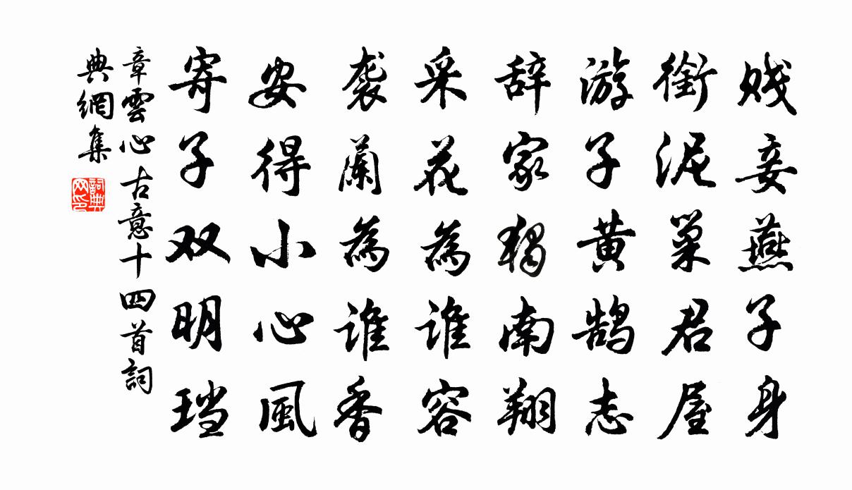 詩詞名句歷史字典書法欣賞書法字典國語詞典說文解字康熙字典古漢語字典標 題 作 者 詩 句 古意十四首作者:章雲心 朝代:宋代古意十四首原文賤妾燕子身,銜泥巢君屋。遊子黃鵠志,辭家獨南翔。採花為誰容,襲蘭為誰香。安得小心風,寄子雙明璫。詩詞問答問:古意十四首的作者是誰?答:章雲心問:古意十四首寫於哪個朝代?答:宋代章雲心古意十四首書法欣賞古意十四首書法作品詩詞推薦送張子勤九隴尉李流謙〔宋代〕老鳳高棲雛鳳飛,山林鐘鼎各相宜。出門馬首亭亭去,斂板胸中落落奇。頗憶濁醪過我夜,正愁碧草送君時。如何半睡韓偓〔唐代〕抬鏡仍嫌重,更衣又怕寒。宵分未歸帳,半睡待郎看。送耕存大參使日本陳深〔宋代〕東隅久不庭,搞疏出忠誠。不憚殊方便,期休四海兵。長虹貫日白,巨鷁壓波清。笑下扶桑國,歸來致泰平。禪人並化主寫真求贊釋正覺〔宋代〕百般千樣,會歸一相。一相無相識也無,廓與虛空等其量。河淡秋清,夜寒月亮。提攜出也來人間,明明歷歷諸緣再次韻因索紙筆方岳〔宋代〕誰何扣門聲啄木,踏雪逢迎寒起粟。詩筒過我捷於羽,墨滑豈供貂尾續。雲鏘孤響落瓊璈,頓覺聞韶不知肉。膽驚襄城即事(一作江樓有懷)崔湜〔唐代〕子牟懷魏闕,元凱滯襄城。冠蓋仍為里,沙台尚識名。山光晴後綠,江色晚來清。為問東流水,何時到玉京。平原郡王南園詩二十一首清芬姜特立〔宋代〕仙桂扶疏秋復春,一天風露散氤氳。常娥自有長生藥,相伴仙翁住月輪。詩襄陽舉人〔唐代〕流水涓涓芹努芽,織烏西飛客還家。荒村無人作寒食,殯宮空對棠梨花。明日大夫曾豐〔宋代〕明日大夫,何日卿兮。有蒼其佩,禮官清兮。匪朝伊夕,九繁纓兮。名遂身退,綿千齡兮。冬夜有懷柯田山人四首張元乾〔宋代〕雅欲賦招隱,何堪吊戰場。獨看星錯落,久立夜蒼茫。羽檄來東越,風煙隔下塘。安閒隨處有,冠蓋莫相望。詠史詩黃金台胡曾〔唐代〕北乘羸馬到燕然,此地何人復禮賢。若問昭王無處所,黃金台上草連天。偈頌十二首釋道璨〔宋代〕土木場中輥一回,平生已眼豁然開。廣寒宮殿無關鑰,撞破髑髏歸去來。送白糍與囊山老子王邁〔宋代〕東坡以春筍,名為玉版師。我獨謂玉版,正可名白糍。吃筍令人瘦,吃糍充人飢。慧眼曰不然,不如飲水肥。賞松菊(壽聖誕辰)曹勛〔宋代〕涼飆應律驚潮韻,曉對彩蟾如水。慶霄占夢月,已祥開天地。聖主中興大業,二南化、恭勤輔翊。撫宮闈,看儀型師繹諾湖莊之約畏風色不果來以詩見餉次其韻曹彥約〔宋代〕宴集慚非左氏莊,妄行村落似猖狂。人生適意真難遇,天意慳晴未易量。可但客衣吹杲杲,只愁春色去堂堂。輟行浣溪沙劉仲尹〔元代〕貼體宮羅試袷衣。冰藍嬌淺染東池。春風一把瘦腰支。戲鏤寶鈿呈翡翠,笑拈金翦下酴。最宜京兆畫新眉。行香子劉志淵〔元代〕妄認苦蘊。汩礙胸中。逐緣生、分別匆匆。好將萬境,同攝心宮。泯迷蹤,知諸相,體皆空。照見空宗。有用真空西江月(同前)張炎〔宋代〕落落奇花未吐,離離瑤草偏幽。蓬山元是不知秋。卻笑人間春瘦。瀟麗寒犀麈尾,玲瓏潤玉搔頭。半窗晴日水痕收江中誦經張說〔唐代〕實相歸懸解,虛心暗在通。澄江明月內,應是色成空。乙未渡淮點軍登壽春南樓李曾伯〔宋代〕曾向春秋識此州,西風吹袂過淮頭。人還故老衣冠喜,我為中原草木愁。屹若長城今重鎮,棄如敝屣昔輕謀。功名名句推薦赤闌橋盡香街直,籠街細柳嬌無力。陳克《菩薩蠻·赤闌橋盡香街直》 門前行樂客,白馬嘶春色。牛嶠《菩薩蠻·風簾燕舞鶯啼柳》 窈窕淑女,君子好逑。佚名《關雎》 黃師塔前江水東,春光懶困倚微風。杜甫《江畔獨步尋花·其五》 通則驕而偏,窮則棄而儑。荀子《荀子·不苟》 故聖人為法,必使之明白易知,名正,愚知遍能知之商鞅《商君書·定分》 一派青山景色幽, 前人田地後人收。范仲淹《書扇示門人》 欲寄書如天遠,難銷夜似年長。賀鑄《西江月·攜手看花深徑》 他人有心,予忖度之。佚名《巧言》 西風酒旗市,細雨菊花天。歐陽修《秋懷》