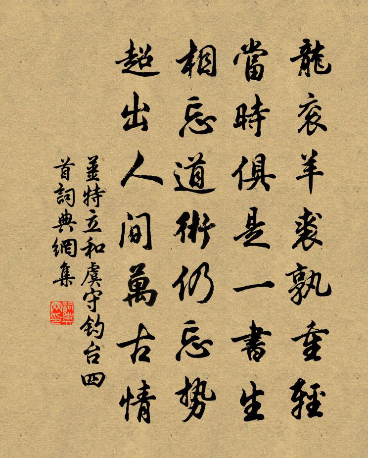 詩詞名句歷史字典書法欣賞書法字典國語詞典說文解字康熙字典古漢語字典標 題 作 者 詩 句 和虞守釣台四首作者:姜特立 朝代:宋代和虞守釣台四首原文龍袞羊裘孰重輕,當時俱是一書生。相忘道術仍忘勢,超出人間萬古情。詩詞問答問:和虞守釣台四首的作者是誰?答:姜特立問:和虞守釣台四首寫於哪個朝代?答:宋代姜特立和虞守釣台四首書法欣賞和虞守釣台四首書法作品詩詞推薦秋日納涼陳宓〔宋代〕艷艷銀河冷欲流,纖纖新月皎於眸。天街已覺清無暑,時有飛螢點綴秋。山茶一樹自冬至清明後著花不已陸游〔宋代〕東園三日兩兼風,桃李飄零掃地空。惟有山茶偏耐久,綠叢又放數枝紅。送人寇準〔宋代〕客亭殘照里,歌闋獨南行。芳草無斷色,離人多別情。遠途方不極,長笛更飛聲。莫動鄉關念,徒令白髮生。呈辛卿二首趙蕃〔宋代〕今昔名流幾許人,況於室邇更身親。南州行卷雖雲舊,東閣知名固若新。再見每懷見度遠,兩年空恨往來頻。其誰和許宰於尉間字韻詩後一首送其子赴太學舒邦佐〔宋代〕籋雲追電笑談間,爭看驊騮出帝閒。暫借短檠賒眼力,莫因遠別夢眉山。詩聞庭下頻趨鯉,易在床頭久鑄顏。趁取送米與人姜特立〔宋代〕乞米未作廉,送米豈為辱。且炊子美飯,試伯慁伯夷腹。雖無乳烝豚,便可蔬當肉。料得賢孟光,舉案歡自足。涼夜有懷 自此後詩並為應舉時作。白居易〔唐代〕清風吹枕席,白露濕衣裳。好是相親夜,漏遲天氣涼。渡江雲(壽婦人集曲名)陳夢協〔宋代〕瑞雲濃,縹緲弦月當庭,天香滿院。玉女傳言,把真珠簾卷。擁鵲橋仙,引江城子,醉蓬萊宴。吹紫玉簫,唱黃金送章彝下第綦毋潛〔唐代〕長安渭橋路,行客別時心。獻賦溫泉畢,無媒魏闕深。黃鶯啼就馬,白日暗歸林。三十名未立,君還惜寸陰。點絳唇袁去華〔宋代〕徙倚虛檐,柳陰疏處看飛鳥。水平池沼。雲影閒相照。點翰舒箋,字密蠅頭小。還揉了。路長山杳。寄得愁多少。小遊仙釋行海〔宋代〕青鳥銜書遍海涯,香風不返五雲車。可憐夜夜瑤池月,空照蟠桃一樹花。奉和九月九日登慈恩寺浮圖應制盧藏用〔唐代〕化塔龍山起,中天鳳輦迂。彩旒牽畫剎,雜佩冒香萸。寶葉擎千座,金英漬百盂。秋雲飄聖藻,霄極捧連珠。秋懷三十六首邵雍〔宋代〕昨日思沃漿,今日思去扇。豈止人戈矛,炎涼自交戰。利害生科情,好尚存乎見。欲人為善人,必須自為善。提胡慮邵定〔宋代〕擔胡慮,既不掛於寂靜之邱墟,又不浮之汗漫之江湖,又不持之騎龍雨八區,胡為喚人挈之登酒壚。桀紂以煙莽其湘江漁父齊己〔唐代〕湘潭春水滿,岸遠草青青。有客釣煙月,無人論醉醒。門前蛟蜃氣,蓑上蕙蘭馨。曾受蒙莊子,逍遙一卷經。又二絕文天祥〔宋代〕病中忽誤通真理,靜處專尋入定工。雨汗淋頭都不管,須臾和氣自沖融。勉詩僧齊己〔唐代〕莫把毛生刺,低佪謁李膺。須防知佛者,解笑愛名僧。道性宜如水,詩情合似冰。還同蓮社客,聯唱繞香燈。祥侍者化供釋子益〔宋代〕祥禪為眾下山來,七十高僧笑滿腮。袖裡金鎚曾未動,千門萬戶一時開。寄鄭器先一首王阮〔宋代〕與子如兄弟,為人痛疾讎。暫時離別去,且欲謗讒休。敢忘秦方瘠,深知越共舟。少須三逕就,他日再追游。泛舟丘葵〔宋代〕泛舟游碧渚,避世作漁翁。試問千鍾祿,何如一釣筒。雨添春後水,帆漲晚來風。緡卷看魚上,停橈倚荻叢。名句推薦垂柳覆金堤,蘼蕪葉復齊。薛道衡《昔昔鹽》 大天而思之,孰與物畜而制之!從天而頌之,孰與制天命而用之荀子《荀子·天論》 天階夜色涼如水,臥看牽牛織女星。杜牧《秋夕》 一上一上又一上,一上直到高山上。唐寅《登山詩》 停杯投箸不能食,拔劍四顧心茫然。李白《行路難·其一》 擊鼓其鏜,踴躍用兵。佚名《擊鼓》 一聲畫角譙門,豐庭新月黃昏,雪裡山前水濱。白樸《天淨沙·冬》 上林苑裡花徒發,細柳營前葉漫新。杜審言《春日京中有懷》 君子之心事,天青日白,不可使人不知洪應明《菜根譚·概論》 尺幅鮫鮹勞解贈,叫人焉得不傷悲。曹雪芹《紅樓夢·第三十四回》