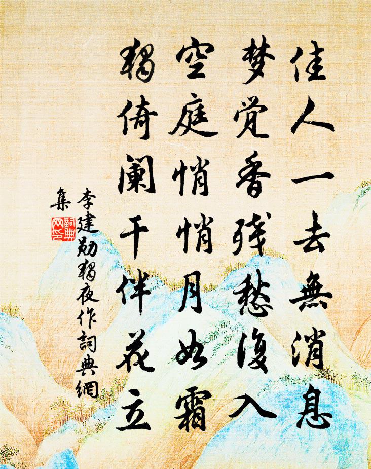 - 織錦相思樓影下,鈿釵暗約小簾間。吳文英《新雁過妝樓·中秋後一夕李方庵月庭延客命小妓過新水令坐間賦詞》