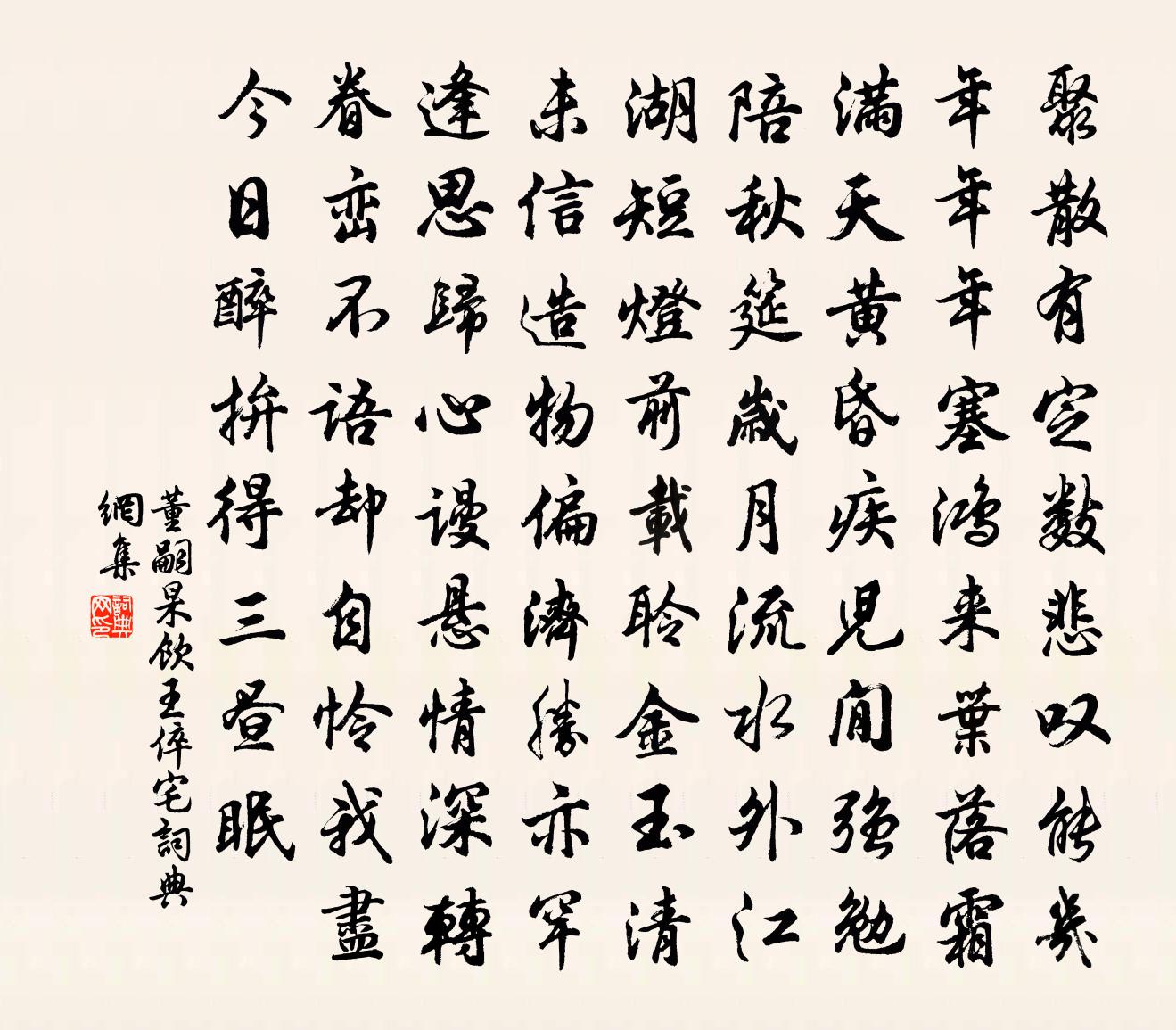 詩詞名句歷史字典書法欣賞書法字典國語詞典說文解字康熙字典古漢語字典標 題 作 者 詩 句 飲王倅宅作者:董嗣杲 朝代:宋代飲王倅宅原文聚散有定數,悲嘆能幾年。年年塞鴻來,葉落霜滿天。黃昏疾兒閒,強勉陪秋筵。歲月流水外,江湖短燈前。載聆金玉清,未信造物偏。濟勝亦罕逢,思歸心謾懸。情深轉眷巒,不語卻自憐。我盡今日醉,拚得三晝眠。詩詞問答問:飲王倅宅的作者是誰?答:董嗣杲問:飲王倅宅寫於哪個朝代?答:宋代董嗣杲飲王倅宅書法欣賞飲王倅宅書法作品詩詞推薦杏園徐夤〔唐代〕杏苑簫聲好醉鄉,春風嘉宴更無雙。憑誰為謔穆天子,莫把瑤池並曲江。次韻曹實聽舅氏彈琴方岳〔宋代〕有客夜鼓龍門琴,風露漠漠侵秋庭。妙彈幽響落指外,此意難以兩耳聽。參橫斗轉四山寂,但聞別鶴之夜怨,離鸞同陳秘監諸丈送黃商伯守常州石叔訪守上饒會彭龜年〔宋代〕惠山滋華池,玉山潤百卉。二賢競出守,山水亦 * 。人生別離難,朋舊走相謂。尅期會南湖,肯托簡書畏。敬酌和趙晉臣送糟蟹辛棄疾〔宋代〕人間緩急正須才,郭索能令酒禁開。一水一山十五日,從來能事不相催。芍藥五首張嵲〔宋代〕時人惟解愛芳菲,服媚香濃竟莫知。幽臥獨憐芳氣馥,世間惟有柳州詩。禪人並化主寫真求贊釋正覺〔宋代〕蒲寒柳衰,融懶顧痴。坐穩實逾劫,心空佛是誰。明而了妙,微而入離。天清河漢闊,零冷斗杓垂。借伴而來應供崇恩太后升袝十四首真宗〔宋代〕巡於潛邸,爰正坤人。閏雎化被,思齊名垂。柔德益茂,家邦以熙。皇心追崇,永羞牲粢。新上頭韓偓〔唐代〕學梳松鬢試新裙,訊息佳期在此春。為要好多心轉惑,遍將宜稱問傍人。贈劉方處士呂岩〔唐代〕六國愁看沉與浮,攜琴長嘯出神州。擬向煙霞煮白石,偶來城市見丹丘。受得金華出世術,期於紫府駕雲遊。年來樵童自入園來獻海棠因賦二章1舒岳祥〔宋代〕深蔓迷歸路,荒蹊未有家。誰知寒雨里,也作小春花。菌紫松間茁,菘黃澗底芽。道人新破戒,窗外種紅茶。下春風嶺張耒〔宋代〕東歸已過春風嶺,度盡千山路漸平。人事水泡能幾日,流光駒隙卻堪驚。居人落落多新屋,行店依依認舊程。世事減字木蘭花尹志平〔元代〕天堂豈遠。舉世迷人尋不見。地獄非親。無限眾生寒斷門。聰明上士。幸得為人勤發志。志在心平。片善無遺道自答竇二曹長留酒還榼李益〔唐代〕榼小非由榼,星郎是酒星。解酲元有數,不用嚇劉伶。送朱相士朱文昭族孫雲得劉碧雲相法葉適〔宋代〕南盪書林長砌蘿,碧雲鞋底曬庭莎。從今湖海須行遍,眼法雖親要看多。戀繡衾(無題)辛棄疾〔宋代〕長夜偏冷添被兒。枕頭兒、移了又移。我自是笑別人底,卻元來、當局者迷。如今只恨因緣淺,也不曾、抵死恨伊次季長韻回寄陸游〔宋代〕野人蓬戶冷如霜,問訊今惟一季長。舊好自均親骨肉,新知何怪薄心腸。開書字字論疇昔,遣使年年有故常。萬念贈王秘書張籍〔唐代〕早在山東聲價遠,曾將順策佐嫖姚。賦來詩句無閒語,老去官班未在朝。身屈只聞詞客說,家貧多見野僧招。獨從透碧霄(同前)曹勛〔宋代〕閬苑喜新晴。正桂華、飄下太清。寶篽涼秋,夢祥明月,天開輔盈成。宮闈女職遵慈訓,見海宇儀型。奉東朝、晨再用前韻二首袁燮〔宋代〕乞取刀圭救病身,韓公於此枉天真。何如夜坐忘軀殼,但有纖毫俱是塵。故徐州刺史贈吏部侍郎蘇公輓歌詞三首張九齡〔唐代〕韋玄封方繼相,封荀爽復齊封名。在貴封兼天爵,能賢出世卿。學聞金馬詔,神見玉人清。藏壑今如此,為山遂不名句推薦法之不行,自於貴戚。司馬遷《史記·秦本紀》 愁損翠黛雙蛾,日日畫闌獨憑。史達祖《雙雙燕·詠燕》 浪花有意千里雪,桃花無言一隊春。李煜《漁父·浪花有意千里雪》 朱顏那有年年好,逞艷游、贏取如今韓疁《高陽台·除夜》 君有妒臣,則賢人不至。荀子《荀子·大略》 未能拋得杭州去,一半勾留是此湖。白居易《春題湖上》 江南春盡離腸斷,苹滿汀洲人未歸。寇準《江南春·波渺渺》 昔去雪如花,今來花似雪。范雲《別詩》 篳路藍縷,以啟山林。左丘明《左傳·宣公·宣公十二年》 念去來、歲月如流,徘徊久、嘆息愁思盈。周邦彥《綺寮怨·上馬人扶殘醉》