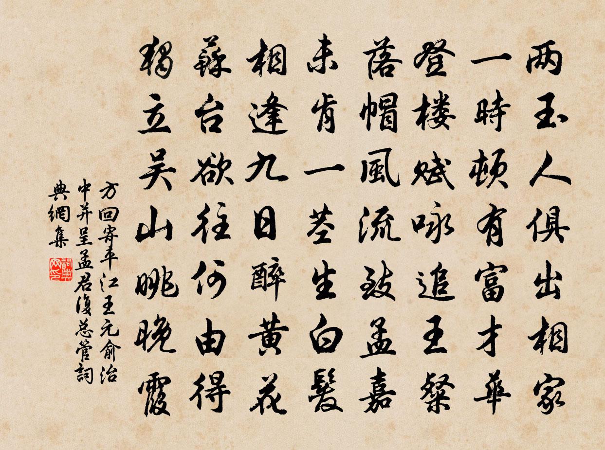 詩詞名句歷史字典書法欣賞書法字典國語詞典說文解字康熙字典古漢語字典標 題 作 者 詩 句 寄平江王元俞治中並呈孟君復總管作者:方回 朝代:宋代原文兩玉人俱出相家,一時頓有富才華。登樓賦詠追王粲,落帽風流致孟嘉。未肯一莖生白髮,相逢九日醉黃花。蘇台欲往何由得,獨立吳山眺晚霞。詩詞問答問:《寄平江王元俞治中並呈孟君復總管》的作者是誰?答:方回問:該詩寫於哪個朝代?答:宋代書法欣賞寄平江王元俞治中並呈孟君復總管書法作品詩詞推薦失調名佚名〔宋代〕千門燈火,九街風月。郊行釋紹嵩〔宋代〕默默看雲旋旋行,風光清美日華明。愁腸斷處春何限,勾引詩人太瘦生。浣溪沙·楊柳千條送馬蹄納蘭性德〔清代〕楊柳千條送馬蹄,北來征雁舊南飛,客中誰與換春衣。終古閒情歸落照,一春幽夢逐遊絲,信回剛道別多時。遷雞柵歌陸游〔宋代〕烏雞買來逾歲年,庭中赤幘何昂然。吾孫初生畏晨唱,家人共議欲汝捐。鳥窮必啄奴豈憚,雞賣將烹吾所憐。貴人答前篇劉禹錫〔唐代〕小兒弄筆不能嗔,涴壁書窗且當勤。聞彼夢熊猶未兆,女中誰是衛夫人。約同僚游佳陰馮伯規〔宋代〕老木垂垂綠覆欄,欄前仿佛見山□。盡教富貴饒公等,未許林泉□數廉。高宗皇帝挽祠三首韓彥質〔宋代〕為物聊經世,本無黃屋心。重明得傳器,大業若遺簪。典冊褒崇極,庭闈孝養深。昊天歸德報,不使二毛侵。道士磯張耒〔宋代〕匡廬奠九江,苗裔遍南服。橫江蔽原野,內外實一族。危磯插江生,石色擘青玉。蛟龍穴亂石,猱玃在喬木。我行朱侍郎致仕南歸上特錫宴於玉津園仍詔兩製三楊億〔宋代〕征輪軋軋出皇都,行路咨嗟賢丈夫。天子特令供祖帳,國門聊且駐驪駒。舊僚送別傾三省,御醴分甘倒百壺。下詔挽王漕稚川趙善括〔宋代〕昆玉皆龍鳳,唯公最白眉。鄉邦好人物,翰墨妙詞詩。南浦言猶在,西山夢可疑。我歸公已逝,霰淚不勝悲。和毛秀才江墅幽居好十首穆修〔宋代〕江墅幽居好,名山對九華。疏篁十餘畝,古屋兩三家。碓下雞爭黍,籬根虺逐蛙。水邊閒送目,獨鳥在秋槎。次韻袁公濟謝芎椒詩蘇軾〔宋代〕燥吻時時著酒濡,要令臥疾致文殊。河魚潰腹空號楚,汗水流始信吳。(《吳真君服椒法》云:半年腳心汗如水啄木梅堯臣〔宋代〕中園啄盡蠹,未肯出林飛。不識黃金彈,雙翎墜落暉。多稼亭前兩株梅盛開楊萬里〔宋代〕翟園看梅不滿眼,載酒何曾傾一琖。空有千株半未花,欲剪一枝無可棟。歸來欲登多稼亭,王妃驟降千娉婷。素羅句李堪〔宋代〕桐鄉留語葬,銘路在生悲。賀雨員興宗〔宋代〕歲若大旱作霖雨,禱而雨兮旱不苦。誠之一字與天參,往古聖賢珍此語。歲星在蜀二十年,觸處豐登多黍稌。世不題郭熙雪晴松石平遠圖為張季野作是日同讀杜方回〔宋代〕書貴瘦硬少陵語,豈止評書端為詩。五百年間會此意,畫師汾陽老阿熙。嵬詩瑣畫世一軌,肉腴骨弱精神痴。明窗卜運算元李石〔宋代〕密葉蠟蜂房,花下頻來往。不知辛苦為誰甜,山月梅花上。玉質紫金衣,香雪隨風盪。人間喚作返魂梅,仍是蜂兒無題和唐李義山商隱(五首選一)楊基〔明代〕一瓣芙蕖是彩舟,棹歌離思兩夷猶。風鬟霧鬢遙相憶,月戶雲窗許暫留。波冷綠塵羅襪曉,恨添紅葉翠顰秋。雙鸞曾著作之父文恩判院輓詩項安世〔宋代〕後有兒如許,前瞻祖自然。詩書三世驗,鄉黨一辭賢。遂失升堂願,徒供相柩篇。吾衰真久矣,祗此亦關天。名句推薦平林漠漠煙如織,寒山一帶傷心碧。李白《菩薩蠻·平林漠漠煙如織》 亂世用能,平則去患。來俊臣《羅織經·控權卷第四》 漫惹爐煙雙袖紫,空將酒暈一衫青。納蘭性德《浣溪沙·伏雨朝寒愁不勝》 千古江山,英雄無覓孫仲謀處。辛棄疾《永遇樂·京口北固亭懷古》 萬里中原烽火北,一尊濁酒戍樓東。張孝祥《浣溪沙·霜日明霄水蘸空》 江畔何人初見月?江月何年初照人?張若虛《春江花月夜》 罪人或免人罪,難為亦為也。來俊臣《羅織經·問罪卷第十》 事非宜,勿輕諾。苟輕諾,進退錯。李毓秀《弟子規·信》 結交在相知,骨肉何必親。佚名《箜篌謠》 秋送新鴻哀破國,晝行飢虎齧空林。鄭思肖《二礪》