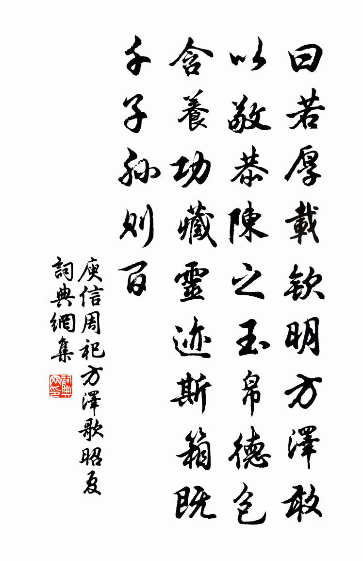 詩詞名句歷史字典書法欣賞書法字典國語詞典說文解字康熙字典古漢語字典標 題 作 者 詩 句 周祀方澤歌 昭夏作者:庾信 朝代:南北朝周祀方澤歌 昭夏原文曰若厚載。欽明方澤。敢以敬恭。陳之玉帛。德包含養。功藏靈跡。斯箱既千。子孫則百。詩詞問答問:周祀方澤歌 昭夏的作者是誰?答:庾信問:周祀方澤歌 昭夏寫於哪個朝代?答:南北朝問:庾信的名句有哪些?答:庾信名句大全庾信周祀方澤歌 昭夏書法欣賞周祀方澤歌 昭夏書法作品詩詞推薦感昔二首劉克莊〔宋代〕先皇立國用文儒,奇士多為禮法拘。澶水歸來邊奏少,熙河捷外戰功無。生前上亦知強至,死後人方誄尹洙。螻蟻同遲賦春晚蘇轍〔宋代〕池塘春旱欲生塵,一雨能令草木新。脾病不嫌櫻筍薄,廩空偏喜麥禾勻。白須照水湖光淨,淥酒留人鳥哢頻。但恐古輓歌孟雲卿〔唐代〕草草閭巷喧,塗車儼成位。冥冥何所須,盡我生人意。北邙路非遠,此別終天地。臨穴頻撫棺,至哀反無淚。爾形頌石頭和尚草庵歌釋印肅〔宋代〕結草為庵莫生退,百鳥銜花也不來。花開還被風吹落,不得春風花不開。浚溝廟蜥蜴鄭獬〔宋代〕不歸大海不藏山,碧瓦朱欄綠樹閒。應待老龍才睡著,便偷雲雨落人間。偶書鄭剛中〔宋代〕冬溫霜氣薄,日暮嵐煙重。蕭然一區宅,半與主人共。門前行跡稀,病足免迎送。觀書忽倦懶,酒力亦微動。寒燈過零壁張氏園三首曾鞏〔宋代〕秫地成來多釀酒,杏林熟後亦留錢。不須置驛迎賓客,直到門前系畫船。寄李惟肖陳襄〔宋代〕峨峨神岳吐靈襟,弱冠飛英翰墨林。楚國未登和氏璧,晉人惟重孔家金。文高千丈雲霞彩,賦敵三都鼓吹音。新地和孫廷平坦嵩山十首漁舟火韓維〔宋代〕拖網潭上歸,孤煙出峰背。稍沒寒霧中,微明秋雨外。起我江湖心,鱸魚方可膾。題梅山雲悅樓胡宏子〔宋代〕世人之所悅,多在紛華間。毛仙得趣處,白雲滿青山。飛樓俯空曠,登眺長怡顏。跡與雲俱高,心與雲俱閒。八極論語絕句一百首張九成〔宋代〕於時舍瑟方鏗爾,豈意吾師亦喟然。此際風流入不識,只應瀟灑得心傳。孝宗明堂前享太廟三首真宗〔宋代〕禮既行矣,樂既成矣。維祖約妣,安且寧矣。皇舉玉趾,佩鏘鳴矣。拜貺總章,於厥明矣。水龍吟(用見山韻餞別)吳文英〔宋代〕夜分溪館漁燈,巷聲乍寂西風定。河橋徑遠,玉簫吹斷,霜絲舞影。薄絮秋雲,澹蛾山色,宦情歸興。怕煙江渡後瀟湘齊己〔唐代〕寒清健碧遠相含,珠媚根源在極南。流古遞今空作島,逗山沖壁自為潭。遷來賈誼愁無限,謫過靈均恨不堪。畢竟黃花王安石〔宋代〕四月揚州芍藥多,先時為別苦風波。還家忽忽驚秋色,獨見黃花出短莎。赴晉康有感曾豐〔宋代〕辟書未上意躊躇,蠻障無望車騎都。允矣曲從人慫惥,往哉聊避鬼揶揄。來鴻告至其欺我,去雁辭行蓋啟予。南驥西叔兄生日魏了翁〔宋代〕花底班行錦樣明,中閒寧少紫青人。更無入誦成都賦,擬抗聲來問大鈞。雪後小酌贈內蘇轍〔宋代〕薄雪為燈止,和風應節來。出遊吾已懶,小酌意難裁。竹徑泥方滑,菁畦凍欲開。細君憐老病,加料作新醅。思母與恭〔宋代〕霜殞蘆花淚濕衣,白頭無復倚柴扉。去年五月黃梅雨,曾典袈裟糴米歸。上海張蘊〔宋代〕夢斷三更鶴,蘆邊系短篷。聽潮看海月,坐石受天風。物至秋而化,年來我亦翁。長歌相勞事,猶喜此樽同。名句推薦今夜不知何處宿,平沙萬里絕人煙。岑參《磧中作》 已忍伶俜十年事,強移棲息一枝安。杜甫《宿府》 風回小院庭蕪綠,柳眼春相續。李煜《虞美人·風回小院庭蕪綠》 綠竹入幽徑,青蘿拂行衣。李白《下終南山過斛斯山人宿置酒》 算陰晴,渾似幾番,渭城故人離會。吳文英《永遇樂·乙巳中秋風雨》 慮澹物自輕,意愜理無違。謝靈運《石壁精舍還湖中作》 童子解吟長恨曲,胡兒能唱琵琶篇。李忱《吊白居易》 青春須早為,豈能長少年。孟郊《勸學》 醉里挑燈看劍,夢回吹角連營。辛棄疾《破陣子·為陳同甫賦壯詞以寄之》 思婦高樓上,當窗應未眠。徐陵《關山月》