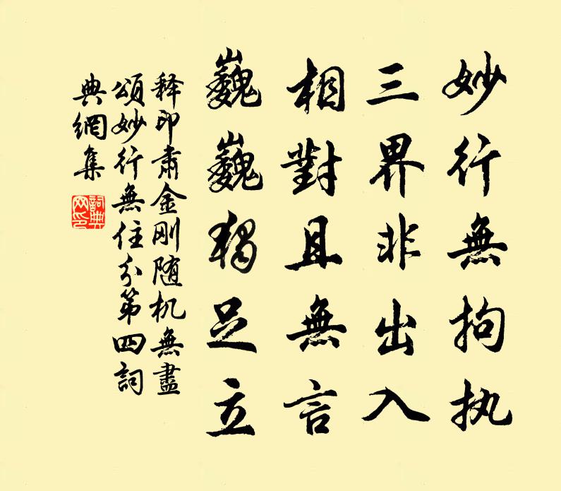 詩詞名句歷史字典書法欣賞書法字典國語詞典說文解字康熙字典古漢語字典標 題 作 者 詩 句 金剛隨機無盡頌妙行無住分第四作者:釋印肅 朝代:宋代原文妙行無拘執,三界非出入。相對且無言,巍巍獨足立。詩詞問答問:《金剛隨機無盡頌妙行無住分第四》的作者是誰?答:釋印肅問:該詩寫於哪個朝代?答:宋代書法欣賞金剛隨機無盡頌妙行無住分第四書法作品詩詞推薦石楠樹權德輿〔唐代〕石楠紅葉透簾春,憶得妝成下錦茵。試折一枝含萬恨,分明說向夢中人。塗山懷古陳陶〔唐代〕落拓書劍晚,清秋鷹正籠。塗山間來上,敬愛如登龍。覽古覺神王,翛然天地空。東南更何有,一醉先王風。惟昔和學士秋懷一十五首李彌遜〔宋代〕飽飯茶甌到手空,緩尋芳事夕陽風。旋移絲竹深藏筍,漫長秋花遠避叢。和子進六言二首范祖禹〔宋代〕蕭散獨游何處,寂寥四顧無人。月露沾衣覺久,水曲吹面宜頻。山茶一樹自冬至清明後著花不已陸游〔宋代〕東園三日兩兼風,桃李飄零掃地空。惟有山茶偏耐久,綠叢又放數枝紅。失調名張耒〔宋代〕手把合歡彩索,殷勤微笑殢檀郎。低低告,不圖系腕,圖系人腸。一剪梅·雨打梨花深閉門唐寅〔明代〕雨打梨花深閉門,孤負青春,虛負青春。賞心樂事共誰論?花下銷魂,月下銷魂。(孤負 一作:忘了;虛負 一讀眉山集次韻雪詩五首王安石〔宋代〕若木昏昏末有鴉,凍雷深閉阿香車。摶雲忽散簁為屑,翦水如分綴作花。擁帚尚憐南北巷,持杯能喜兩三家。戲挼烏戍密印寺范成大〔宋代〕青堆溪上水平堤,絳瓦參差半掩扉。我與聖公俱客寓,人傳帝子尚靈威。勝緣齟齬三重障,志士辛勤十載歸。花木頌古釋道顏〔宋代〕迷悟髑髏前,徒勞更舉鞭。只持雞狗戒,不學祖師禪。甘菊蘇軾〔宋代〕越山春始寒,霜菊晚愈好。朝來出細粟,稍覺芳歲老。孤根蔭長松,獨秀無眾草。晨光雖照耀,秋雨半摧倒。先生范達夫硯鄭剛中〔宋代〕范郎紫玉餘半圭,翻手作雲雨雹隨。龍蛇起陸孔翟飛,雲收雨霽千首詩。和蘇適春雪八首張耒〔宋代〕春城北斗轉招搖,寒御初還陣尚囂。一夜雪聲欺布被,定知貧舍故相撩。憶吾廬李廌〔宋代〕繆挾經世策,蚤衰甘湮淪。吾廬有佳趣,一廛良可親。茂林修竹地,青山白雲人。塵埃付捷徑,風波委要津。吾心憶淵明二首馮時行〔宋代〕五音不害道,其如哇淫何。聊以寫我心,素琴時按摩。澹泊有妙意,豈憂焚天和。賢哉等溟鴻,竟免嬰禍羅。與諸客空腹飲白居易〔唐代〕隔宿書招客,平明飲暖寒。麴神寅日合,酒聖卯時歡。促膝才飛白,酡顏已渥丹。碧籌攢米碗,紅袖拂骰盤。醉後奉和正日臨朝顏師古〔唐代〕七府璿衡始,三元寶曆新。負扆延百辟,垂旒御九賓。肅肅皆鵷鷺,濟濟盛簪紳。天涯致重譯,日域獻奇珍。念奴嬌(初見海棠花)程珌〔宋代〕嫣然一笑,向燭花光下,經年才見。欲語還羞如有恨,方得東君一盼。天意無情,更教微雨,香淚流丹臉。今朝霽客歸二首汪炎昶〔宋代〕繞牆煙樹色籠蔥,燕人鶯過路不通。客子歸來誤驚喜,移家別住綠陰中。治圃雜書二十首方回〔宋代〕汲水洗青石,寘之盛酒樽。身閒宜獨坐,手冷喜時捫。曉露黏花片,春苔蝕浪痕。從吾已安穩,不復動雲根。名句推薦士雖有學,而行為本焉。墨子《墨子·02章 修身》 信者人之乾也,義者行之節也。劉向《列女傳·貞順傳·陳寡孝婦》 春未綠,鬢先絲。人間別久不成悲。姜夔《鷓鴣天·元夕有所夢》 博學之,審問之,慎思之,明辨之,篤行之。子思《中庸·第二十章》 慈母倚門情,遊子行路苦。王冕《墨萱圖·其一》 曲闌深處重相見,勻淚偎人顫。納蘭性德《虞美人·曲闌深處重相見》 留春不住,費盡鶯兒語。王安國《清平樂·春晚》 人孰無親,罪人慎察其宗。來俊臣《羅織經·固榮卷第六》 雁柱十三弦,一一春鶯語。歐陽修《生查子·含羞整翠鬟》 芄蘭之葉,童子佩韘。佚名《芄蘭》