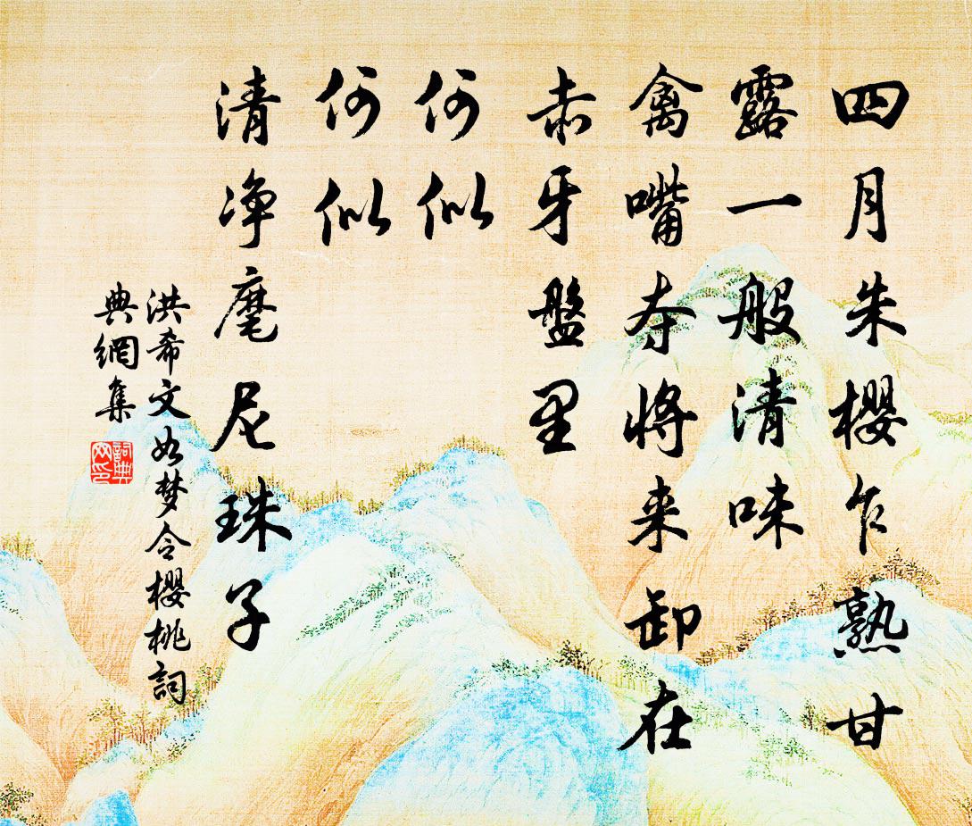 詩詞名句歷史字典書法欣賞書法字典國語詞典說文解字康熙字典古漢語字典標 題 作 者 詩 句 如夢令 櫻桃作者:洪希文 朝代:元代如夢令 櫻桃原文四月朱櫻乍熟,甘露一般清味。禽嘴奪將來,卸在赤牙盤裡。何似。何似。清淨麾尼珠子。詩詞問答問:如夢令 櫻桃的作者是誰?答:洪希文問:如夢令 櫻桃寫於哪個朝代?答:元代問:如夢令 櫻桃是什麼體裁?答:詞洪希文如夢令 櫻桃書法欣賞如夢令 櫻桃書法作品詩詞推薦偈頌一百一十七首釋紹曇〔宋代〕無辨古今眼,有辨古今舌。說得十分真,何如見得徹。見得徹,耿耿心燈奪夜寒。年年宴賞元宵節。寄陳州朱教授三首張耒〔宋代〕春雨江乾不肯晴,大江櫟岸轉雷霆。山頭方丈渾無事,掃地焚香看佛經。和余時中元夕二首王之道〔宋代〕羅綺行歌夜,杯盤坐笑春。舞衫催急管,步障擁佳人。燈火珠星粲,樓台璧月新。傳柑良可樂,黼座玉音親。酒肆行韋應物〔唐代〕豪家沽酒長安陌,一旦起樓高百尺。碧疏玲瓏含春風,銀題彩幟邀上客。回瞻丹鳳闕,直視樂游苑。四方稱賞名已和黃臨海詠雪陳耆卿〔宋代〕剪水紛紛撲面來,須臾灑滿舊瓊台。今年不用箋丹極,聞說金穰百室開。過舊宅二首李世民〔唐代〕新豐花停翠輦,花譙邑駐鳴花笳。園荒一徑斷,苔古半階斜。前池消舊水,昔樹發今花。一朝辭此地,四海遂為家句諶祜〔宋代〕霓裳風秋舞天半,舞到玉花飛石棧。三台四輔繞星垣,只一曲中知後患。風流天子悟轉圜,不見蜀山橫翠面。重陽夜旅懷鄭谷〔唐代〕強插黃花三兩枝,還圖一醉浸愁眉。半床斜月醉醒後,惆悵多於未醉時。答微之韓維〔宋代〕南圃攜樽數,西陂縱棹同。除書褒晚歲,歸馭觴西風。節物蕭條後,交遊寂寞中。何時還一笑,池上舞驚鴻。句陶弼〔宋代〕人說羅池表歲功,深為豐稔淺為凶。思越人張泌〔唐代〕燕雙飛,鶯百轉,越波堤下長橋。斗鈿花筐金匣恰,舞衣羅薄纖腰。東風澹蕩慵無力,黛眉愁聚春碧。滿地落花無次韻呈明侍郎邦衡林光朝〔宋代〕聲教從今已遠覃,翩翩作者問誰堪。石經猶有中郎蔡,金匱曾夸太史談。至竟銀鉤並鐵畫,相傳梅北到天南。諸生不寐方岳〔宋代〕不寐何為者,幽居事更筒。怯風思鶴冷,聞雨為花愁。草合妨游屐,沙崩壓釣舟。春蓑故無恙,欹枕數更籌。出城陸游〔宋代〕翩翻烏帽出林垧,掠面風微酒半醒。戍火難尋玉關夢,衣塵空愧草堂靈。天晴山雪明城郭,水漲江流近驛亭。客鬢浣溪沙 洞庭張孝祥〔宋代〕行盡瀟湘到洞庭。楚天闊處數峰青。旗梢不動晚波平。紅蓼一灣紋纈亂,白魚雙尾玉刀明。夜涼船影浸疏星。喜雨口號九首呈潘侯劉克莊〔宋代〕先做田間三日霖,冰輪出海掃秋陰。人言侯是調元手,慰了農心慰士心。次韻參寥見別秦觀〔宋代〕爐香冉冉紆寒穗,篝火熒熒擢夜芒。預想江天回首處,雪風橫急雁聲長。過招賢渡檔四首楊萬里〔宋代〕一江故作兩江分,立殺呼船隔岸人。柳上青蟲寧許劣,垂絲到地卻回身。送范大著文叔知彭州陳傅良〔宋代〕中書世祿今無幾,唐鑒家聲世不多。安得有人賢若此,忽聞去國意如何。同朝最是頭先白,知己還愁語太苛。盡欲無漏子 秋霽丘處機〔元代〕夕陽紅,秋水澹。雨過碧天如鑒。籬菊綻,塞鴻歸,長郊葉亂飛。上西山,斟北海。酩酊神遊仙界。霜夜冷,月華名句推薦倚高寒、愁生故國,氣吞驕虜。張元乾《賀新郎·寄李伯紀丞相》 人生不可安閒,有恆業,才足收放心王永彬《圍爐夜話·第八三則》 輕衫未攬,猶將淚點偷藏史達祖《夜合花·柳鎖鶯魂》 雲霞出海曙,梅柳渡江春。杜審言《和晉陵陸丞早春遊望》 念歸林葉換,愁坐露華生。張九齡《西江夜行》 龍魚失水難為用,龜玉蒙塵未見珍牟融《春日山亭》 象龍喚不應,竹龍起行雨張孝祥《湖湘以竹車激水粳稻如雲書此能仁院壁》 孝有三:大孝尊親,其次弗辱,其下能養。戴聖《禮記·祭義》 朝見馬嶺黃沙合,夕望龍城陣雲起。盧思道《從軍行》 一聲畫角譙門,豐庭新月黃昏,雪裡山前水濱。白樸《天淨沙·冬》