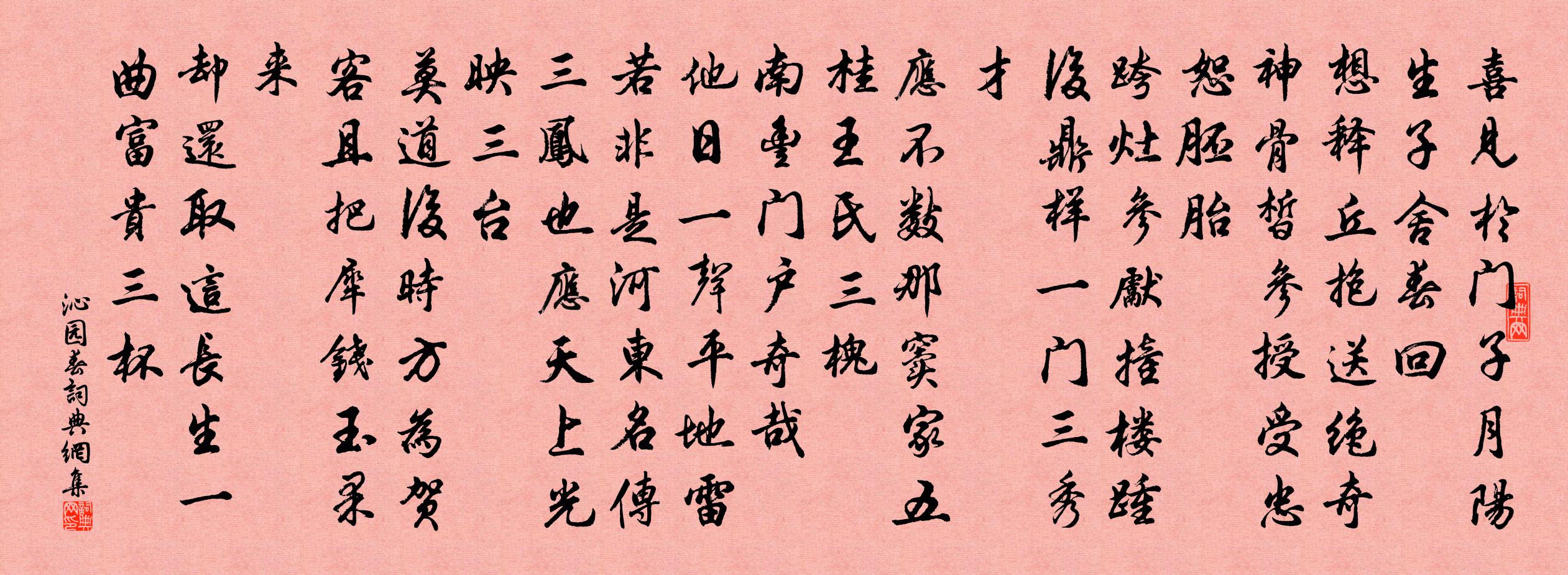 喜見於門,子月陽生,子舍春回。想釋丘抱送,絕奇神骨,皙參授受,忠恕胚胎。