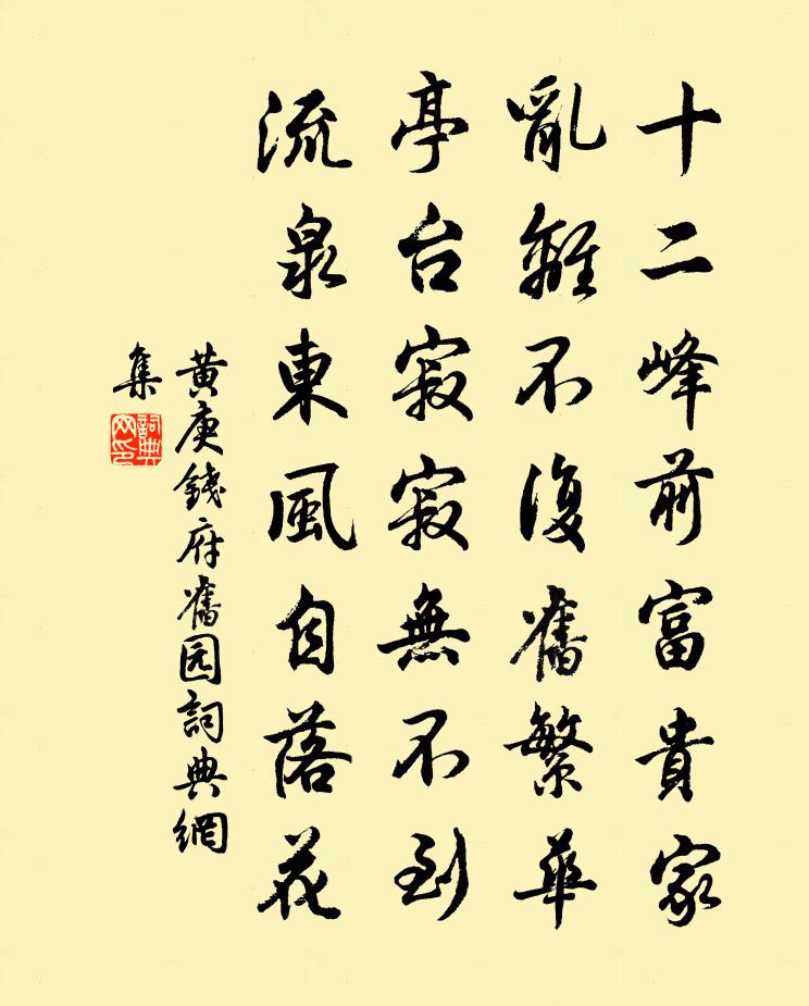詩詞名句歷史字典書法欣賞書法字典國語詞典說文解字康熙字典古漢語字典標 題 作 者 詩 句 錢府舊園作者:黃庚 朝代:宋代錢府舊園原文十二峰前富貴家,亂離不復舊繁華。亭台寂寂無不到,流泉東風自落花。詩詞問答問:錢府舊園的作者是誰?答:黃庚問:錢府舊園寫於哪個朝代?答:宋代黃庚錢府舊園書法欣賞錢府舊園書法作品詩詞推薦聞杜鵑鄭剛中〔宋代〕少年花了杜鵑,花不領杜鵑意。朝將花捲開,暮對春風醉。啼急落花飛,不花書生睡。年來聞杜鵑,萬感集腸胃。敬和崔尚書大明朝堂雨後望終南山見示之作蘇頲〔唐代〕奕奕輕車至,清晨朝未央。未央在霄極,中路視鹹陽。委曲漢京近,周回秦塞長。日華動涇渭,天翠合岐梁。五丈滿江紅(同襄陽帥泛湖)劉過〔宋代〕獵獵風蒲,畫船轉、碧灣沙浦。都不是、蓼汀桃岸,橘洲梅渚。指點山公騎馬地,經是羊祜登山處。悄一如、人在送唐侍御福建省兄李群玉〔唐代〕桂枝攀盡賈家才,霄漢春風棣萼開。世掌綸言傳大筆,官分鴻序壓霜台。閩山翠卉迎飛旆,越水清紋散落梅。到日雜吟 其一王冕〔元代〕前日出東郭,寒凍未解圍。今朝開北牑,青草已滿池。飛飛群鳥歡,老木長嫩枝。馳書報幽人,難得此良時。休負度周卿攜司馬公送蒲中舍詩小程先生謁傅長宮項安世〔宋代〕馬公首丹籍,程子亦其次。大書天九門,凜凜見名字。度君獨何心,葅歜而剝芰。艓子大於匙,可臥不可跋。中有將往終南和子由見寄蘇軾〔宋代〕人生百年寄鬢須,富貴何啻葭中莩。惟將翰墨留染濡,絕勝醉倒蛾眉扶。我今廢學如寒竽,久不吹之澀欲無。歲雲送憑司理之任彭州石介〔宋代〕李白詩中蜀道難,把詩試讀淚澀潤。江形詰曲千迥折,嶺路{左山右齎}贈萬屈盤。登陟去年腰借折,追思今日鼻九日客懷黃庚〔宋代〕烏帽斜欹白髮侵,老來空憶舊登臨。一枝 * 西風淚,數畝蒼苔故國心。梧顫秋聲庭露冷,雁傳寒信塞雲深。不須送元公之鄂渚尋觀主張驂鸞孟浩然〔唐代〕桃花春水漲,之子忽乘流。峴首辭蛟浦,江中問鶴樓。贈君青竹杖,送爾白蘋洲。應是神仙子,相期汗漫遊。句李邴〔宋代〕故斸雲根帶蘚移。句顏蕘〔唐代〕爽籟盡成鳴鳳曲,遊人多是弄珠仙。和王定國二首二晁補之〔宋代〕還朝便與山水疏,只有此月隨吾居。莫論人隔十日面,猶勝犬傳千里書。清虛有物濯煩暑,藤床對月如對雨。賦成次余靜庵晚望欲雪楊公遠〔宋代〕凝眸天欲莫,烏鵲認巢歸。萬竅號風急,千林脫葉稀。雲頑垂地暝,屋冷帶煙霏。默想滕郎意,商量剪水飛。具茨頌黃庭堅〔宋代〕帝省具茨,在國南屏。篤生韓公,補天子聖。文武韓公,其德庭方。靡職不宜,乃宣力四方。四方維則,歸補我袞有感艾性夫〔宋代〕江漢亡維楫,山林困蒺藜。頭顱春雪重,心緒晚雲低。掛樹蛇留蛻,逾坦虎印蹄。遙憐伯勞燕,闢地各東西。口占酬俞端叔牡丹洪咨夔〔宋代〕沉香亭北夢魂賒,驚見祥雲七寶車。窮孟嘗君空好客,病維摩老不禁花。花飛張元乾〔宋代〕雨暗連兵氣,花飛點客愁。寓居皆野寺,相過只扁舟。不作新塘去,還為後泖游。盤飧雖杞菊,得飽勝椎牛。贖雞白居易〔唐代〕清晨臨江望,水禽正喧繁。鳧雁與鷗鷺,游揚戲朝暾。適有鬻雞者,挈之來遠村。飛鳴彼何樂,窘束此何冤。喔喔頌證道歌證道歌釋印肅〔宋代〕依在心,殃在身,汝身非與我同真。臭爛腥臊無用處,識神沈劫墮迷津。名句推薦時雨降矣,而猶浸灌,其於澤也,不亦勞乎!莊子《莊子·內篇·逍遙遊》 綠波春浪滿前陂,極目連雲稏肥。韋莊《稻田》 悲商叩林,白雲依山。陶淵明《閒情賦》 今夕復何夕,共此燈燭光。杜甫《贈衛八處士》 敗垣芳草,空廊落葉,深砌蒼苔。徐再思《人月圓·甘露懷古》 痴兒不知父子禮,叫怒索飯啼門東。杜甫《百憂集行》 柳外輕雷池上雨,雨聲滴碎荷聲。歐陽修《臨江仙·柳外輕雷池上雨》 剪不斷,理還亂,是離愁。別是一般滋味在心頭。李煜《相見歡·無言獨上西樓》 柳柔搖不定,草短綠應難。張惠言《風流子·出關見桃花》 卻恨悲風時起,冉冉雲間新雁,邊馬怨胡笳。葉夢得《水調歌頭·秋色漸將晚》