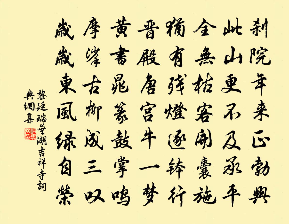 詩詞名句歷史字典書法欣賞書法字典國語詞典說文解字康熙字典古漢語字典標 題 作 者 詩 句 蕪湖吉祥寺作者:黎廷瑞 朝代:宋代蕪湖吉祥寺原文剎院年來正勃興,此山更不及承平。全無枯客開囊施,猶有殘燈逐缽行。晉殿唐宮牛一夢,黃書晁篆鼓掌鳴。摩挲古柳成三嘆,歲歲東風綠自榮。詩詞問答問:蕪湖吉祥寺的作者是誰?答:黎廷瑞問:蕪湖吉祥寺寫於哪個朝代?答:宋代黎廷瑞蕪湖吉祥寺書法欣賞蕪湖吉祥寺書法作品詩詞推薦北望陸游〔宋代〕北望中原淚滿巾,黃旗空想渡河津。丈夫窮死由來事,要是江南有此人!題韓運鹽竹隱堂絕句三首陸游〔宋代〕靜處知君解策勛,爐香裊裊起微雲。岸巾不往尋青士,欹枕還應對墨君。山居詩釋延壽〔宋代〕幽棲帶郭半山峰,密意虛懷莫可同。事到定中訊息靜,景於吟處煉磨代。玲瓏色淡松根月,敲磕聲清竹罅風。獨坐妾換馬盧殷〔唐代〕伴鳳樓中妾,如龍櫪上宛。同年辭舊寵,異地受新恩。香閣更衣處,塵蒙噴草痕。連嘶將忍淚,俱戀主人門。早春郭知運〔宋代〕年來飄泊任西東,解組論文意自雄。臘盡竺溪漁唱晚,杏花溪上又春風。與薛昭合婚詩張雲容〔唐代〕臉花不綻幾含幽,今夕陽春獨換秋。我守孤燈無白日,寒雲隴上更添愁。幽谷啼鶯整羽翰,犀沈玉冷自長嘆。月華行在端午陳宓〔宋代〕百萬人家夜雨鳴,市聲喚出曉來晴。誰知天與吾皇意,要不妨農不害民。郊居言志韋應物〔唐代〕負暄衡門下,望雲歸遠山。但要尊中物,餘事豈相關。交無是非責,且得任疏頑。日夕臨清澗,逍遙思慮閒。出去送滕邁郎中赴睦州趙嘏〔唐代〕郡齋秋盡一江橫,頻命郎官地更清。星月去隨新詔動,旌旗遙映故山明。詩尋片石依依晚,帆掛孤雲杳杳輕。想到雜書五首方回〔宋代〕一毫不敢昧蒼天,生世明年七十年。自恨肉身無報答,日常飽飯夜安眠。鮑待用輓詞四首林亦之〔宋代〕讀書東床一卷書,不妨蹤跡向來疎。劍津紅帳為門戶,想得多多送葬車。次韻蘇主管青溪十絕句項安世〔宋代〕與君相別若耶溪,十載湘航與蜀梯。恰到六朝行樂處,台城東畔冶亭西。瑩老自浙歸住東廣光孝移住南華五首曾豐〔宋代〕制止寺中房相硯,曹溪堂上祖師衣。舊家公案新拈起,兩樣機關一指歸。暮春偶成四首廖行之〔宋代〕小雨纖纖潤,輕雲淡淡陰。溪光清絕處,山影悴微深。蠶市朝何寂,牛歌晚不瘖。高吟憐節物,合把酒尊斟。右軍留女帖贊岳珂〔宋代〕或真或摹,斯焉取諸,是出於偃月儲。垂胄同仇,於門之魚,予將比乎邾。禪人發心乾鍾乞頌釋正覺〔宋代〕木落空山霜,夜樓時一撞。隨風度林嶺,喚月到蘿窗。回響虛傳谷,聲飛不礙江。夢回天意曉,蝴蝶失雙雙。寄令狐侍郎韋應物〔唐代〕三山有瓊樹,霜雪色逾新。始自風塵交,中結綢繆姻。西掖方掌誥,南宮復司春。夕燕華池月,朝奉玉階塵。眾寶遊子賈島〔唐代〕遊子喜鄉遠,非吾憶歸廬。誰知奔他山,自欲早旋車。朝賞暮已足,圖歸願無餘。當期附鵬翼,未偶方躊躇。南歌子(八月十八日觀湖潮)蘇軾〔宋代〕海上乘槎侶,仙人萼綠華。飛升元不用丹砂。住在潮頭來處、渺天涯。雷輥夫差國,雲翻海若家。坐中安得弄琴牙閒十詠仇遠〔宋代〕風挾濃雲起炮車,捎窗雨腳亂如麻。山中茆屋應安穩,不向溪聲送落花。名句推薦身多疾病思田裡,邑有流亡愧俸錢。韋應物《寄李儋元錫》 臣無隱忠,君無蔽言,國之祿也。劉向《戰國策·趙二·武靈王平晝閒居》 畫圖省識春風面,環珮空歸夜月魂。杜甫《詠懷古蹟五首·其三》 不責人小過,不發人陰私,不念人舊惡洪應明《菜根譚·概論》 荷花開後西湖好,載酒來時。歐陽修《採桑子·荷花開後西湖好》 桃李風前多嫵媚,楊柳更溫柔。辛棄疾《武陵春·桃李風前多嫵媚》 孰知不向邊庭苦,縱死猶聞俠骨香。王維《少年行四首》 風也蕭蕭,雨也蕭蕭,瘦盡燈花又一宵。納蘭性德《採桑子·誰翻樂府淒涼曲》 生事且瀰漫,願為持竿叟。綦毋潛《春泛若耶溪》 野曠天低樹,江清月近人。孟浩然《宿建德江》