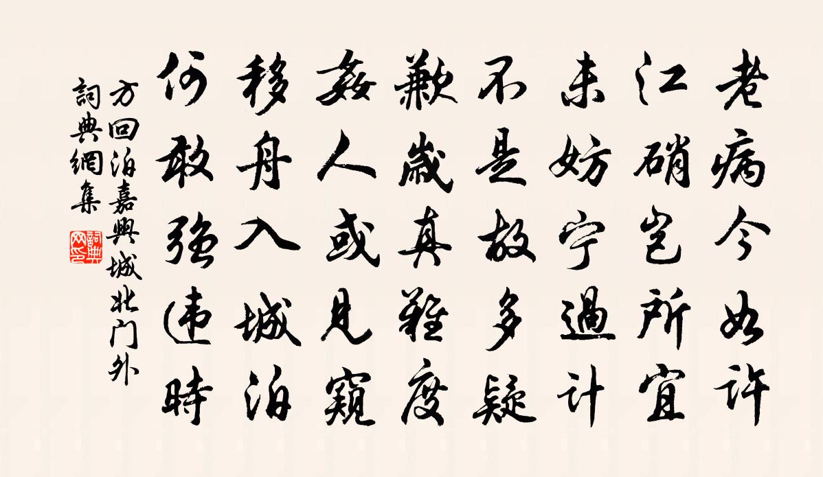 詩詞名句歷史字典書法欣賞書法字典國語詞典說文解字康熙字典古漢語字典標 題 作 者 詩 句 泊嘉興城北門外作者:方回 朝代:宋代泊嘉興城北門外原文老病今如許,江硝豈所宜。未妨寧過計,不是故多疑。歉歲真難度,奸人或見窺。移舟入城泊,何敢強違時。詩詞問答問:泊嘉興城北門外的作者是誰?答:方回問:泊嘉興城北門外寫於哪個朝代?答:宋代方回泊嘉興城北門外書法欣賞泊嘉興城北門外書法作品詩詞推薦宿葉陂用前韻董穎〔宋代〕別業松間 * 椽,何宜清夜對床眠。飛流濺沫知何處,環佩余青到枕前。釣翁(一作鄭谷詩)羅鄴〔唐代〕來往煙波非定居,生涯蓑褐外無餘。閒垂兩鬢任如鶴,只系一竿時得魚。月浦扣船歌皎潔,雨蓬隈岸臥蕭疏。行人亭西牆下伊渠水中置石激流潺湲成韻頗有幽趣以詩記之白居易〔唐代〕嵌巉嵩石峭,皎潔伊流清。立為遠峰勢,激作寒玉聲。夾岸羅密樹,面灘開小亭。忽疑嚴子瀨,流入洛陽城。是時答寄堯夫先生韓絳〔宋代〕君子志於道,出處非一端。伊尹負鼎俎,顏淵東瓢簞。斯自理適當,匪緣情所安。超然達者致,邈矣誰可攀。嗟嗟擬古閨怨三首王炎〔宋代〕良人久在外,想像裁香羅。放下金粟尺,無言顰翠蛾。送陳慶伯三乎趙蕃〔宋代〕衢信相望百裡間,從來疏闊若為顏。與君既親亦有故,他日當期數往還。又五言一首劉克莊〔宋代〕累疏皆中寢,孤忠奈眾咻。人方袖瓦送,君獨舉幡留。不記邯鄲夢,猶貪洛社游。而今都已矣,慟哭過西州。次韻趙季茂寄詩岳珂〔宋代〕蒹葭道阻長,人在水中央。鴻筆寫秋思,驪珠比夜光。律嚴詩格壯,鈐度置郵忙。鉅軸注銀水,欲題無漢陽。元忠學士八兄耒離京師遠蒙追送許惠服丹法托張耒〔宋代〕衰柳苦催空壁月,悲蟲真吊短檠光。無情少壯拋人去,只有窮愁氣味長。蘇幕遮 自害風馬鈺〔元代〕遇王風,風傳我。風發**,風害家緣破。拈弄風飈風險團水火。風子**,風韻閒吟和。順風行,迎風坐。飲罷送萬諤昌秀才梅堯臣〔宋代〕志士不戀家,安能坐{左口右父}咀。儒冠難徒行,馬骨瘦可數。後仆隔山陂,前林遇風雨。寒村夜宿時,寂默誰寄題江外草堂(梓州作,寄成都故居)杜甫〔唐代〕我生性放誕,雅欲逃自然。嗜酒愛風竹,卜居必林泉。遭亂到蜀江,臥疴遣所便。誅茅初一畝,廣地方連延。經營廣愛寺歐陽修〔宋代〕都人布金地,紺宇巋然存。山氣蒸經閣,鍾聲山國門。老杉春自綠,古壁雨先昏。應有幽人屐,來留石蘚痕。送遜監淮西酒並示諸任二首蘇轍〔宋代〕淮西留滯昔經年,唯有諸任時往還。炊黍留賓不嫌陋,借書度日免長閒。歸來潩水無水問,夢繞伊家古檜間。二老閏九十四程珌〔宋代〕午夜青衣海上還,八年兩度雪封山。如今一水平如鏡,好釣桐江五百灘。三月二日被命祈晴上天竺舟中得六絕句劉克莊〔宋代〕手寫八詩寄,耳聾三日驚。何須論句法,年自讓吾兄。滿堂春楊巽齋〔宋代〕花發圍眸晝錦如,列仙行綴在蓬壺。千金須拚豪冢賞,一笑春風無向隅。杭都旅舍臘日感事孫應時〔宋代〕三年臘日常為客,愁絕梅花獨自看。萬里塵沙走西蜀,九衢風雪臥長安。生來可是儒冠誤,老去偏知世路難。安得夏日過莊嚴寺寺僧索詩為留三絕拉舍弟同賦晃公休〔宋代〕病起支離倚瘦筇,幅巾芒屩竹陰中。聞蟬未有驚人句,且就禪床一榻風。寄向伯休且約他日道為薌林之游二首趙蕃〔宋代〕平生薌林五十詠,何意扁舟其下過。王郎逸興非余有,不問主人防怒訶。名句推薦汗血每隨邊地苦,蹄傷不憚隴陰寒。萬楚《驄馬》 寂寞離亭掩,江山此夜寒。王勃《江亭夜月送別二首》 洞庭春溜滿,平湖錦帆張。陰鏗《渡青草湖》 惜恐鏡中春。不如花草新。張先《菩薩蠻·憶郎還上層樓曲》 夫妻者,非有骨肉之恩也。愛則親,不愛則疏。韓非及後人《韓非子·備內》 愚而好自用,賤而好自專。子思《中庸·第二十八章》 堂上遠於百里,堂下遠於千里,門庭遠於萬里。管仲《管子·法法》 玉樹猶難伸,壓倒千竿竹。環山樵《薛寶釵·雪竹》 雲無心以出岫,鳥倦飛而知還。陶淵明《歸去來兮辭·並序》 天清一雁遠,海闊孤帆遲。李白《送張舍人之江東》