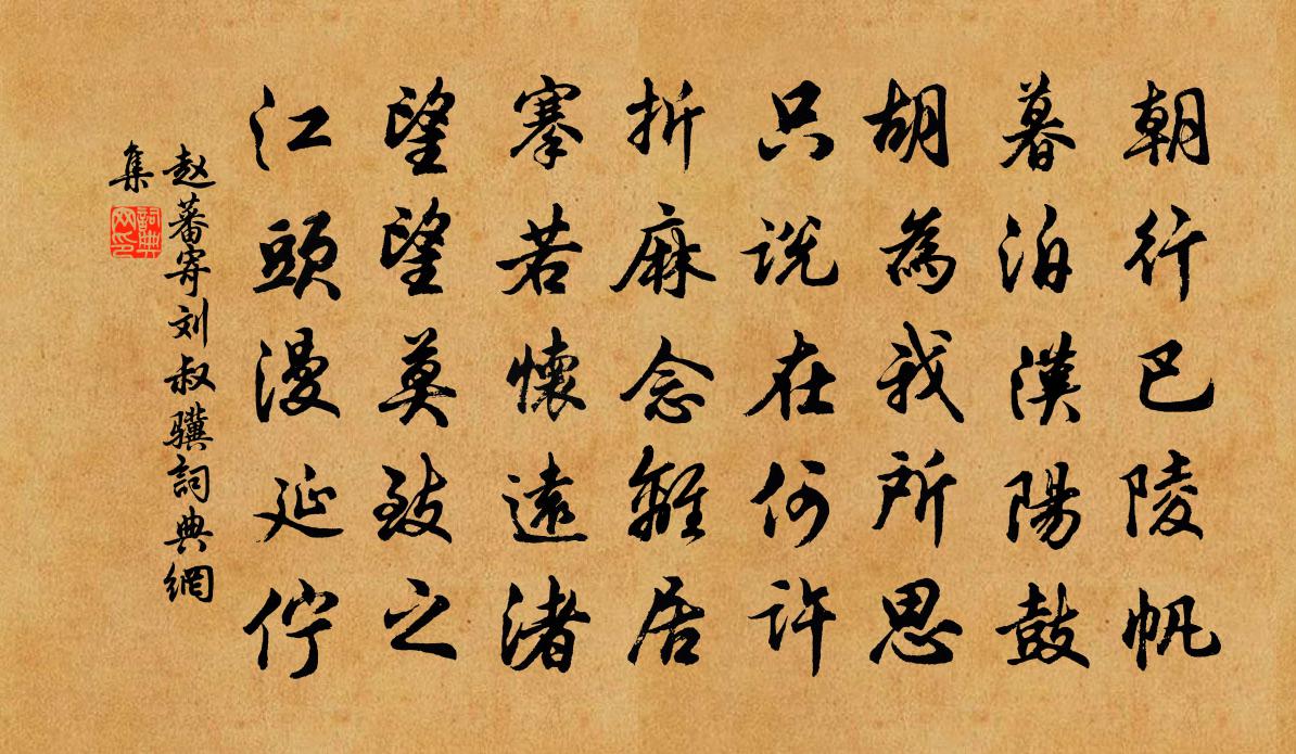 詩詞名句歷史字典書法欣賞書法字典國語詞典說文解字康熙字典古漢語字典標 題 作 者 詩 句 寄劉叔驥作者:趙蕃 朝代:宋代寄劉叔驥原文朝行巴陵帆,暮泊漢陽鼓。胡為我所思,只說在何許。折麻念離居,搴若懷遠渚。望望莫致之,江頭漫延佇。詩詞問答問:寄劉叔驥的作者是誰?答:趙蕃問:寄劉叔驥寫於哪個朝代?答:宋代趙蕃寄劉叔驥書法欣賞寄劉叔驥書法作品詩詞推薦逮子赴湖南漕司舉寄之曾幾〔宋代〕舉子忙如此,槐花細細開。吾兒承詔去,有客附書來。鶴髮風前帽,雞頭月下杯。衰年餘幾許,勝日不同陪。殘春三絕張耒〔宋代〕低檐送雨晚霏微,濕透梅房白漸肥。半卷畫簾屏扇掩,朦朧春睡擁春衣。竹奴曾幾〔宋代〕霧帳桃笙晝寢餘,此君那可一朝無。秋來冷落同班扇,歲晚溫柔是錫奴。白櫻桃於鄴〔唐代〕王母階前種幾株,水晶簾內看如無。只應漢武金盤上,瀉得珊珊白露珠。邑令招講上元故事與簿尉同賦二首程公許〔宋代〕人情悅豫樂音諧和,新覺華譙氣象佳。璧月輝輝三夕永,榆星曆歷九霄排。笙歌圍坐花如海,餚核堆山酒若淮。富至啟至數日前久疏投刺略遂登門方媿非才過叨李至〔宋代〕相留不稱主人心,多病虛勞酒滿斟。廳事便臨芳草逕,庖廚只就綠槐陰。玫瑰出檻參差拆,薜荔依牆積漸深。卻恨張舊蚊幬元稹〔唐代〕逾年間生死,千里曠南北。家居無見期,況乃異鄉國。破盡裁縫衣,忘收遺翰墨。獨有纈紗幬,憑人遠攜得。施張次韻大人書懷李流謙〔宋代〕何如莫莫與休休,分付煙波一釣裘。心向青山貪未了,夢隨白鳥去無由。閒雲猶閣為霖潤,野水空橫濟物舟。安得次韻王少府送焦坑茶周必大〔宋代〕昏然午枕困漳濱,醒以清風賴子真。初似參禪逢硬語,久如味諫得端人。王程不趁清明宴,野老先分浩蕩春。敢向送僧游縉雲朱慶餘〔唐代〕但望青山去,何山不是緣。寺幽堪講律,月冷稱當禪。水落無風夜,猿吟欲雨天。尋師若有路,終作緩歸年。句張俞〔宋代〕高光如有嗣,吳魏豈勝誅。浣溪沙 瓜陂鋪題壁佚名〔宋代〕碎剪香羅浥淚痕。鷓鴣聲斷不堪聞。馬嘶人去近黃昏。整整斜斜揚柳陌,疏疏密密杏花村。一番風月更銷魂。廣文出新意得梅之全花實根葉譜入秀句輒效反鄭清之〔宋代〕東風不借半分力,老樹絲窠罥寒織。虛枝生白獨也正,夜氣歸根吹以息。箇中灑灑無一塵,無眼界至無意識。居然心上人乞食求頌釋正覺〔宋代〕去去之人乞食心,春風浩蕩洗叢林。松蹊香膩糝黃粉,竹塢清癯包玉簪。炊甑分珠齋缽滿,淨瓶汲月夜塘深。歸來送沈康知常州王安石〔宋代〕作客蘭陵跡已陳,為傳謠俗記州民。溝塍半廢田疇薄,廚傳相仍市井貧。常恐勞人輕白屋,忽逢佳士得朱輪。殷懃耕圖二十一首淤蔭樓璹〔宋代〕殺草聞吳兒,灑灰傳自祖。田田皆沃壤,泫泫流膏乳。塍頭烏啄泥,谷口鳩喚雨。敢望稼如雲,工夫蓋如許。從臨海王上荊初發新渚詩鮑照〔南北朝〕客行有苦樂。但問客何行。扳龍不待翼。附驥絕塵冥。梁珪分楚牧。羽鷁指全荊。雲艫掩江汜。千里被連旌。戾戾王殿丞赴莫州日就余求釣竿數莖以往今因其使梅堯臣〔宋代〕去日覓釣竿,定能垂釣否。若不暇釣魚,釣竿當去取。洪州逢熊孺登白居易〔唐代〕靖安院裡辛夷下,醉笑狂吟氣最粗。莫問別來多少苦,低頭看取白髭鬚。書壁張耒〔宋代〕後院人稀到,荒池半是苔。好花隨地有,幽鳥自山來。靡靡香草合,陰陰夏木催。昭亭有佳色,每至不容回。名句推薦量大禍不在,機深禍亦深。佚名《增廣賢文·下集》 官無常貴而民無終賤。有能則舉之,無能則下之。墨子《墨子·08章 尚賢(上)》 為奏薰琴唱,仍題寶劍名。張九齡《奉和聖制送尚書燕國公赴朔方》 平生多感激,忠義非外獎。李白《酬裴侍御對雨感時見贈》 幅巾藜杖北城頭,捲地西風滿眼愁。陸游《秋晚登城北樓》 壚邊人似月,皓腕凝霜雪。韋莊《菩薩蠻·人人盡說江南好》 金鞍玉勒尋芳客,未信我廬別有春。于謙《觀書》 池花春映日,窗竹夜鳴秋。李白《謝公亭·蓋謝朓范雲之所游》 日月忽其不淹兮,春與秋其代序。屈原《離騷》 佇久河橋欲去,斜陽淚滿。吳文英《三姝媚·過都城舊居有感》