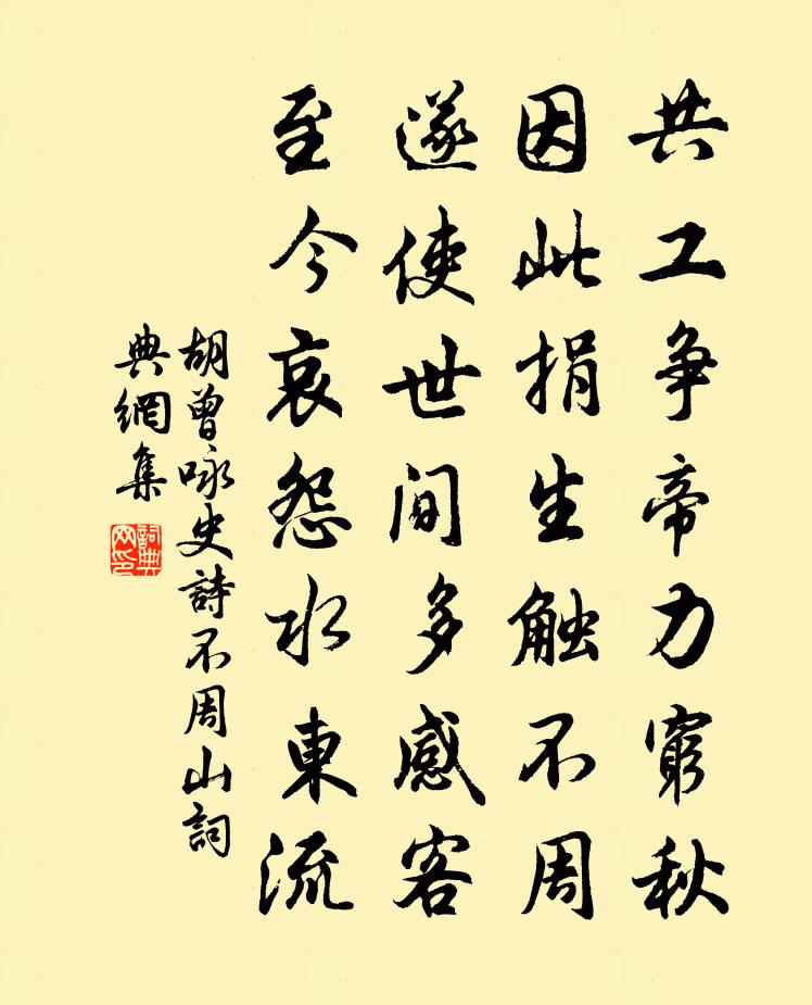 詩詞名句歷史字典書法欣賞書法字典國語詞典說文解字康熙字典古漢語字典標 題 作 者 詩 句 詠史詩不周山作者:胡曾 朝代:唐代詠史詩不周山原文共工爭帝力窮秋,因此捐生觸不周。遂使世間多感客,至今哀怨水東流。詩詞問答問:詠史詩不周山的作者是誰?答:胡曾問:詠史詩不周山寫於哪個朝代?答:唐代問:詠史詩不周山是什麼體裁?答:七絕胡曾詠史詩不周山書法欣賞詠史詩不周山書法作品注釋全唐詩:卷647-71詩詞推薦新居成呈劉君玉殿院邵雍〔宋代〕履道坊南竹徑脩,綠楊陰里水分流。眾賢買得澄心景,獨我居為養志秋。若比陳門成已僣,苟陪顏巷亦堪憂。無端頌古四首釋休〔宋代〕恰如劊子氣雄豪,便向咽喉下一刀。五臟肝心皆砉出,方知王法不相饒。送鄉人余文明勸之以歸楊萬里〔宋代〕一別高人又十年,霜筋雪骨健依然。席門未害車多轍,斗酒尚能詩百篇。蒼狗白衣俱昨夢,長庚孤月自青天。故山題俞?畫八景曹勛〔宋代〕清湘列岫擁煙霏,不見靈均吊楚妃。一帶僧園入修綠,待看嶽麓雨晴時。過魏文貞公宅(一作題魏文貞)杜牧〔唐代〕蟪蛄寧與雪霜期,賢哲難教俗士知。可憐貞觀太平後,天且不留封德彝。將東歸留別楊宗禮十韻宋祁〔宋代〕清白舊家聲,論交得寧馨。摛華吐鳳賦,聞禮墮鱣庭。潘夏叨連璧,荀陳更聚星。膠投思固漆,渭濁許過涇。合坐雜曲歌辭。昔昔鹽。關山別盪子趙嘏〔唐代〕那堪聞盪子,迢遞涉關山。腸為馬嘶斷,衣從淚滴斑。愁看塞上路,詎惜鏡中顏。儻見征西雁,應傳一字還。惜分飛趙子發〔宋代〕數點雨聲驚殘暑。簾外秋光容與。重換熏爐炷。漸低羅幕香成霧。今夜夜涼情幾許。莫向屏山取取。卻笑陽台女。偈傾一百六十九首釋智朋〔宋代〕木骨金妝,似則也似。瞬目揚眉,西天此土。近陋室以斗升釀家婦謂予未飲不以見告昨夜偷王洋〔宋代〕斗米蒸炊入小罌,未應訊息到比鄰。靜思懷璧真成罪,恐是糟床夜滴聲。和汴州令狐相公白菊楊巨源〔唐代〕兔園春欲盡,別有一叢芳。直似窮陰雪,全輕向曉霜。凝暉侵桂魄,晶彩奪螢光。素萼迎風舞,銀房泫露香。水晶次韻芮國器正字館中木樨三首周必大〔宋代〕曉翻汗簡因遮眼,午對枯枰輒爛柯。天遣幽香一喚起,醒然屯作出瓶鵝。緣識宋太宗〔宋代〕大道何異,俗情如花。生前境趣,車碾黃砂。無垢住相,勿用稱夸。非親我親,六合為家。碧湘門陶弼〔宋代〕城中煙樹綠波漫,幾萬樓台樹影間。天闊鳥行疑沒草,地卑江勢欲沉山。人過鹿死尋僧去,船自新康載酒還。聞說淳化鄉飲酒三十三章佚名〔宋代〕崇丘峨峨,動植斯屢。高既自遂,大亦自足。和風斯扇,膏雨斯沐。我仁如天,以亭以育。淨因院建炎兵火獨存紀事聞人偲〔宋代〕湖海浮學二十年,重來春色尚依然。杏花籬落噴紅霧,楊柳林塘護綠煙。草暖村人出遊地,鳩鳴刺史勸農天。覺場挽吏部劉謙山何夢桂〔宋代〕猶記青原白鷺盟,轉頭宿草上新塋。屋樑月落丹心在,海水天寒白髮生。樽酒十年兒女淚,篇詩兩地弟兄情。蓋棺雲岩曉陳造〔宋代〕深堂清話紅燈續,不減前人參白足。譚禪論詩仆為僵,更啖芋魁分茗粥。賦租正爾憂闕供,安得繼日笑語同。他年自江州司馬授忠州刺史仰荷聖澤聊書鄙誠白居易〔唐代〕炎瘴拋身遠,泥塗索腳難。網初鱗撥剌,籠久翅摧殘。雷電頒時令,陽和變歲寒。遺簪承舊念,剖竹授新官。鄉覺沁園春(甲辰餞尤木石赴九江帥)李曾伯〔宋代〕大江之西,康廬之陰,壯哉此州。有舳櫓千里,旌旗百萬,襟喉上國,屏翰中流。彈壓鯨波,指麾虎渡,著此商川名句推薦人而無儀,不死何為?佚名《相鼠》 故園腸斷處,日夜柳條新。宋之問《途中寒食題黃梅臨江驛寄崔融》 防民之口,甚於防川。左丘明《國語·周語·邵公諫厲王弭謗》 願為西南風,長逝入君懷。曹植《七哀詩》 天地之性,人為貴。 人之行,莫大於孝。孔子及其弟子《孝經·聖治》 石門流水遍桃花,我亦曾到秦人家。李白《下途歸石門舊居》 故人相望若為情。別愁深夜雨,孤影小窗燈。陳克《臨江仙·四海十年兵不解》 思歸若汾水,無日不悠悠。李白《太原早秋》 應是天仙狂醉,亂把白雲揉碎。李白《清平樂·畫堂晨起》 風驅急雨灑高城,雲壓輕雷殷地聲。劉基《五月十九日大雨》