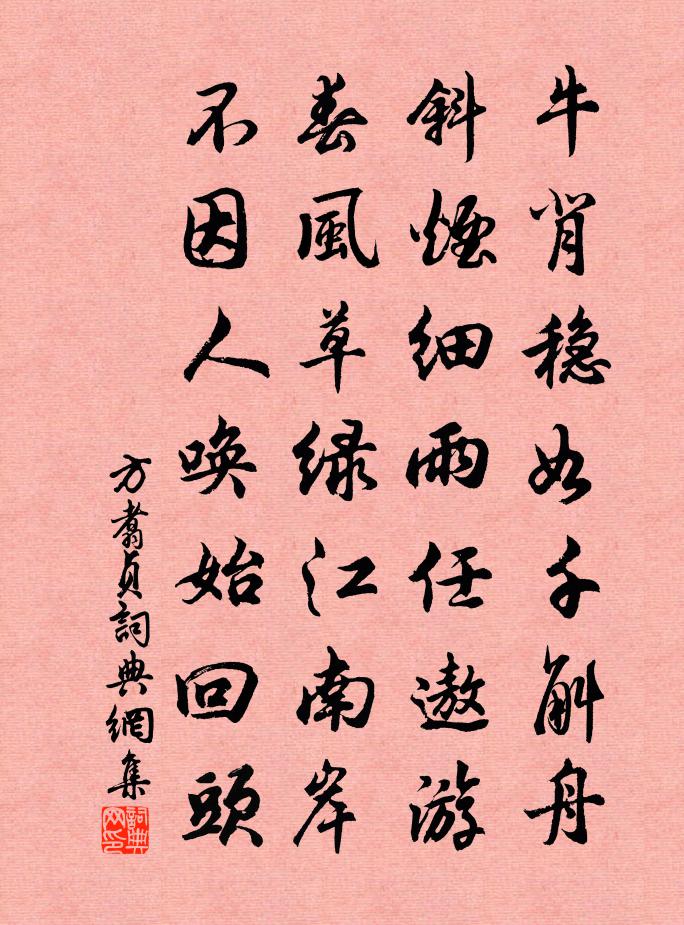 詩詞名句歷史字典書法欣賞書法字典國語詞典說文解字康熙字典古漢語字典標 題 作 者 詩 句 貞作者:方翥 朝代:宋代貞原文牛背穩如千斛舟,斜煙細雨任遨遊。春風草綠江南岸,不因人喚始回頭。詩詞問答問:貞的作者是誰?答:方翥問:貞寫於哪個朝代?答:宋代方翥貞書法欣賞貞書法作品詩詞推薦次韻傳道自適兼呈都司芸叟學士秦觀〔宋代〕楚國陳夫子,周南頗滯留。弊袍披槁葉,瘦馬兀扁舟。藥餌過三伏,文書散百憂。何人共禪悅,居士有浮休。高頭市陳造〔宋代〕陂行欲盡山崛起,十數人家住山觜。行人不炊市無米,買餅充腸聽頤旨。日未薄山收市里,閉戶人家呼不起。今春游雲門山寺李新〔宋代〕宰官得度卻無能,直斷曹溪一點燈。脫體化為牛馬走,隻身歸是水雲僧。晚煙破灶迷村落,桴鼓嘩空走稻塍。弄水上元竹枝歌和曾大卿冉居常〔宋代〕青春惱人思跰躚,女郎市酒趣數錢。不道翁家久留客,紅襠幔結賽鞦韆。學簫學鼓少年群,準擬春來奉使君。自向感懷陳杰〔宋代〕一箭乾風射眼酸,幾棱遠碧壓眉攢。芙蓉開徹徐娘老,楊柳疏來范叔寒。何處素商調綠綺,誰家翠袖倚琅玕。無情寒食直歸遇雨韓愈〔唐代〕寒食時看度,春遊事已違。風光連日直,陰雨半朝歸。不見紅球上,那論彩索飛。惟將新賜火,向曙著朝衣。同徐處士秋懷少室舊居(一作秋日同朱慶餘懷少室舊隱)周賀〔唐代〕曾居少室黃河畔,秋夢長懸未得回。扶病半年離水石,思歸一夜隔風雷。荒齋幾遇僧眠後,晚菊頻經鹿踏來。燈下送李錄事兄歸襄鄧劉長卿〔唐代〕十年多難與君同,幾處移家逐轉蓬。白首相逢征戰後,青春已過亂離中。行人杳杳看西月,歸馬蕭蕭向北風。漢水和任師見寄之韻辛棄疾〔宋代〕老來功業已蹉跎,買得生涯復不多。十頃芰荷三徑菊,醉鄉容我住無何。春夜釋斯植〔宋代〕玉樓台畔柳生煙,況是春風杜宇天。一片月光涼似水,半扶花影上鞦韆。好事近劉過〔宋代〕誰斫碧琅軒,影撼半庭風月。尚有歲寒心在,留得數莖華發。龍孫戲弄碧波濤,隨手清風發。滾到浪花深處,起一晚歸書室呈群倚司馬光〔宋代〕簿領日沈迷,事役等胥靡。得歸無所為,未免閱書史。一種勞精神,胸中異憂喜。人生無苦樂,適意即為美。乃知相和歌辭。江南曲劉昚虛〔唐代〕美人何蕩漾,湖上風月長。玉手欲有贈,裴回雙鳴璫。歌聲隨淥水,怨色起朝陽。日暮還家望,雲波橫洞房。綠野亭鄭伯玉〔宋代〕吾愛高秋亭上望,水風涼澹愜幽情,山形左右互拱揖,海氣旦暮多險情。西疇農歌罷亞熟,北埭漁唱滄浪清。人生送葉士龍歸竹林精舍劉克莊〔宋代〕侍講開甥館,三間不至奢。少曾居北面,老只住東家。野筍庖尤美,深衣袞未華。何時尋舊路,去謁玉川茶。無客陸游〔宋代〕今日了無客,翛然麈柄閒。硯涵鴝鵒眼,香斮鷓鴣斑。木落風初勁,雲低雨尚慳。西湖未暇到,臥看曲屏山。大觀聞喜宴六首佚名〔宋代〕多士濟濟,於彼西雍。欽肅威德,亦有斯容。函然來思,自西自東。天畏爾祿,惟王其崇。傷春陳著〔宋代〕杜鵑非是翠芳殘,底事年年叫出山。紙帳竹床清到底,不堪聲入夢魂閒。寄杜子二首杜牧〔唐代〕不識長楊事北胡,且教紅袖醉來扶。狂風烈焰雖千尺,豁得平生俊氣無?武牢關吏應相笑,個裡年年往復來。若問賦永叔家白兔韓維〔宋代〕天公團白雪,戲作毛物形。太陰來照之,精魄孕厥靈。走弄朝日光,赩然丹兩睛}。不知質毛異,乃下游林坰。一名句推薦垂死病中驚坐起,暗風吹雨入寒窗元稹《聞樂天授江州司馬》 吃著碗裡看著鍋里曹雪芹《紅樓夢·第十六回》 酒未開樽句未裁,尋春問臘到蓬萊。曹雪芹《訪妙玉乞紅梅》 鞠躬盡瘁,死而後已。諸葛亮《後出師表》 昔嘆當年無李牧,今知江左有夷吾陳亮《送文子轉漕江東二首》 百結愁腸郁不開,此生惆悵異鄉來。秋瑾《九日感賦》 迢遞嵩高下,歸來且閉關。王維《歸嵩山作》 蓬門未識綺羅香,擬托良媒益自傷。秦韜玉《貧女》 何日平胡虜,良人罷遠征。李白《子夜吳歌·秋歌》 秋草獨尋人去後,寒林空見日斜時。劉長卿《長沙過賈誼宅》