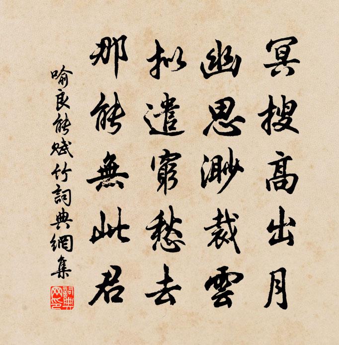 詩詞名句歷史字典書法欣賞書法字典國語詞典說文解字康熙字典古漢語字典標 題 作 者 詩 句 賦竹作者:喻良能 朝代:宋代賦竹原文冥搜高出月,幽思渺裁雲。擬遣窮愁去,那能無此君。詩詞問答問:賦竹的作者是誰?答:喻良能問:賦竹寫於哪個朝代?答:宋代喻良能賦竹書法欣賞賦竹書法作品詩詞推薦題淵明像方回〔宋代〕慧遠無此冠,修靜無此巾。此巾要亦有,無此灑酒人。西林院陸游〔宋代〕一邦盡對江邊像,試比西林總不如。群玉蕭森開士宅,五雲飛動相君書。磴危漸覺山爭出,屐響方驚閣半虛。安得吳黃金車孫元晏〔唐代〕分擘山河即漸開,許昌基業已傾頹。黃金車與斑斕耳,早個須知入讖來。渡江雲 揭浩齊送春吳澄〔元代〕名園花正好,嬌紅白,百態竟春妝。笑痕添酒暈,豐臉凝脂,誰與試*霜。詩朋酒伴,趁此日、流轉風光。盡夜恨歡遲王哲〔元代〕名*排三本姓王。字知明子號重陽。似菊花如要清香。吐緩緩,等濃霜。學易年高便道裝。遇淵明、語我嘉祥。指謝趙生惠芍藥三首陳師道〔宋代〕鬱郁芬芬十里薰,紅妅白白數枝春。要將結習惱鶖子,送與毗耶彼上人。領客賞海棠雪作吳芾〔宋代〕絕艷妖嬈壓眾芳,況來燭下逞新妝。引將姑射神人到,亦逐春風上下狂。方興化輓詞樓鑰〔宋代〕雁塔深論契,鵷班試著行。參亡聞易簀,越吊後除喪。支郡難留鄧,佳城久夢方。吁嗟德浮位,回施與諸郎。詠上竿伎晏殊〔宋代〕百尺竿頭褭褭身,足騰眼掛駭傍人。漢陰有叟君知否,抱瓮區區亦未貧。廬山李中〔唐代〕控壓潯陽景,崔嵬古及今。勢雄超地表,翠盛接天心。湓浦春煙列,星灣晚景沈。圖經宜細覽,題詠卒難任。靖節和馬伯庸尚書四絕句王邁〔宋代〕玉泉山下水潺潺,不比溫泉洗玉環。濯罷九龍池內錦,纏教流出到人間。臨江仙李石〔宋代〕有宅一區家四壁,年年花柳深村。父兄隨處宴雞豚。折腰歸去,何苦傍侯門。擬射九烏留白日,假饒立到黃昏。臥江梅引·憶江梅洪皓〔宋代〕歲在壬戌,甫臨長至,張總侍御邀飲。眾賓皆退,獨留少款。侍婢歌江梅引,有“念此情、家萬里”之句,仆曰:四塊玉 以上嗚鶴餘音卷之一佚名〔宋代〕光景如梭,勸早早回頭尋活計。莫被利役名牽,酒色昏迷。是非人我,空惹閒氣。鉛枯汞竭,恁藏休悔,謾爾傷悲夕庵觀整套壽寧畫趙蕃〔宋代〕樛木蟠崖錯節深,拍天風浪卷江心。有人來問夕庵境,萬里孤雲無處尋。禁中白居易〔唐代〕門嚴九重靜,窗幽一室閒。好是修心處,何必在深山。紹興以後蜡祭四十二首佚名〔宋代〕釋之蒸之,為酒為本。推本所由,於焉洽禮。周邦開基,邰家是啟。獻茲嘉觴,拜下首稽。和宋永兄圍棋青字韻因成五絕黃公度〔宋代〕塊然木石本無情,底事紛紛如許爭。天遣人間作仇敵,只緣黑白太分明。昭君怨·春到南樓雪盡万俟詠〔宋代〕春到南樓雪盡。驚動燈期花信。小雨一番寒。倚闌乾。莫把闌乾倚。一望幾重煙水。何處是京華。暮雲遮。寬民堂顏耆仲〔宋代〕聖訓昭垂本至仁,此堂取義立名新。通商有道能徠遠,計利遠心蓋為民。寬賜一分皆德意,奉行兩字屬微臣。年年名句推薦聖人之行不同也,或遠或近,或去或不去,歸潔其身而已矣。孟子《孟子·萬章章句上·第七節》 伏波惟願裹屍還,定遠何鬚生入關。李益《塞下曲》 修竹傍林開,喬松倚岩列。德隱《新秋晚眺》 梅子金黃杏子肥,麥花雪白菜花稀。范成大《四時田園雜興·其二》 一番桃李花開盡,惟有青青草色齊。曾鞏《城南·雨過橫塘水滿堤》 山從人面起,雲傍馬頭生。李白《送友人入蜀》 不明察,不能燭私。韓非及後人《韓非子·孤憤》 君家玉女從小見,聞道如今畫不成。黃庭堅《謝張仲謀端午送巧作》 素衣莫起風塵嘆,猶及清明可到家。陸游《臨安春雨初霽》 莊生曉夢迷蝴蝶,望帝春心托杜鵑。李商隱《錦瑟》