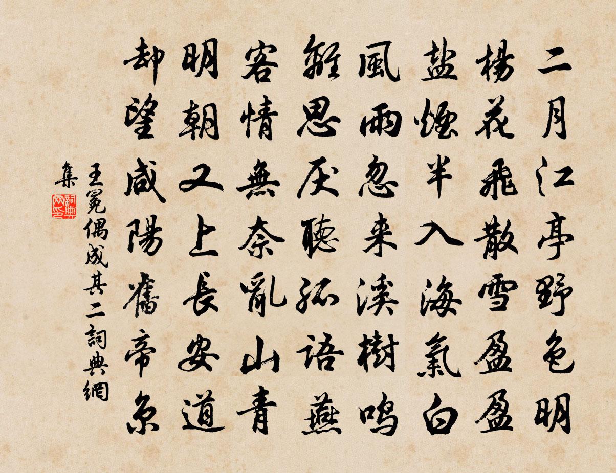 二月江亭野色明,楊花飛散雪盈盈。鹽煙半入海氣白,風雨忽來溪樹鳴。