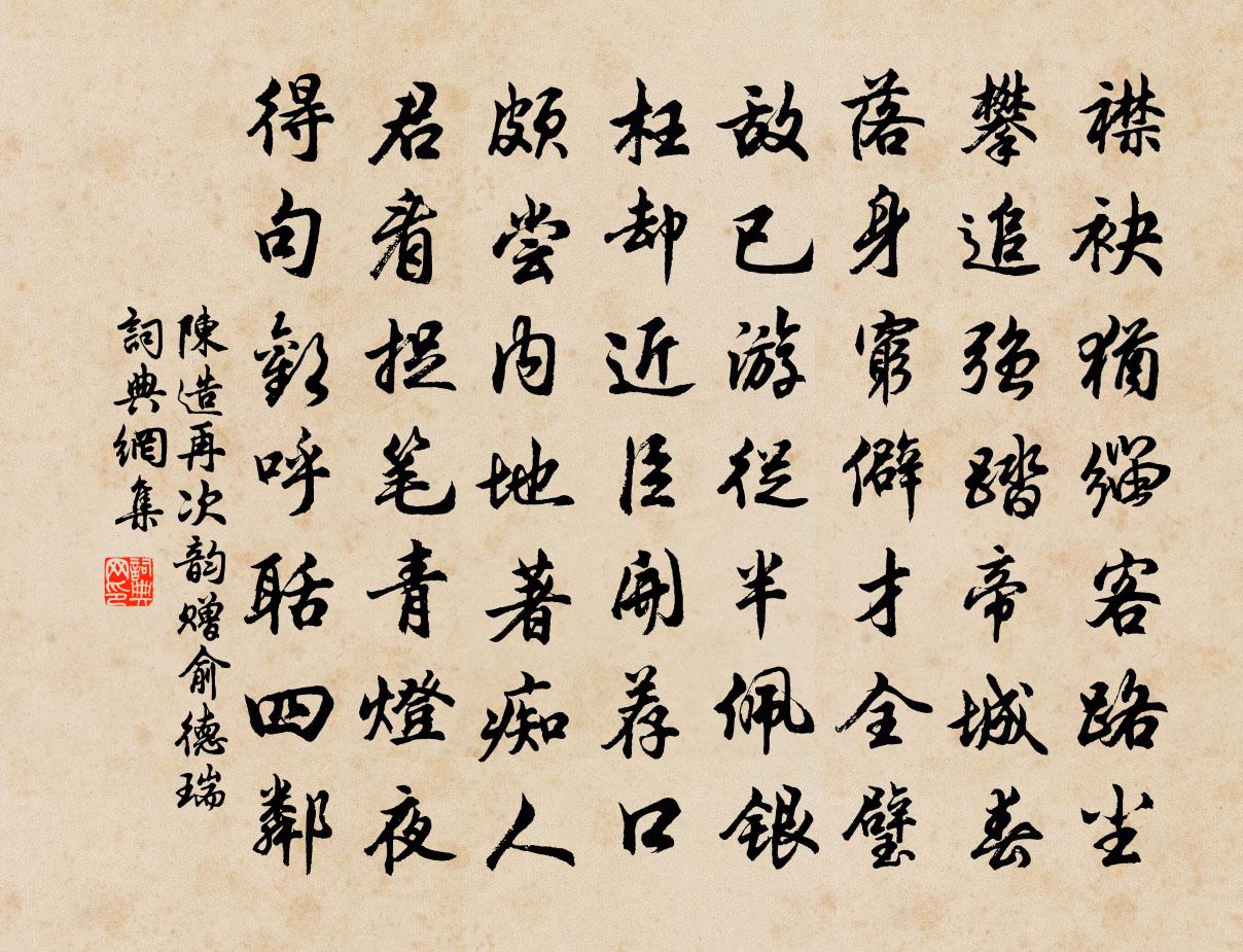 詩詞名句歷史字典書法欣賞書法字典國語詞典說文解字康熙字典古漢語字典標 題 作 者 詩 句 再次韻贈俞德瑞作者:陳造 朝代:宋代再次韻贈俞德瑞原文襟袂猶緇客路塵,攀追強踏帝城春。落身窮僻才全璧,敵已游從半佩銀。枉卻近臣開薦口,頗嘗內地著痴人。君看捉筆青燈夜,得句歡呼聒四鄰。詩詞問答問:再次韻贈俞德瑞的作者是誰?答:陳造問:再次韻贈俞德瑞寫於哪個朝代?答:宋代陳造再次韻贈俞德瑞書法欣賞再次韻贈俞德瑞書法作品詩詞推薦二使者游東山酒後寄詩走筆次韻張栻〔宋代〕頗聞東山盛行樂,坐想風前酒興豪。領略正應胸次別,吟喔更覺筆端高。園中開牡丹一枝朱翌〔宋代〕天下花王都洛京,清明寒食走香軿。東君欲表南來意,一朵薦然尚黃型。次韻送汪尚書致政還鄉魏杞〔宋代〕諸賢投紱孟前期,愧我需章獨厚時。勉徇禮經聊弭謗,敢貪榮祿計遷資。歸兮陶令惟三徑,去矣君嚴有二宜。處世鷓鴣天(鄭守厚卿席上謝余伯山,用其韻)辛棄疾〔宋代〕夢斷京華故倦遊。只今芳草替人愁。陽關莫作三疊唱,越女應須為我留。看逸韻,自名流。青衫司馬且江州。君家送鮑大監赴闕魏野〔宋代〕紫詔徵黃下碧虛,棠郊人送去何如。深宜我後尊三老,未許伊川學二疏。到想煙霞侵幾仗,行愁花雨濕圖書。歸期通州丁溪館夜別李景信三首元稹〔唐代〕月濛濛兮山掩掩,束束別魂眉斂斂。蠡盞覆時天欲明,碧幌青燈風灩灩。淚消語盡還暫眠,唯夢千山萬山險。水環頌古五首釋妙倫〔宋代〕樹動風搖,塵生雲起。太上老君,何曾姓李。送衛清叔著作提舉淮東樓鑰〔宋代〕羨君持節拜庭闈,未老雙親看彩衣。若過蓋公煩問信,坐曹日念舊遊稀。達觀僧紹本年九十能記東坡建中靖男題詩之事趙蕃〔宋代〕老僧長生元佑年,龐眉皓首高頰觀。紛然送迎過雲煙,解記南歸玉局仙。清都道士同蹁躚,詩成忽俾如蛻蟬。嗟哉滿庭芳(次舊韻,答蔡州王道濟大夫見寄)葉夢得〔宋代〕一曲離歌,煙村人去,馬頭微雪新晴。隔年光景,回首近清明。斷送殘花又老,春波淨、湖水初平。誰重到,雕闌醉吟五首方回〔宋代〕有興雲不亡,謂晝無夜時。達人悟茲理,何用浪自悲。姬周過八百,再傳嬴秦萎。彭殤共一盡,修短何議為。屋角秋日范成大〔宋代〕碧蘆青柳不宜霜,染作滄洲一帶黃。莫把江山夸北客,冷雲寒水更荒涼。送友人李白〔唐代〕青山橫北郭,白水繞東城。此地一為別,孤蓬萬里征。浮雲遊子意,落日故人情。揮手自茲去,蕭蕭班馬鳴。題上元雪作題證道寺毛滂〔宋代〕故歲嬋娟獨自來,今年更喚玉妃陪。要知霽色本無際,端放眼中雲霧開。長信宮佚名〔宋代〕細草侵階亂碧鮮,宮門深鎖綠楊天。珠簾欲卷抬秋水,羅幌微開動冷煙。風引漏聲過枕上,月移花影到窗前。獨挑蝶戀花 甲申歲南都作元好問〔元代〕牢落羈懷愁有信。流水浮生,幾見中秋閏。千古詩壇將酒陣。一輪明月消磨盡。八月人間秋滿鬢。桂樹扶疏,更與過莆城懷別劉後村中書因以奉寄胡仲弓〔宋代〕當日揚清激濁流,身危肯作稻粱謀。不從黨錮諸賢死,竊祿偷生亦可羞。裴侍郎大尹雪中遺酒一壺兼示喜眼疾平…斐然仰酬劉禹錫〔唐代〕卷盡輕雲月更明,金篦不用且閒行。若傾家釀招來客,何必池塘春草生。水龍吟 為閻靜軒壽張野〔元代〕仙翁家住蓬壺,騎麟來自祥雲表。瓊琚玉佩,月裳霞袂,炯然相照。道出羲黃,才過遷固,文如盤誥。向紫霄高處宮詞張公庠〔宋代〕端禮門開班已齊,金莖雙立動晨暉。君王欲上逍遙輦,玉指織織整御衣。名句推薦君子周而不比,小人比而不周。孔子弟子《論語·為政篇》 萬頃風濤不記蘇。雪晴江上麥千車。蘇軾《浣溪沙·萬頃風濤不記蘇》 愁顏與衰鬢,明日又逢春。戴叔倫《除夜宿石頭驛》 兩句三年得,一吟雙淚流。賈島《題詩後》 本理則國固,本亂則國危。管仲《管子·霸言》 流水便隨春遠,行雲終與誰同。晏幾道《臨江仙·鬥草階前初見》 秋至搗羅紈,淚滿未能開。江淹《悼室人》 千里萬里,二月三月,行色苦愁人。歐陽修《少年游·欄乾十二獨憑春》 漉我新熟酒,只雞招近局。陶淵明《歸園田居·其五》 養弟子如養閨女,最要嚴出入,謹交遊。洪應明《菜根譚·概論》