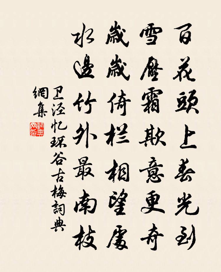 詩詞名句歷史字典書法欣賞書法字典國語詞典說文解字康熙字典古漢語字典標 題 作 者 詩 句 憶環谷古梅作者:衛涇 朝代:宋代憶環谷古梅原文百花頭上春光到,雪壓霜欺意更奇。歲歲倚欄相望處,水邊竹外最南枝。詩詞問答問:憶環谷古梅的作者是誰?答:衛涇問:憶環谷古梅寫於哪個朝代?答:宋代衛涇憶環谷古梅書法欣賞憶環谷古梅書法作品詩詞推薦詠雁強至〔宋代〕乾坤搖落滿風霜,候雁來時道路長。玉塞哀音驚遠戍,滄洲寒影伴殘陽。燈前客鬢愁雙白,天外鄉書斷一行。莫倚秋懷十首陳師道〔宋代〕有家汴泗間,歲久榛棘荒。稍知田家樂,感此歸意忙。老馬 * 櫪,遊魂還故鄉。四十尚無君,天下未敢忘。禪人並化主寫真求贊釋正覺〔宋代〕默默無思,閒閒不羈。秋濯星河色,風吹月盪漪。二儀前是我,萬像里名誰。似難去取,決定相隨。已亥雜詩 79龔自珍〔清代〕手捫千軸古琅玕,篤信男兒識字難。悔向侯王作賓客,廿篇鴻烈贈劉安。艾如張曹勛〔宋代〕鴻鵠遠罾繳,燕雀戀藩籬。爭食蓬蒿下,觸綱斃禍機。黃雀老且黠,黃口小且痴。黃雀戒黃口,輙莫貪腥肥。宿晉安亭盧照鄰〔唐代〕聞有弦歌地,穿鑿本多奇。遊人拭一覽,臨玩果忘疲。窗橫暮卷葉,檐臥古主枝。舊石開紅莽,新河覆綠池。孤猿昔事文皇帝三十二韻杜牧〔唐代〕昔事文皇帝,叨官在諫垣。奏章為得地,齚齒負明恩。金虎知難動,毛釐亦恥言。撩頭雖欲吐,到口卻成吞。照膽和陶歸鳥吳芾〔宋代〕翩翩歸鳥,亦已倦飛。平林在望,非此曷依。是用斂翮,一意來歸。世網雖密,容或我遺。菩薩蠻劉敏中〔元代〕眼中有此妖嬈色。花中無此風流客。一月一番新。一年都是春。盈盈花上月。幾度圓還缺。不去卷金荷。奈渠花月辛丑仲春同黃制屬自延壽雨過禪寂鄭清之〔宋代〕箯輿掠雨到僧門,帶得清閒一二分。素喜堂中無偃月,朅來寺裹作穿雲。赤心莫逆唯松友,青眼相看有竹君。燒葉平望夜景楊萬里〔宋代〕二冬冬,三噹噹,夜泊平望更點長。新月無光湖有光,昨宵一雪今宵霜,犬吠兩岸皈人忙。夜深人靜無一事,畫燭荷花鄭清之〔宋代〕一樣娉婷絕代無,水宮魚貫出瓊鋪。緣何買得凌波女,為有荷盤萬斛珠。郊廟歌辭。周宗廟樂舞辭。禋順佚名〔唐代〕旨酒既獻,嘉殽乃迎。振其鞀鼓,潔以鉶羹。肇禋肇祀,或炮或烹。皇屍儼若,保饗是明。室思徐幹〔魏晉〕浮云何洋洋,願因通我辭。飄搖不可寄,徙倚徒相思。人離皆復會,君獨無返期。自君之出矣,明鏡暗不治。思君馴鷗詠范仲淹〔宋代〕萬物有常性,性無不貴生。風翔與駿奔,一一遠害情。鴥彼沙上鷗,皎皎霜雪明。月宿滄洲靜,日浴滄浪清。何以送林宗配雷州(一作送王棼流雷州)郎士元〔唐代〕昨日三峰尉,今朝萬里人。平生任孤直,豈是不防身。海霧多為瘴,山雷乍作鄰。遙憐北戶月,與子獨相親。逢舍弟釋行海〔宋代〕兄弟相逢在浙西,問家言客思依依。已難與汝淒涼別,終不教吾獨自歸。流落異鄉成老貌,別來無處寄寒衣。死生奉和司徒侍中中秋遇雨韻強至〔宋代〕要盡賓歡醉繡筵,準憑良月作夤緣。孤光已蔽浮雲外,眾目猶傾小雨前。聲入鬢毛同颯颯,潤生林葉自娟娟。宴杯農家六言楊萬里〔宋代〕插秧已蓋田面,疏苗猶逗水光。白鷗飛處極浦,黃犢歸時夕陽。蘇州十詠其七太湖范仲淹〔宋代〕有浪即山高,無風還練靜。秋宵誰與期,月華三萬頃。名句推薦夜來城外一尺雪,曉駕炭車輾冰轍。白居易《賣炭翁》 桃花落,閒池閣。山盟雖在,錦書難托。陸游《釵頭鳳·紅酥手》 晚來天,空悄然,孤眠,枕檀雲髻偏。孫光憲《河傳·花落》 千古興亡多少事?悠悠。辛棄疾《南鄉子·登京口北固亭有懷》 人皆欲多積財,石崇乃因多積財而喪命。王永彬《圍爐夜話·第七則》 喧啾百鳥群,忽見孤鳳凰。韓愈《聽穎師彈琴》 見人初解語嘔啞,不肯歸眠戀小車。韋莊《與小女》 強整繡衾,獨掩朱扉,枕簟為誰鋪設。阮逸女《花心動·春詞》 此去經年,應是良辰好景虛設。柳永《雨霖鈴·寒蟬淒切》 人有氣、有生、有知,亦且有義,故最為天下貴也。荀子《荀子·王制》