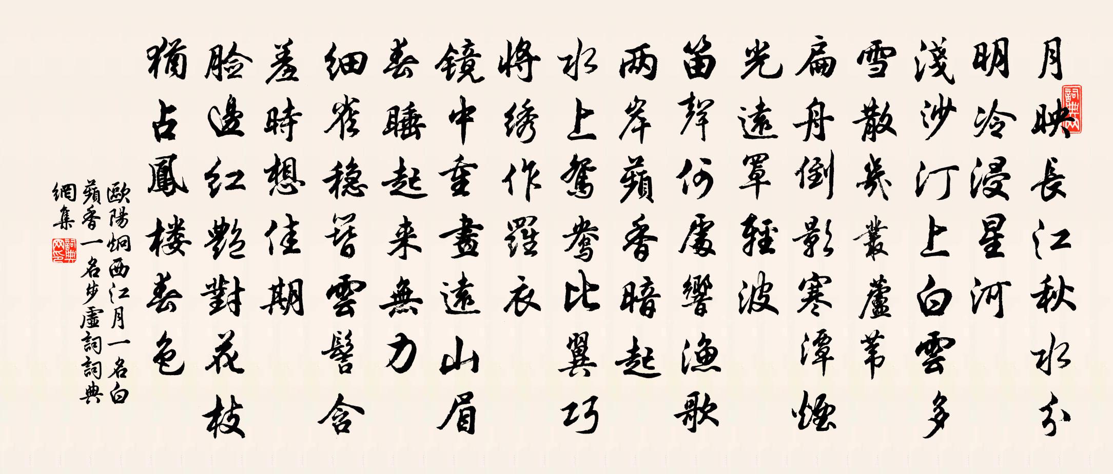 月映長江秋水,分明冷浸星河。淺沙汀上白雲多,雪散幾叢蘆葦。