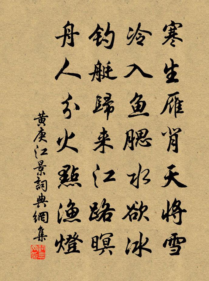 詩詞名句歷史字典書法欣賞書法字典國語詞典說文解字康熙字典古漢語字典標 題 作 者 詩 句 江景作者:黃庚 朝代:宋代江景原文寒生雁背天將雪,冷入魚腮水欲冰。釣艇歸來江路暝,舟人分火點漁燈。詩詞問答問:江景的作者是誰?答:黃庚問:江景寫於哪個朝代?答:宋代黃庚江景書法欣賞江景書法作品詩詞推薦九月三日同呂周輔教授游大邑諸山陸游〔宋代〕大邑知名杜叟詩,山中仍值菊花時。節旄落盡羈臣老,髀肉生來壯士悲。豪舉每嫌杯綠淺,痴頑頗怪鬢絲遲。廣文清平樂晁端禮〔宋代〕朦朧月午。點滴梨花雨。青翼欺人多謾語。訊息知他真否。獸爐鴛被重熏。故將燈火挑昏。最恨西風搖幕,誤人幾樂哉襄陽送劉太尉從廣赴襄陽歐陽修〔宋代〕嗟爾樂哉襄陽人,萬屋連甍清漢濱。語言輕清微帶秦,南通交廣西峨岷。羅縠纖麗藥物珍,枇杷甘橘薦清◇。磊落上喬右司戴復古〔宋代〕端笏立朝日,肺肝傾上前。把麾持節處,桃李滿淮壖。藥石箴時病,蓍龜燭事先。焦頭與曲突,為計孰為賢。冬日雜書六首張耒〔宋代〕短景冰霜地,人稀豹虎村。風連諸壑動,日帶亂山昏。浩蕩空回首,蕭條獨掩門。東周舊耆老,留滯飽知聞。暮秋將歸秦,留別湖南幕府親友杜甫〔唐代〕水闊蒼梧野,天高白帝秋。途窮那免哭,身老不禁愁。大府才能會,諸公德業優。北歸沖雨雪,誰憫敝貂裘。謝孫抗員外惠酒余靖〔宋代〕白衣遠遠到江樓,報導攜壺助勝游。醉眼便堪終日富,離腸先破一春愁。梅梢背嶺開猶晚,雪片當風舞未休。此景詠談容娘常非月〔唐代〕舉手整花鈿,翻身舞錦筵。馬圍行處匝,人壓看場圓。歌要齊聲和,情教細語傳。不知心大小,容得許多憐。喜雨上項帥陳元晉〔宋代〕業祈三日竟成霖,一瓣心香格帝歆。苗若遂枯無此水,粟將暴貴涌於金。時方多壘農為急,公在三湘澤已深。自愧順風至採石袁說友〔宋代〕快哉真得楚王風,鉦鼓喧江四面雄。但欲帆檣催上水,敢辭井路傍西戎。江空歲晚飛煙外,人靜霜明過浪中。少泊隱者居王建〔唐代〕山人住處高,看日上蟠桃。雪縷青山脈,雲生白鶴毛。朱書護身咒,水噀斷邪刀。何物中長食,胡麻慢火熬。調笑令李呂〔宋代〕歸晚。思何限。玉墜金偏雲鬢亂。傷春誰作嬉遊伴。只有飛來花片。幾回愁映眉山遠。總被東風驚散。題眉山程侅所藏山谷寫杜詩帖楊萬里〔宋代〕杜家碧山銀魚詩,黃家虎臥龍跳字。六丁難取真寄愁,程家十襲今三世。程家蘇家元舅甥,子瞻正輔外弟兄。正輔樓觀王冕〔元代〕樓觀重重錦繡扶,東湖風景即蓬壺。海雲入樹青山小,野水滔天白鳥孤。學士借來船似屋,書生歸去畫成圖。老夫題玉光亭王安石〔宋代〕傳聞天玉此埋堙,千古誰分偽與真。每向小庭風月夜,卻疑山水有精神。送王師魯協律赴湖南使幕(即永穆公之孫)劉禹錫〔唐代〕翩翩馬上郎,驅傳渡三湘。橘樹沙洲暗,松醪酒肆香。素風傳竹帛,高價聘琳琅。楚水多蘭芷,何人事搴芳。題子瞻枯木黃庭堅〔宋代〕折衝儒墨陣堂堂,書入顏楊鴻雁行。胸中元自有丘壑,故作老木蟠風霜。黿頭山神女歌韋應物〔唐代〕黿頭之山,直上洞庭連青天。蒼蒼煙樹閉古廟,中有蛾眉成水仙。水府沉沉行路絕,蛟龍出沒無時節。魂同魍魎潛君子行張載〔宋代〕君子防未然,見機天地先。開物象未形,弭災憂患前。公旦立無方,不恤流言喧。將聖見亂人,天厭懲孤偏。竊攘滿庭芳(代鄉老眾賓報勸)史浩〔宋代〕玉闕朝回,沙堤煙曉,碧幢光動軍容。虎符熊軾,行指七閩中。假道吾鄉我里,揮金事、思躡前蹤。傾懷處,螢窗名句推薦晚風收暑,小池塘荷淨。劉光祖《洞仙歌·荷花》 貴上極則反賤,賤下極則反貴。貴出如糞土,賤取如珠玉。財幣欲其行如流水。司馬遷《史記·貨殖列傳》 昔嘆當年無李牧,今知江左有夷吾陳亮《送文子轉漕江東二首》 紅臉青腰,舊識凌波女。晏幾道《蝶戀花·笑艷秋蓮生綠浦》 阿香秋夢起嬌啼,玉女傳幽素。吳文英《燭影搖紅·越上霖雨應禱》 桂花香霧冷,梧葉西風影。高觀國《菩薩蠻·何須急管吹雲暝》 紅板橋空,濺裙人去,依舊曉風殘月。納蘭性德《淡黃柳·詠柳》 綠兮絲兮,女所治兮。我思古人,俾無訧兮!佚名《綠衣》 早梅發高樹,迥映楚天碧。柳宗元《早梅》 何當重相見,尊酒慰離顏。溫庭筠《送人東遊》