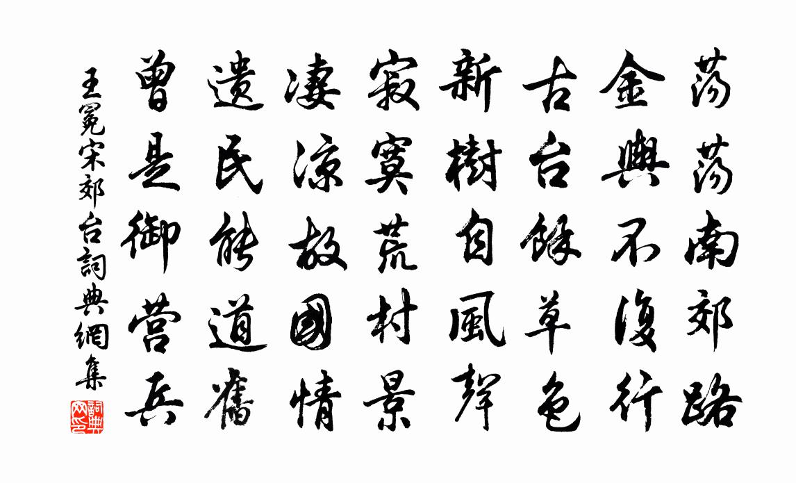 詩詞名句歷史字典書法欣賞書法字典國語詞典說文解字康熙字典古漢語字典標 題 作 者 詩 句 宋郊台作者:王冕 朝代:元代宋郊台原文蕩蕩南郊路,金輿不復行。古台余草色,新樹自風聲。寂寞荒村景,淒涼故國情。遺民能道舊,曾是御營兵。詩詞問答問:宋郊台的作者是誰?答:王冕問:宋郊台寫於哪個朝代?答:元代問:宋郊台是什麼體裁?答:五律問:王冕的名句有哪些?答:王冕名句大全王冕宋郊台書法欣賞宋郊台書法作品詩詞推薦江城子·畫樓簾暮卷新晴盧祖皋〔宋代〕畫樓簾暮卷新晴,掩銀屏,曉寒輕。墜粉飄香,日日喚愁生。暗數十年湖上路,能幾度,著娉婷。年華空自感漂零春老陸游〔宋代〕春色垂垂老,山家處處忙。園丁賣菰白,蠶妾採桑黃。候雨占秧信,催兒築麥場。醉眠官道上,人為護牛羊。宿姚少府北齋賈島〔唐代〕石溪同夜泛,復此北齋期。鳥絕吏歸後,蛩鳴客臥時。鎖城涼雨細,開印曙鍾遲。憶此漳川岸,如今是別離。寄題觀瀾亭二首劉子翬〔宋代〕遙知壓水創新齋,百里寒聲席下來。準擬杖藜秋夜去,同看月涌爛銀堆。秋居覽景因感所事文同〔宋代〕閒居閉窮巷,拙者誠所宜。掩書坐前楹,默與天理期。是時新雨收,物物含秋姿。疏檐正殘日,曲幾方涼颸。群雀偈傾一百六十九首釋智朋〔宋代〕日卓午,夜半子。千門萬戶俱開,一聲兩聲砧杵。流沙浪闊,蔥嶺無路,達磨何曾歸去。詠劉仲更澤州園中醜石梅堯臣〔宋代〕君家太湖石,何從太湖得。太湖天東南,太行天西北。相去三千里,雖有何致力。古人煩舟車,頑質無羽翼。竅引太息陸游〔宋代〕早歲元於利慾輕,但餘一念在功名。白頭不試平戎策,虛向江湖過此生。禪人並化主寫真求贊釋正覺〔宋代〕洞見其顏,拈卻案山。影流心鑒,智入道環。師曠不聞而其聲自普,離朱不辨而其色非慳。一點自然兮妙超過去現雪梅楊公遠〔宋代〕凍合頑雲四幕垂,須臾六出攬空飛。梅花自稟清臞相,底事添渠十倍肥。草徐夤〔唐代〕廢苑荒階伴綠苔,恩疏長信恨難開。姑蘇麋鹿食思食,楚澤王孫來不來。色嫩似將藍汁染,葉齊如把剪刀裁。燕昭和魯漕喜雨韻吳芾〔宋代〕下車逢好雨,清興一何長。暑退郊原爽,風生院落京。登樓延夜月,繞樹探秋香。況得陪詩社,從容樂歲穰。上所知張蠙〔唐代〕初向眾中留姓氏,敢期言下致時名。而今馬亦知人意,每到門前不肯行。醉落魄/一斛珠蔡伸〔宋代〕明眸秀色。雙蛾巧畫春山碧。盈盈標韻傾瑤席。一見尊前,宛是舊相識。深期密語雖端的。良宵無奈成輕擲。忍教懷古李涉〔唐代〕尼父未適魯,屢屢倦迷津。徒懷教化心,紆鬱不能伸。一遇知己言,萬方始喧喧。至今百王則,孰不挹其源。劉君元暉八月十四日邀余玩月快雪齋中,命余倪瓚〔元代〕捲簾見月形神清,疑是山陰夜雪明。長歌欲覓剡溪戴,悵然停杯遠恨生。爾營茅齋名快雪,邀我吹笙弄明月。明星【黃鐘】侍香金童關漢卿〔元代〕春閨院宇,柳絮飄香雪。簾幕輕寒雨乍歇,東風落花 * 蝶。芍藥初開,海棠才謝。【麼】柔腸脈脈,新愁千萬疊擷芳詞佚名〔唐代〕風搖盪,雨濛茸,翠條柔弱花頭重。春衫窄,香肌濕。記得年時,共伊曾摘。都如夢,何曾共,可憐孤似釵頭鳳。周十三丈約同馬三丈入青原山賦詩五首以記行趙蕃〔宋代〕游山忘襆被,喚渡已無航。隔岸初更動,緣沙數里長。大呼空亟疾,小立更微茫。莫遣眠鷗覺,笑人朝夕忙。早秋湖亭張栻〔宋代〕澤國今年秋氣蚤,湖亭清晚獨裴徊。翩翻荷蓋隨風舞,蕭瑟松聲帶雨來。靜處豈雲身計得,吟邊但覺歲華催。悠悠名句推薦雪霜凌厲而見殺,來歲不改其性也黃庭堅《書幽芳亭記》 所志在功名,離別何足嘆。陸龜蒙《別離》 老去悲秋強自寬,興來今日盡君歡。杜甫《九日藍田崔氏莊》 況是清明好天氣,不妨游衍莫忘歸。程顥《郊行即事》 不種閒花,池亭畔、幾竿修竹。陸容《滿江紅·詠竹》 傷心橋下春波綠,曾是驚鴻照影來。陸游《沈園二首》 千載休談南渡錯,當時自怕中原復。文徵明《滿江紅·拂拭殘碑》 王者以民為天,而民以食為天。班固《漢書·傳·酈陸朱劉叔孫傳》 若待得君來向此,花前對酒不忍觸。蘇軾《賀新郎·夏景》 桐葉落,蓼花殘。雁聲天外寒。張淑芳《更漏子·秋》