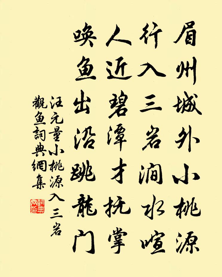 眉州城外小桃源,行入三岩澗水喧。人近碧潭才撫掌,喚魚出沿跳龍門。