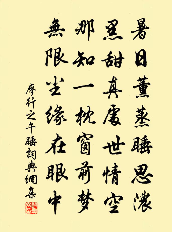 詩詞名句歷史字典書法欣賞書法字典國語詞典說文解字康熙字典古漢語字典標 題 作 者 詩 句 午睡作者:廖行之 朝代:宋代午睡原文暑日薰蒸睡思濃,黑甜真處世情空。那知一枕窗前夢,無限塵緣在眼中。詩詞問答問:午睡的作者是誰?答:廖行之問:午睡寫於哪個朝代?答:宋代廖行之午睡書法欣賞午睡書法作品詩詞推薦汪守三以詩來次韻酬之陳傅良〔宋代〕音合桑林律中宮,試聽布鼓亦三通。相從璧水浮蔥白,一別閩山擘荔紅。把釣扁舟將老去,款門多竹未全窮。若為菩薩蠻(六)王齊愈〔宋代〕老人愁嘆驚年早。早年驚嘆愁人老。霜點鬢蒼蒼。蒼蒼鬢點霜。酒杯停欲久。久欲停杯酒。杯酒喚眉開。開眉喚酒漁家傲晏殊〔宋代〕葉下眠未穩。風翻露颭香成陣。仙女出遊知遠近。羞借問。饒將綠扇遮紅粉。一掬蕊黃沾雨潤。天人乞與金英秋日送客至潛水驛劉禹錫〔唐代〕候吏立沙際,田家連竹溪。楓林社日鼓,茅屋午時雞。鵲噪晚禾地,蝶飛秋草畦。驛樓宮樹近,疲馬再三嘶。浪淘沙(四之一)賀鑄〔宋代〕把酒欲歌驪。濃醉何辭。玉京煙柳欲黃時。明日景陽門外路,相背春歸。斂淚復牽衣。私語遲遲。可憐誰會兩心期和舅氏公退言懷陳師道〔宋代〕追陪強韻愧難過,應接前聞覺未多。盛禮每虛摩詰席,舊詞猶可雪兒歌。手開新徑延徐步,眼趁高梧上碧蘿。風雨菩薩蠻李煜〔唐代〕蓬萊枕院閉天台枕女,畫堂枕晝寢人無枕語。拋枕翠雲光,繡衣聞異香。潛來珠鎖動,驚覺銀屏夢。臉慢笑盈盈,哭房處士段成式〔唐代〕獨上黃壇幾度盟,印開龍渥喜丹成。豈同叔夜終無分,空向人間著養生。浪淘沙張先〔宋代〕腸斷送韶華。為惜楊花。雪球搖曳逐風斜。容易著人容易去,飛過誰家。聚散苦咨嗟。無計留他。行人灑淚滴流霞暮春詞釋行海〔宋代〕春風盪槳落花時,江鼓冬冬舞柘枝。雨洗櫻紅蠶豆綠,金衣公子可憐誰。八景勝概深穴噓風方鳳〔宋代〕草木何豐彤,懸崖護丹穴。相傳通鼎湖,深窈吹寒冽。病起二首高斯得〔宋代〕老去增書癖,還遭病兒磨。杜詩能止虐,周易解祛魔。不得青編伴,惟應白日過。坐多膚欲痹,時起眺清波。歌一作涼州行王貞白〔唐代〕誰唱關西曲,寂寞夜景深。一聲長在耳,萬恨重經心。調古清風起,曲終涼月沉。卻應筵上客,未必是知音。挽程推官二首陳淳〔宋代〕壯歲聲場屋,高年僅小行。鄫江夷暴跡,湟水雪冤情。節志冰壺潔,襟期玉井清。竟登皇石趣,勇去謝榮名。小重山蔣捷〔宋代〕晴浦溶溶明斷霞。樓台搖影處,是誰家。銀紅裙襉皺宮紗。風前坐,閒斗鬱金芽。人散樹啼鴉。粉團黏不住,舊繁賀新郎黃人傑〔宋代〕急雨收庚暑。倚三峰、祥光萬丈,曉窺臨汝。金石台邊人語鬧,驚怪麟書夜吐。又卻是、重生申甫。筆底婆瀾翻瀚寄獻三川守劉公許渾〔唐代〕三川歌頌徹鹹秦,十二樓前侍從臣。休閉玉籠留鸑鷟,早開金埒縱麒麟。花深稚榻迎何客,月在膺舟醉幾人。自笑次龔丈同叔高韻趙善括〔宋代〕備嘗險阻與艱難,久別松楸水一灣。孤憤未申思北闕,雙眉初展見西山。化工已定休言命,巧匠於今亦汗顏。它日一寸金(太母誕辰)曹勛〔宋代〕霜落鴛鴦,繡隱芙蓉小春節。應運看,月魄分輝,坤順同符,文母徽音芳烈。誕育乾坤主,均慈愛、練裙豈別。經殘句叩檻出魚鱉蘇軾〔宋代〕叩檻出魚鱉,詩成一笑粲。名句推薦君似孤云何處歸,我似離群雁。周紫芝《卜運算元·席上送王彥猷》 不明察,不能燭私。韓非及後人《韓非子·孤憤》 門有車馬客,駕言發故鄉。陸機《門有車馬客行》 笑指吾廬何處是?一池荷葉小橋橫。陳繼儒《浣溪沙·初夏夜飲歸》 丹青不知老將至,富貴於我如浮雲。杜甫《丹青引贈曹將軍霸》 花明玉關雪,葉暖金窗煙。李白《折楊柳》 聞道故林相識多,罷官昨日今如何李頎《送陳章甫》 今朝此為別,何處還相遇。韋應物《初發揚子寄元大校書》 苦心豈免容螻蟻,香葉終經宿鸞鳳。杜甫《古柏行》 路上有飢人,家中有剩飯。佚名《增廣賢文·上集》