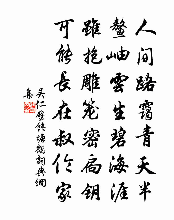 詩詞名句歷史字典書法欣賞書法字典國語詞典說文解字康熙字典古漢語字典標 題 作 者 詩 句 錢塘鶴作者:吳仁璧 朝代:唐代錢塘鶴原文人間路靄青天半,鰲岫雲生碧海涯。雖抱雕籠密扃鑰,可能長在叔倫家。詩詞問答問:錢塘鶴的作者是誰?答:吳仁璧問:錢塘鶴寫於哪個朝代?答:唐代問:錢塘鶴是什麼體裁?答:七絕吳仁璧錢塘鶴書法欣賞錢塘鶴書法作品注釋全唐詩:卷690-23詩詞推薦答龐參軍 其三陶淵明〔魏晉〕伊余懷人,欣德孜孜;我有旨酒,與汝樂之。乃陳好言,乃著新詩;一旦不見,如何不思!養雞抱犢摩詰語也戲廣其說姜特立〔宋代〕雲里養雞非是達,山頭抱犢未為真。何如老奉閒香火,醉臥林間了此身。詠史下諸葛誕陳普〔宋代〕義旗照日映淮流,不為曹孤為夏侯。麾下諸君底心性,海中五百又揚州。筍籜筆詩李廌〔宋代〕琅玕夭嬌排霄去,敗籜平階聊貯儲。付與管城湯沐地,何鬚毛穎號中書。失題四首曾國藩〔清代〕抽得閒身鶴不如,高秋酒熟鞠黃初。便驅天駟識途馬,歸釣江鄉縮項魚。往比已清隨轂轉,今來身世似舟虛。不須將至桂林戒弗作詩飲酒李曾伯〔宋代〕誤領元戎太乙旗,提封四履鎮南籬。旄倪爭向道塗看,名姓亦為蠻徼知。時務下地毋事酒,春光雖好莫言詩。經營水龍吟(梅)曹冠〔宋代〕自來百卉千葩,算多有、異芬清絕。此花獨賦,天然標緻,於中超越。月臉妝勻,碧瓊枝瘦,真仙風骨。向嚴寒雪題毛氏榴峰馬廷鸞〔宋代〕誰家馬鬣懷先人,何人牛腰騁奇作。山高水長霜露濡,柏茂松深鳥烏落。曾玄有酒酹淒涼,翁仲無言臥冥寞。胥濤戌婦詞三首劉克莊〔宋代〕織錦為書寄雁飛,功名從古恨無機。良人白首沙場裡,何日封侯建節歸。章質夫送酒六壺書至而酒不達戲作小詩問之蘇軾〔宋代〕白衣送酒舞淵明,急掃風軒洗破觥。豈意青州六從事,化為烏有一先生。空煩左手持新蟹,漫繞東籬嗅落英。南海送譙岩趙日休歸蜀趙希桐〔宋代〕煙塵渺渺暗魚鳧,有客翩然赴上都。乞得玉宸新翰墨,要還琳宇舊規模。十年蠲賦綸恩重,萬里歸程劍影孤。他日為人題鄭谷〔唐代〕淚濕孤鸞曉鏡昏,近來方解惜青春。杏花楊柳年年好,不忍回看舊寫真。瓶里桃花張明中〔宋代〕折得蒸紅簪小瓶,掇來几案自生春。珠唇絳口都開了,始信桃花解笑人。卜運算元呂渭老〔宋代〕雲破月高懸,照我雙雙淚。人在朱橋轉曲西,翠幕重重閉。要見索商量,見了還無計。心似長檠一點燈,到曉清清偈頌一百二十三首釋祖欽〔宋代〕水不洗水,金不博金。 * ,自古自今。昨日出城南行釋文珦〔宋代〕昨日出城南,戰陣如雲屯。兵刃欲相接,殺氣方騰掀。黃塵塞天地,日月為之昏。壯士仗忠義,不忘喪其元。奮然寄王正叔王令〔宋代〕微生不過人,氣力兩眇麽。力學失自謀,徑古與今左。病世相陷賊,樹性期剛果。豈不中是時,然亦未嘗過。奈何和吳元衡胡寅〔宋代〕先生頌酒夸兩豪,使我讀之如飲醪。詩情不逐春光老,春在毫端尤婉好。頗聞下堂小不佳,未欲頌公長者車。不道和人松江李洪〔宋代〕塵纓快濯四橋水,曳履卻上三高堂。欲按新圖買漁具,短蓑篛笠混行藏。郊居友人相訪崔道融〔唐代〕柴門深掩古城秋,背郭緣溪一徑幽。不有小園新竹色,君來那肯暫淹留。名句推薦蘭舟斜纜垂揚下,只宜輔枕簟向涼亭披襟散發。白樸《得勝樂·夏》 若待得君來向此,花前對酒不忍觸。蘇軾《賀新郎·夏景》 老翁逾牆走,老婦出門看。杜甫《石壕吏》 君行逾十年,孤妾常獨棲。曹植《明月上高樓》 短景歸秋,吟思又接愁邊。史達祖《玉蝴蝶·晚雨未摧宮樹》 明月出天山,蒼茫雲海間。李白《關山月》 玉漏銀壺且莫催,鐵關金鎖徹明開。崔液《上元夜六首·其一》 美女渭橋東,春還事蠶作。李白《陌上桑》 近水知魚性,近山識鳥音。佚名《增廣賢文·上集》 萬頃風濤不記蘇。雪晴江上麥千車。蘇軾《浣溪沙·萬頃風濤不記蘇》